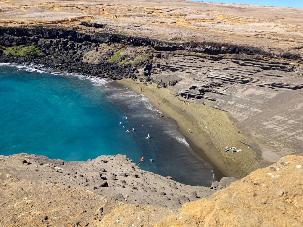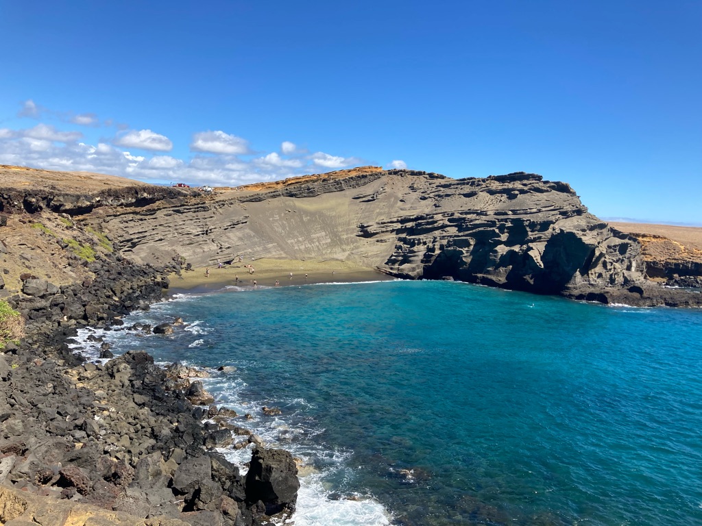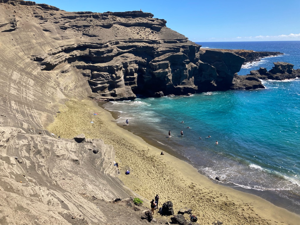 Et oui nous avons finalement reçu nos plans avec une randonnée de 2h30 le long de la côte menant à cette fameuse plage de sable vert , couleur due à l’olivine liée à l’activité volcanique de l’île