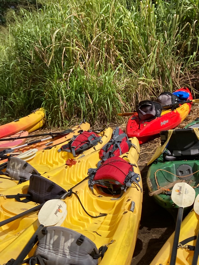 On s’est inscrit à une sortie avec un guide : 45 minutes de kayak, 1h de marche jusqu’à une cascade, pique nique, baignade puis retour sur le trail + kayac