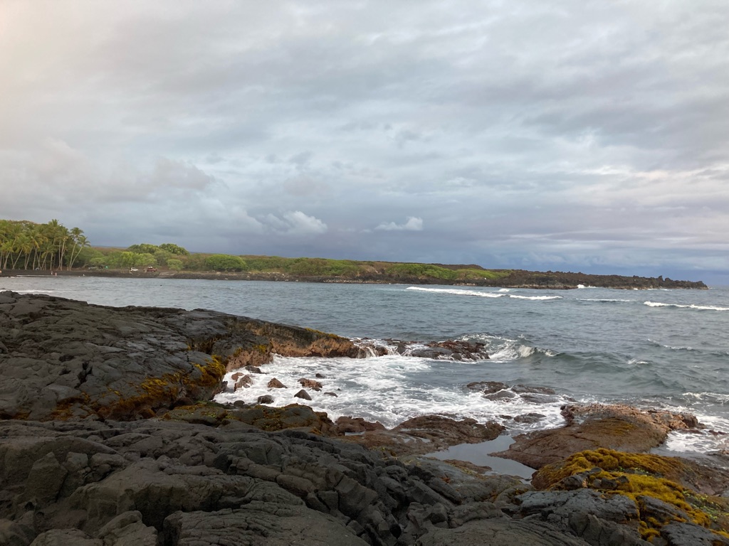Aujourd’hui nous sommes partis du logement près de Kona pour aller vers un autre coin de l’île : la côte Est et le centre qui comprend les volcans