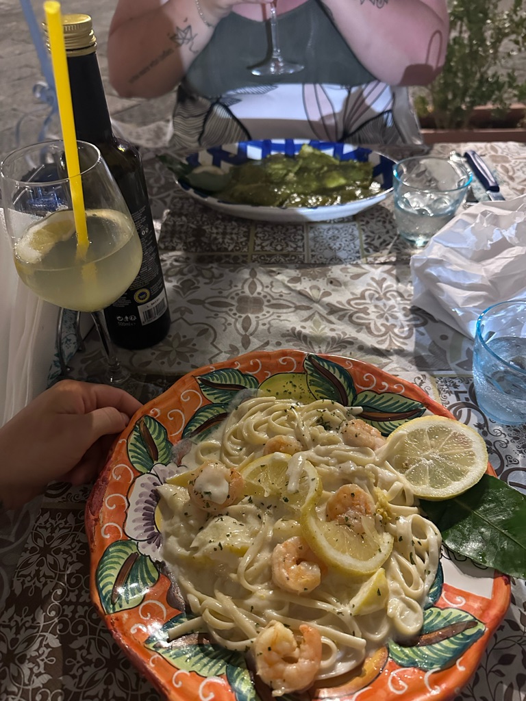 Dinner was INCREDIBLE, the waiters were so friendly and wanted to know where all of their guests were from and the vibe was just perfect! Sarah got lemon & Pesto Ravioli, and I got lemon linguine. We both obviously got spritzes and limoccello shots to finish🙃