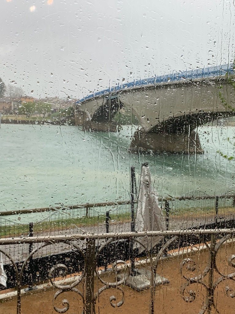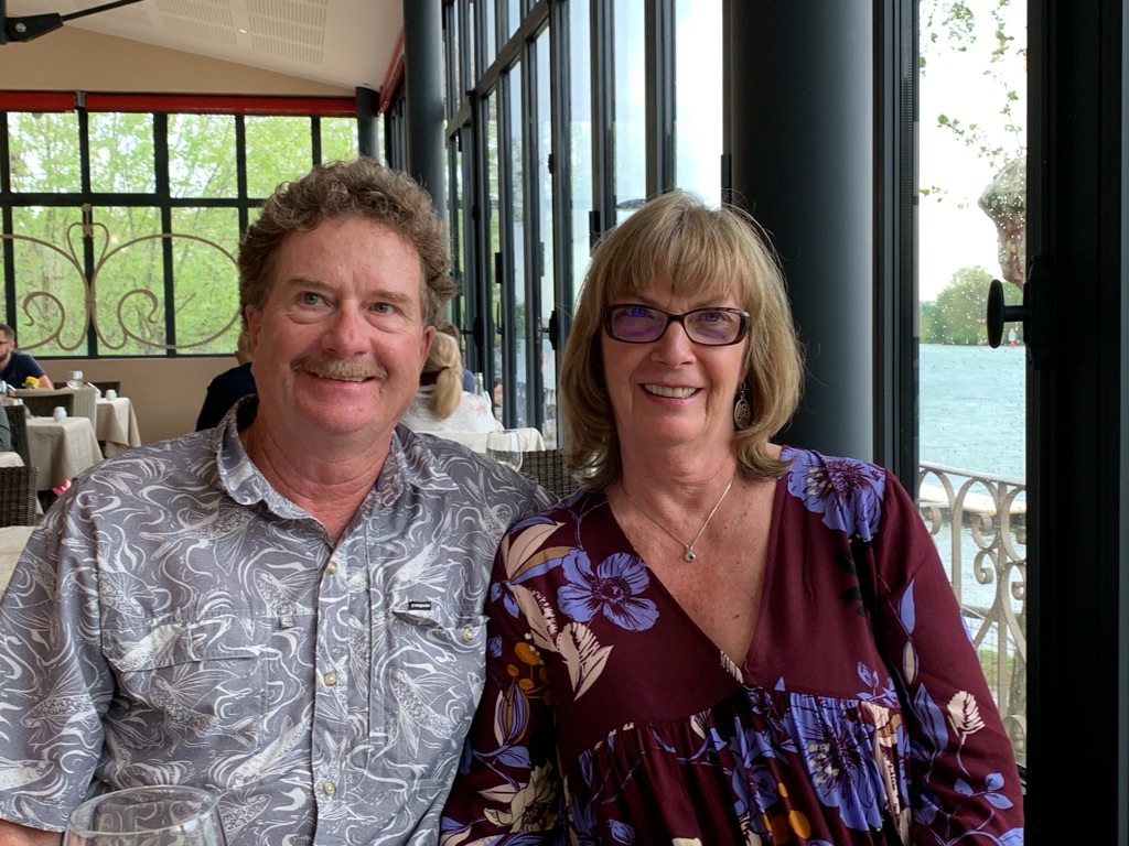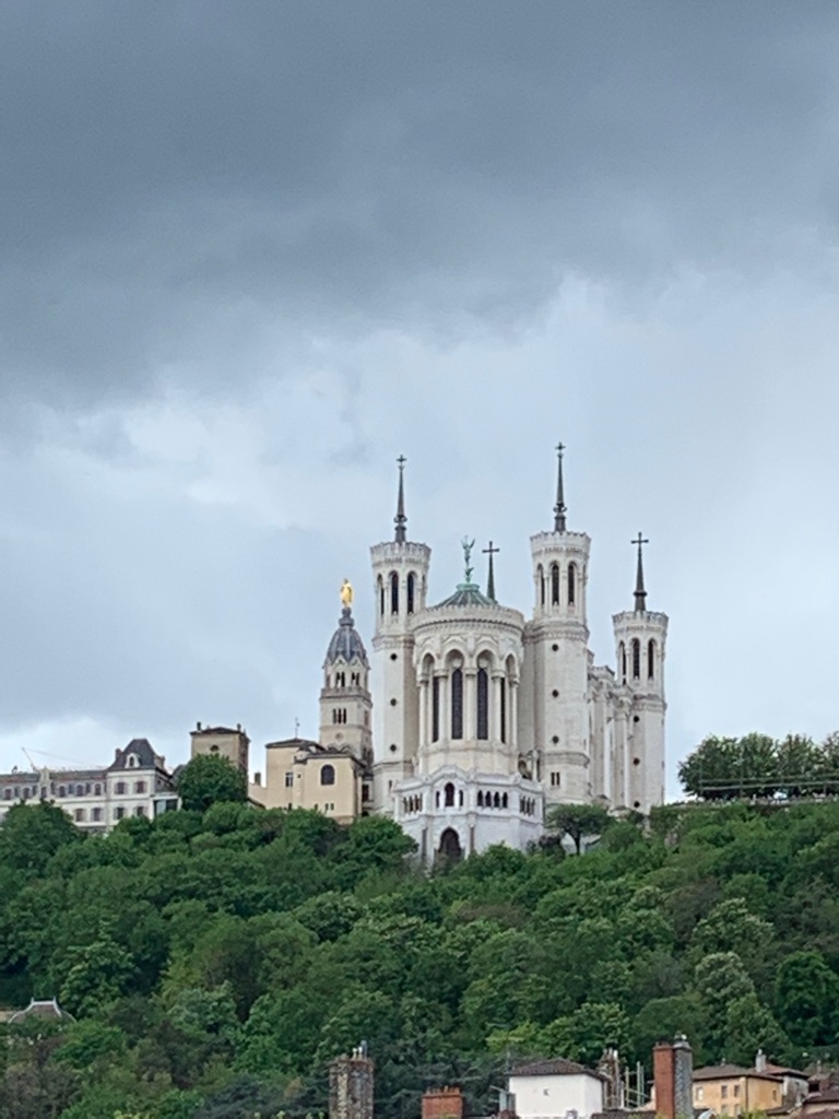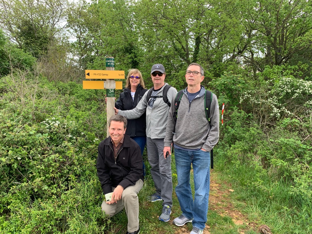 So always a day behind. Yesterday we went to visit Mike’s friend’s house in Macon - Jean Louis and his wife Jacqueline. Mike worked with him at Rossignol years ago. Very nice. As \240the French do - the table was set with munchies to have with champagne or wine but everyone chose champagne. \240We chatted and then took off for lunch. Jean Louis had planned to take us out on his boat and dock at the restaurant but the weather was changing. It started pouring right when we got to the restaurant. We had a lovely lunch at Restaurant du Pont. Crazy flamboyant waiter. I had menu du jour that consisted of a salad, fish and a lemon tart. \240After lunch we decided to head back. Mike and Suzie stayed to meet up with his daughter and they also went to the Abbey in County but we were done. Just came back to the house and went for a hike around town. We had some rain later but not too bad.
