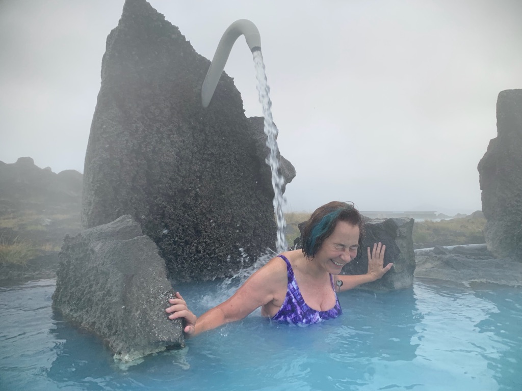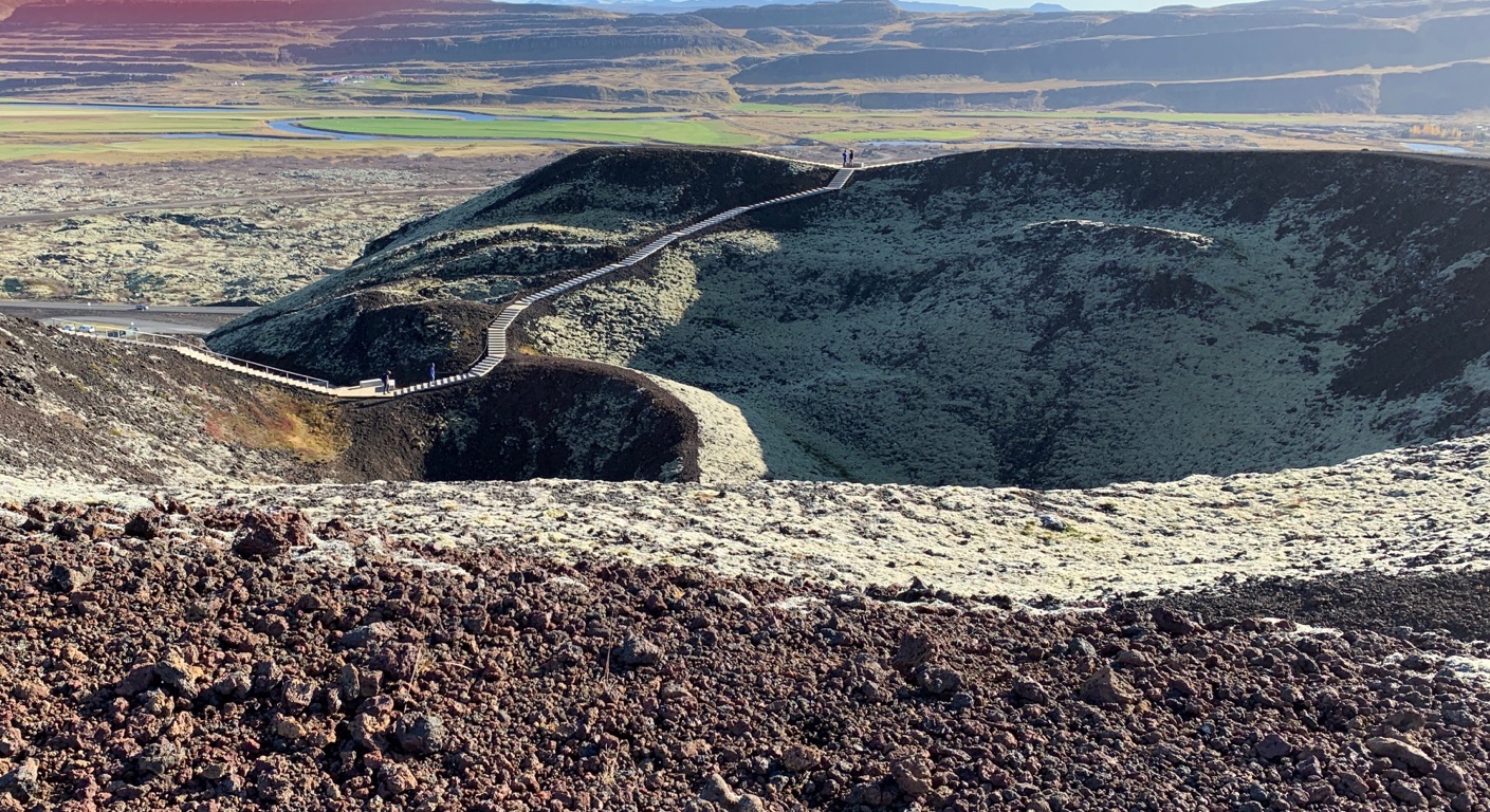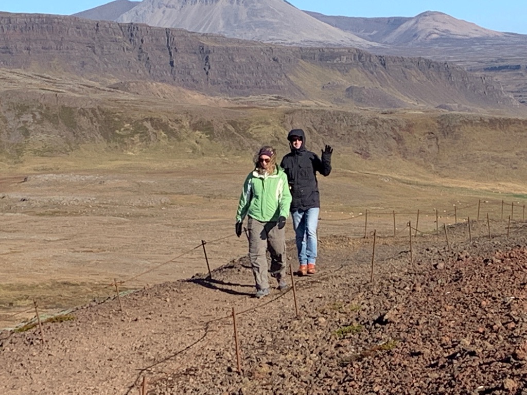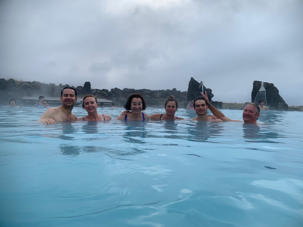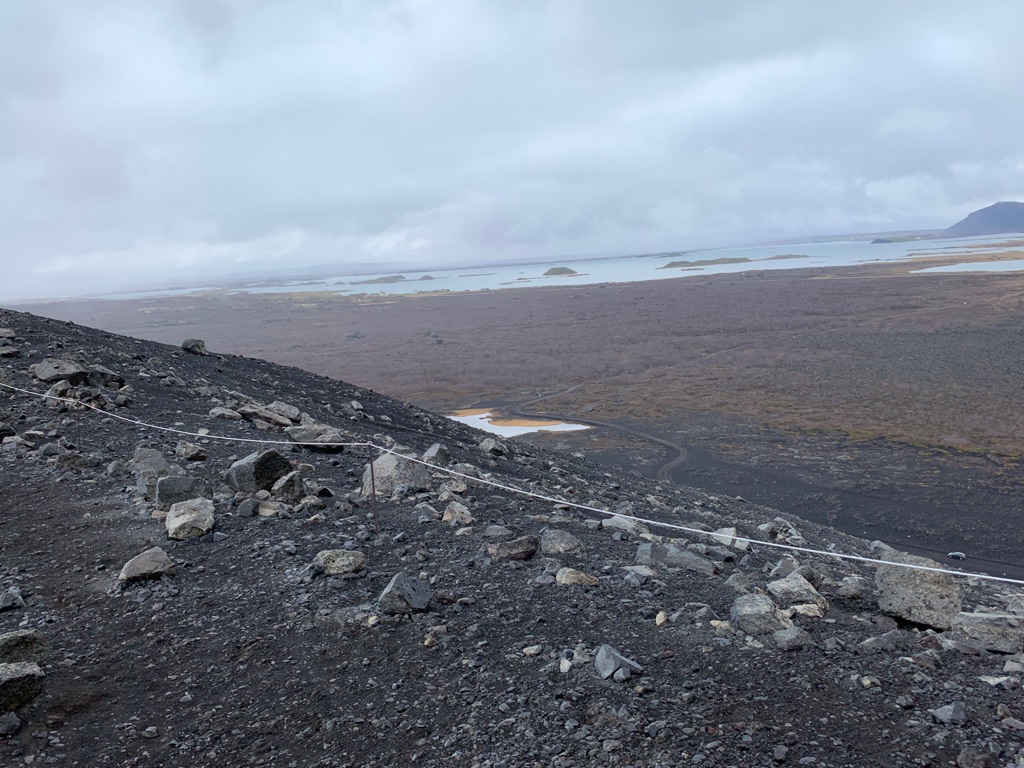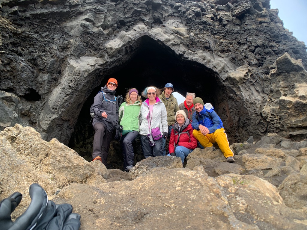 So today as stated ended up being at Dimmulborgir after a grocery stop for lunch supplies. This area and the second stop where we had lunch were Wildling Army Camp scenes in GoT. \240Then we went to Hverfjall. Steep climb up the hill and super windy and cold. I opted not to hike whole crater rim but ended up barely being back before the rest of the crew was. After that, we definitely needed a break. Which was convenient as we had tickets for Myvatn Nature Baths. Lindsay opted out but the rest of us enjoyed it. Sure wish we had more time to try out more of the geothermal spas. It was very soothing and relaxing. One of the couples we met was from Carlsbad.