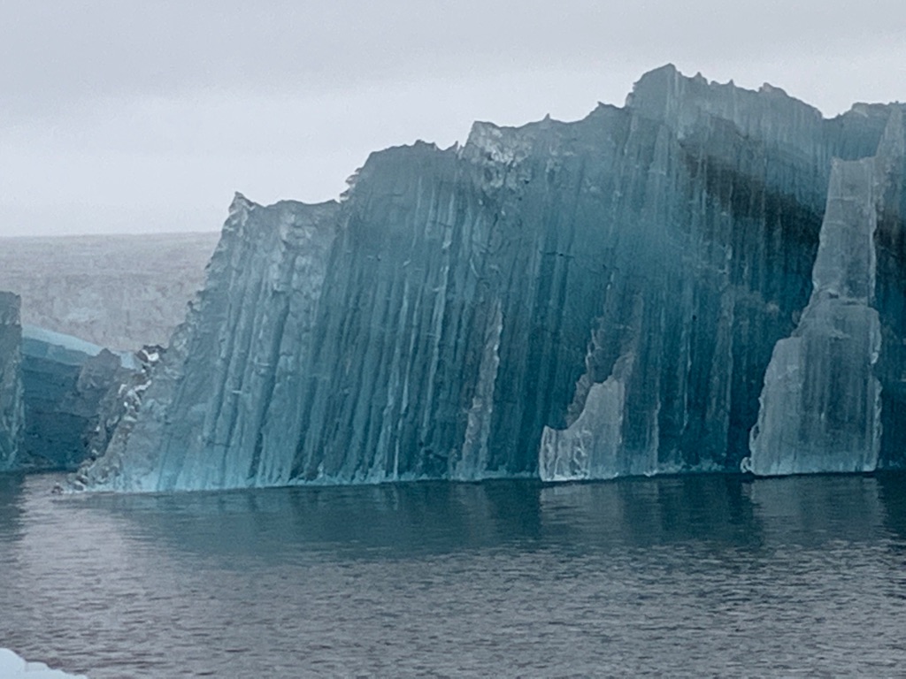 Merry Christmas! What a fun day. \240Definitely a wonderful day sailing through beautiful ice bergs. \240Our journey for today was to go to an ice floe and actually get out on the ice. It was amazing. \240Someone made a banner to hold for photographs so we took a group photo that came out great. Such a great experience. We were the first boat out for the second round and got right on the floe. \240Jackie was our driver and she was amazing. \240We went though dozens of beautiful icebergs. \240It was an amazing morning and the afternoon was more of the same as the ship went through the ice berg field. \240We did get to see some emperor penguins on an ice floe which they didn’t seem to think we would see on this trip. While we were looking at the penguins, I heard a weird call, which turned out to be humpback whales. \240Everyone got really excited about that as we got to see the tails.
