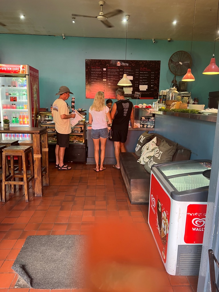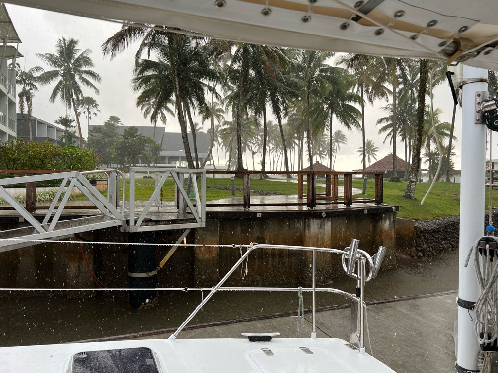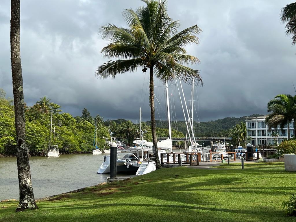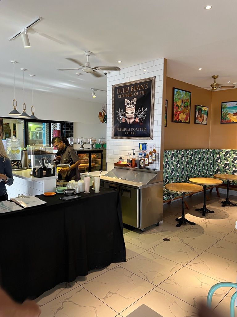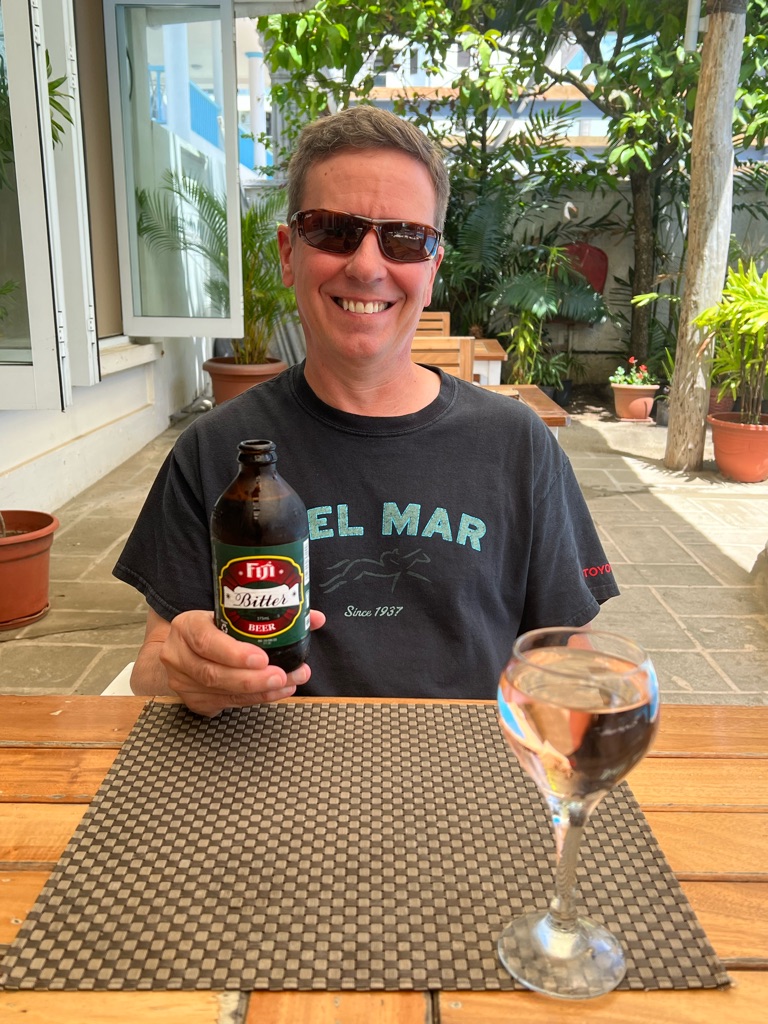 So sitting in Musket Cove Resort lobby with hours to kill waiting for our ferry to take us back to Port Denarau and then bus to the airport. Probably the nicest place we’ve been and haven’t been able to experience it much. We got in on the afternoon on the 30th. Ended up on a mooring ball as Kellie didn’t want to attempt docking in the right cove. Probably should have as it was the calmest water out of the days we’ve been here. So the mooring ball has us too far out from the beach to access the snorkeling sites which are pretty much off shore. The girls go out then come pick us up and drop us off at the dock. Island Bar right there - bottles of wine, beers and salty characters. The guy next to Rob was from Chula Vista and sailing by himself. Definitely thought he was going to say he was from OB. Then another guy comes over - Kiwi who drank beer after beer. Collin , I think. We managed to go through 4 bottles of wine there then eventually made it to the Trader Cafe and got some dinner. Very casual, nothing like Sails - sort of an eclectic menu. I had a quinoa bowl with mahi-mahi. Back to the bar for Rob and we find out the girls had been out searching for one of the paddle boards that they had left at the beach and it floated away. Actually found it on another boat at the dingy dock. So then they had to take it to the boat and in the dark in choppy water. Kira came back to get us and all was well.