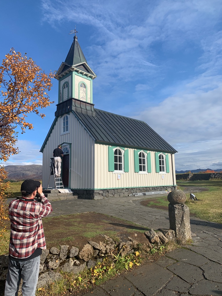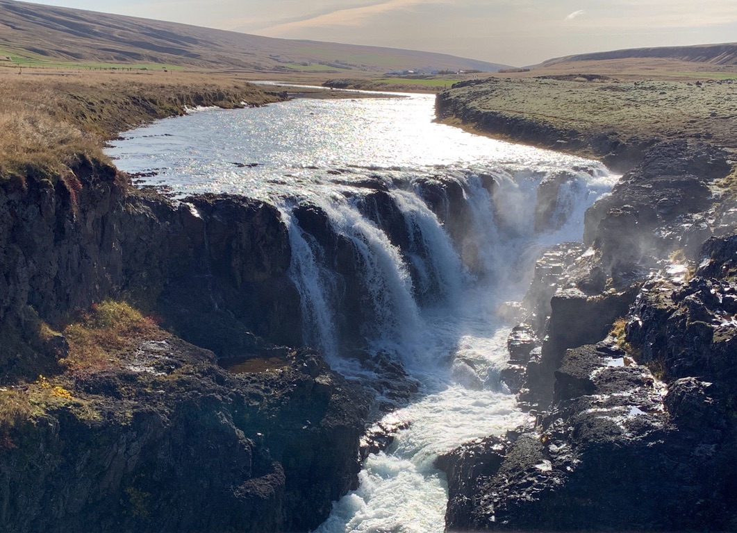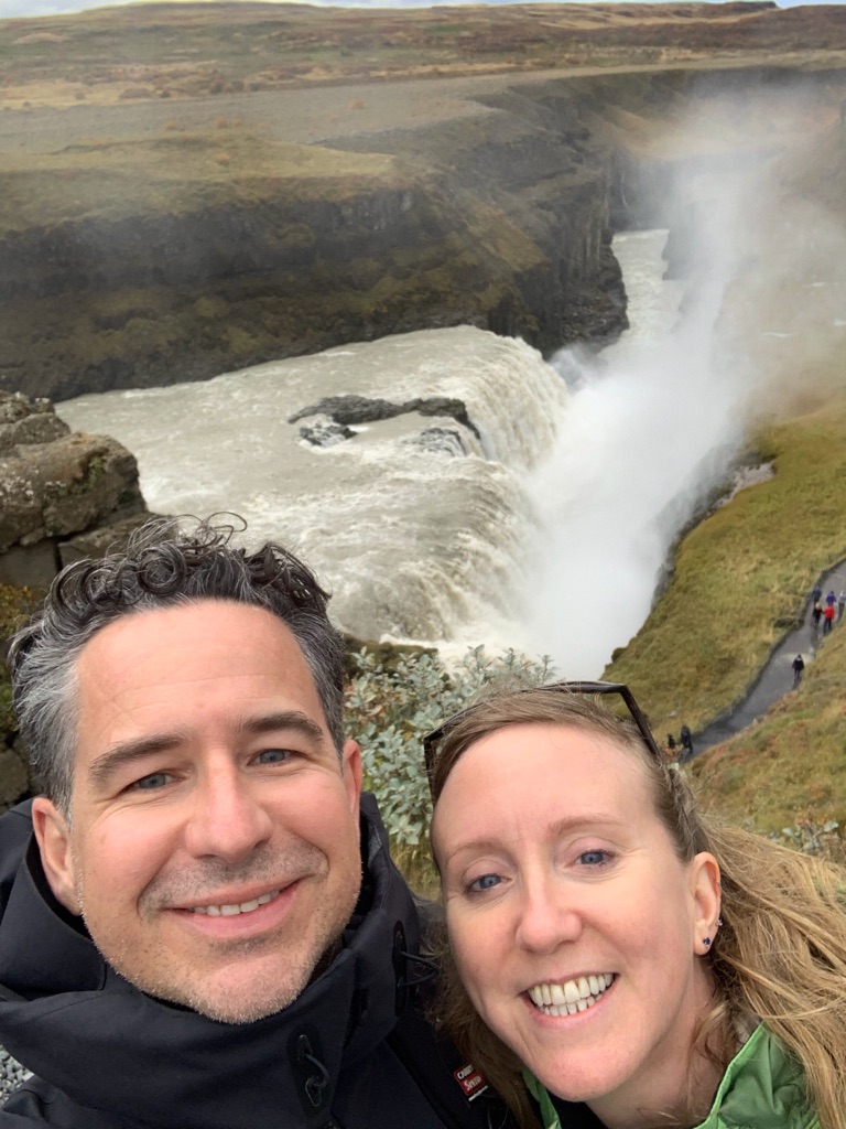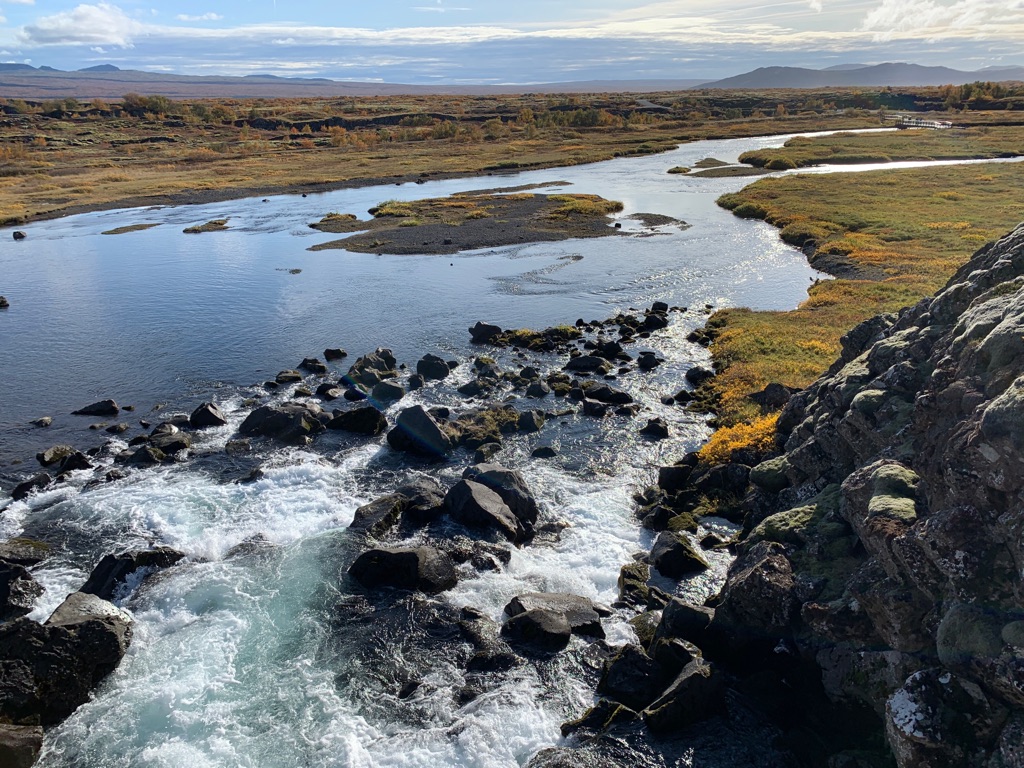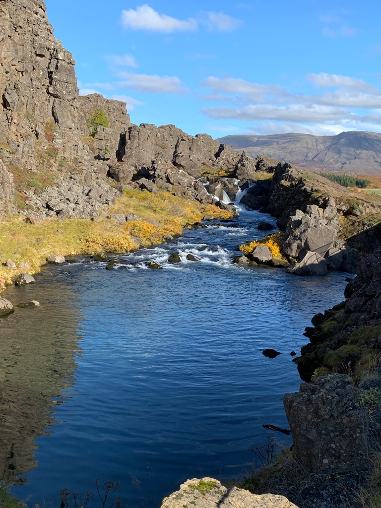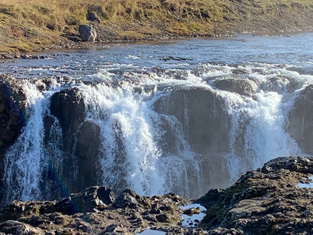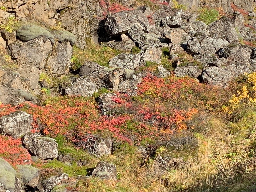What a fabulous day! Seems like we have been here for weeks already we saw so much. The guys went and got our rental cars this morning. Was hoping they would be there at 8:30 but they didn’t show til 9 so it was after when we got on the road. Got to Thingvellir fairly easily. Stunning place. We hiked to waterfalls, saw salmon, an old church - just breathtaking scenery. Then we had to leave for lunch as we had reservations at 1:30. \240That was when the fun the fun started happening. \240The GPS kept routing us to this closed road. \240It got to be very confusing - we became afraid to trust anything but the map as the smaller roads might be closed. \240We had to call to change our reservation to 2:30 and fix all the various GPS devices. \240The road we finally did take the 355 had almost everything we saw in the previsit driving video with Elfish - changing road terrain, one lane bridges and blind corners. \240We finally made it to Fridheimar Farms and it was amazing. Lunch in the giant tomato greenhouse where they grow all the tomatoes for Iceland -370 tons. Our waitress who was French gave us the whole spiel and it was so funny when she was explaining that they used geothermal energy for the greenhouse because if they didn’t it would cost a shit ton of money. Drew called her on it and we teased her about it a little bit but it was pretty funny. She said she learned to speak English in Australia and they used the word a lot. The restaurant and food was amazing. I just had the tomato soup with bread and a tomato beer that was quite good. \240We also passed around a tomato cheesecake that was pretty wonderful too, I think it was a good stop and something a little bit different.