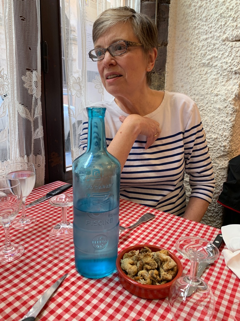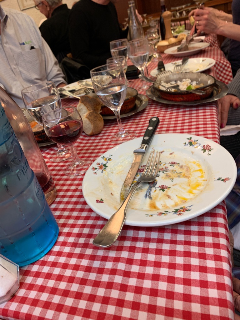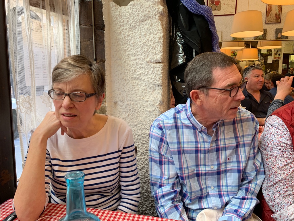 Okay. So finally up to date. Well, at least after I finish this. \240Today we went with everyone- Mike’s car adjusts to fit 7 - to Lyon - almost a 2 hour drive so this whole thing was our event for the day. We met up with one of Suzie’s friends who used to live in Brooklyn. She and her husband retired and moved to Lyon 18 months ago. \240Very interesting and nice people. \240They took us to this great Bouchon for lunch. The owner was quite a character so considering this was basically what we did for the for day, it was really fun.