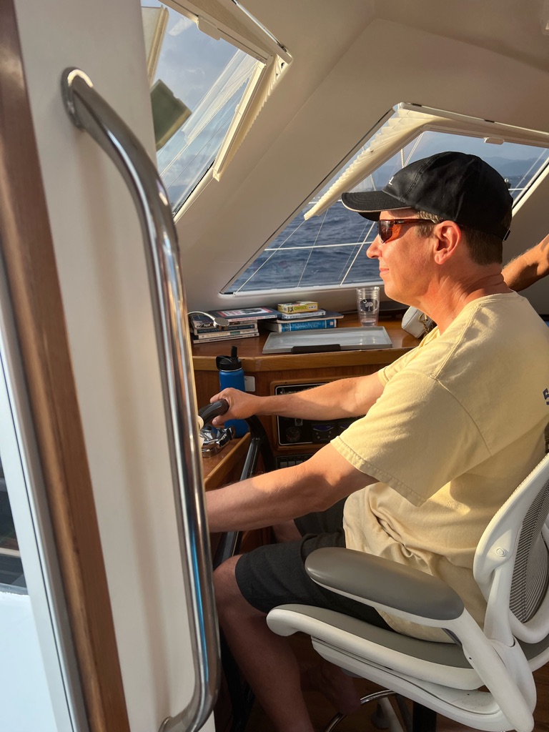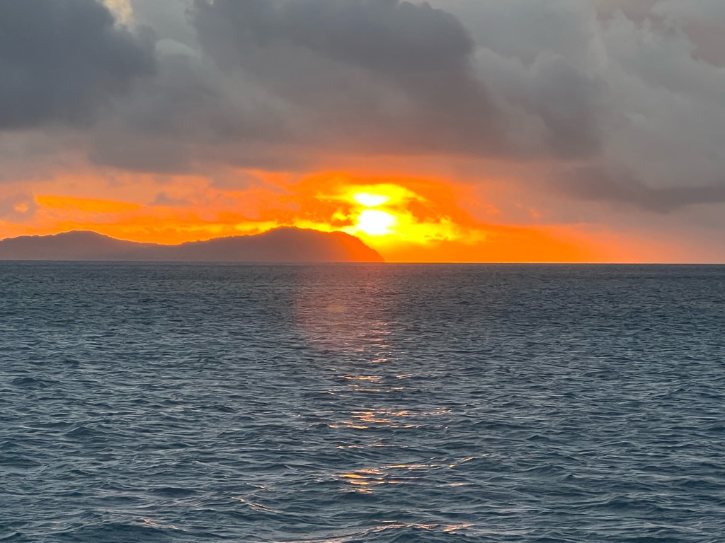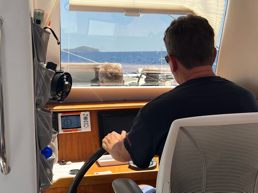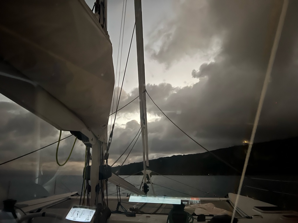 Rough night last night. It was calm til all of a sudden it wasn’t. \240By the time the evening was over,I had puked 2x. We watched “Blue Lagoon” on the stern and that certainly didn’t help. Watching pitching seas while on the pitching seas was not a good option. I had first anchor watch and it was a struggle. I probably should have gone to bed and rested for a bit. The anchor took a dip on a different line on the chart and I was a little concerned but it wasn’t lower than the scribbles to left so I told Gigi to watch that when she came up for watch. Felt like I didn’t sleep at all but I thought that Rob and Gigi moved the boat so I guess I slept for a little while. Took a Bonine this morning - going to be a choppy all day sail. Then we have to get busy packing and get our berth ready for the next guests. Haven’t been able to reserve the ferry back to Nadi so hopefully that isn’t an issue. We fortunately have an extra day to work it out which Maude does not. She is on the flight we originally had back to LAX.