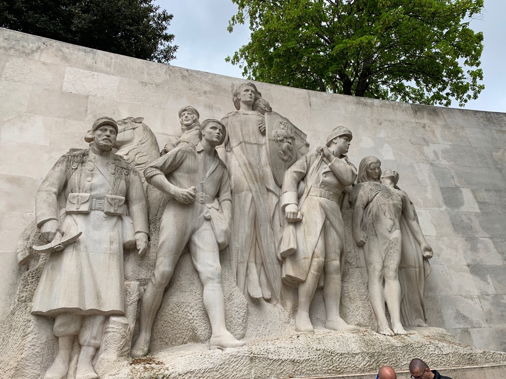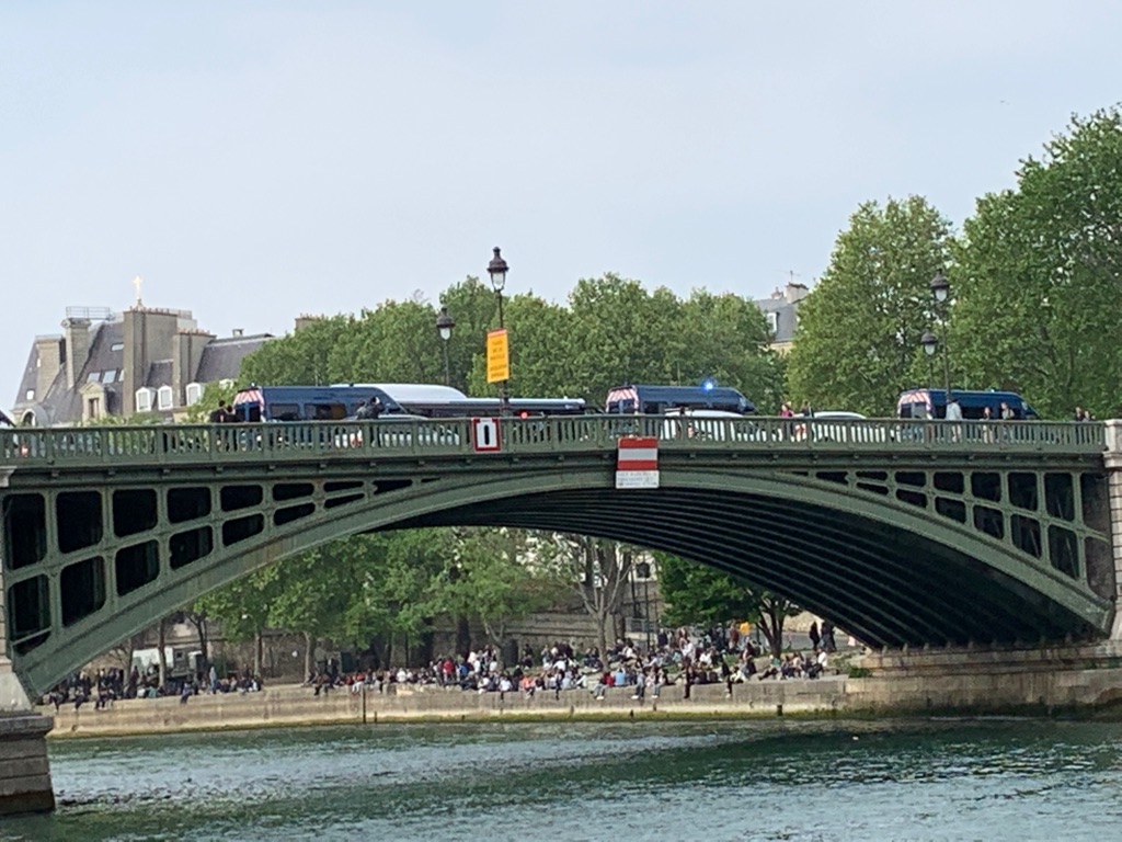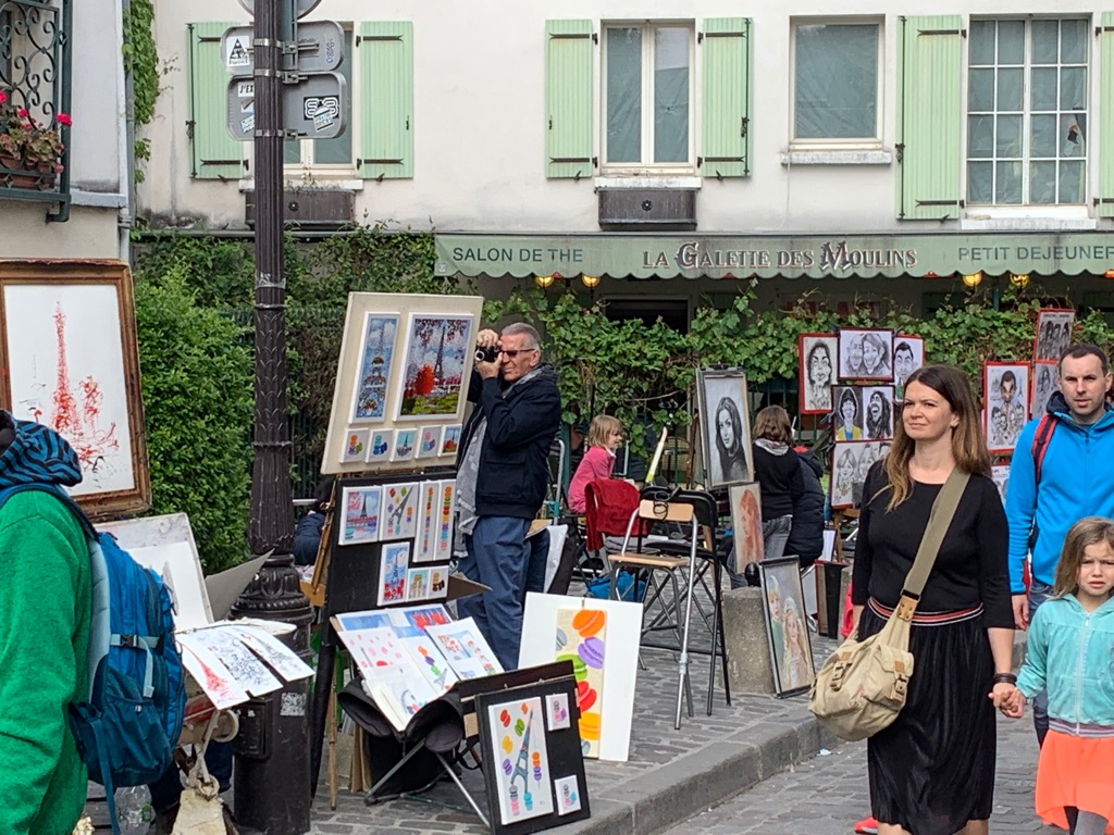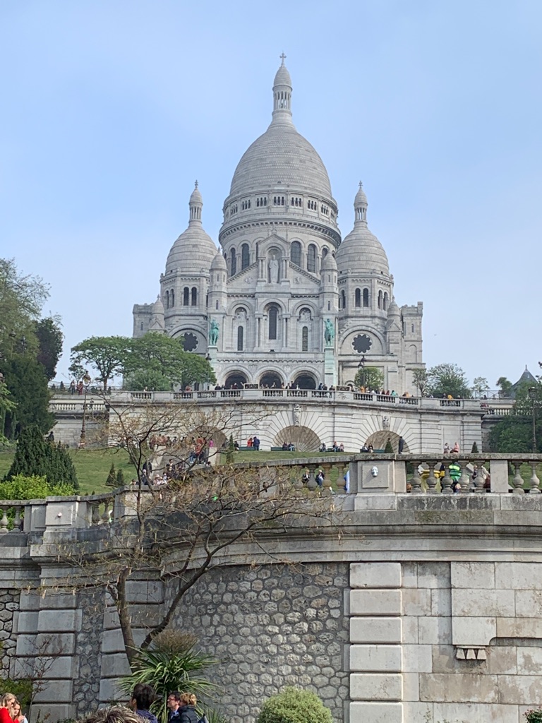 My, my, my. Only walked 7 1/2 miles today. Slowed down for our anniversary! 21 years. Mayday! Mayday! A true May Day in Paris with protests and riots that we managed to miss although we saw a lot of police presence - flanks of motorcycles and row after row of police vans. \240Linds had already looked up planned Metro closures and mapped out keeping us away from the action. We went to Montmartre to Sacre Coer. Didn’t go in. It was packed and we had been on our first visit so we just wandered around. Went into the Dali museum/gallery and then walked to the area with the last vineyard in Paris and where we went to for the wine festival when we came that first time together.