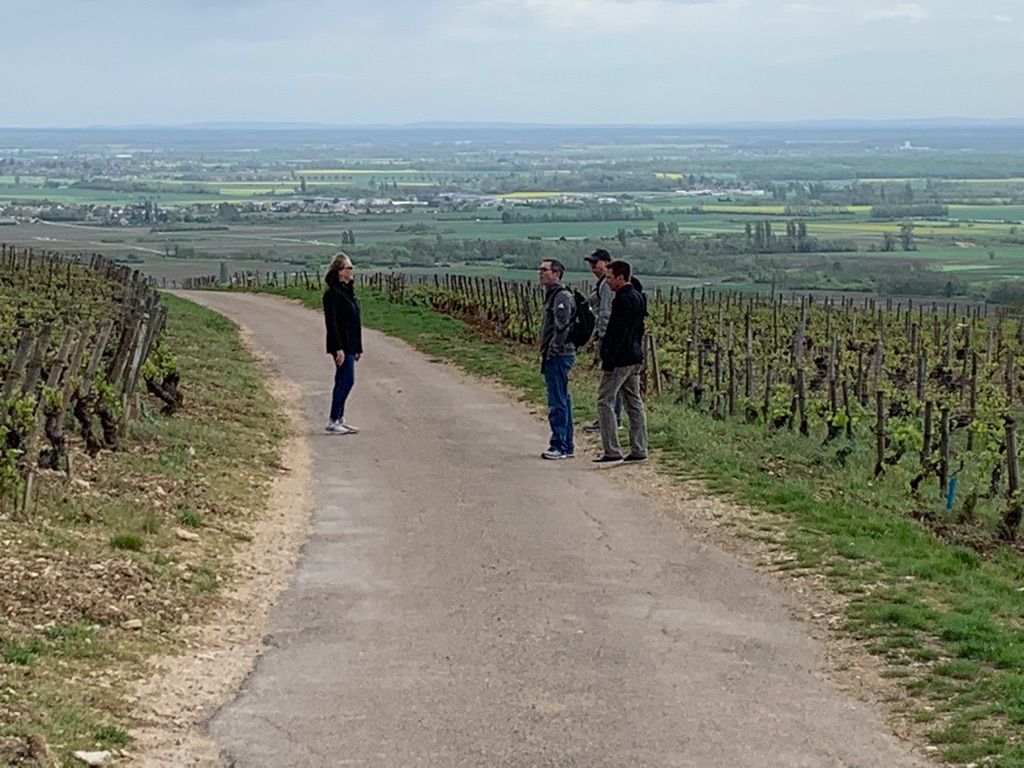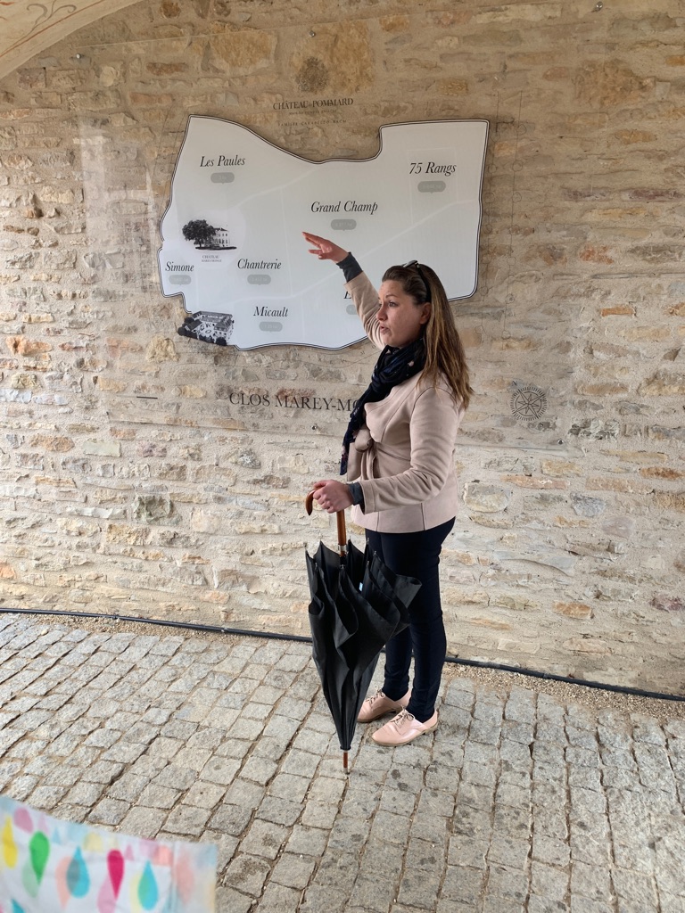 It really is April 27. Only issue is I can’t add my photos till tomorrow as they take a while to download. We went to Pommard today and walked around till our tasting time. Unfortunately the chateau was under scaffolding. But we did a little tour. We tried to stay out to discuss the terroir but along with the rain it was very windy. \240Lea, our guide, was nice but her English was not the best and then we had a Romanian couple join us and he keep asking the same questions in different ways over and over and we had lunch reservations at Le Montrachet. \240The wines were very good and she offered us seconds(!) but we had to get to lunch.