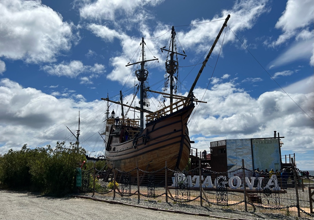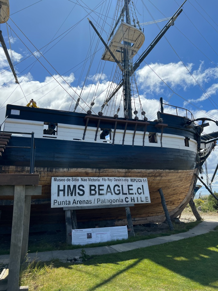 City tour was exhausting yesterday. Although it was interesting, everyone was tired from the 5 am wake up. I felt sorry for our tour guide as people seldom had any questions and would wonder back to get on the boat. We went to see replicas of one of Shackleton’s boats and Darwin’s the Beagle. \240Went to a cool cemetery but it started raining so that cut our visit short and we didn’t spend nearly enough time there. That would have been the best place to kill some time. \240Oh, yeah - did I mention the wind? Another reason why everyone would retreat to the bus. \240They used to have ropes along the streets so you could grab on to continue down the street. \240Now they have metal railings. We also stopped at view points, the town center, etc. \240but everyone just wanted to get to the boat which wasn’t ready for boarding til 4. \240But, we were finally able to board and it is a beauty. \240Everything is so modern. \240A little disappointed with the size of our room. The one we had on the Explorer was larger and it might have been second tier. On here we were upgraded to a 3rd tier with a balcony. \240A minor complaint - the ship itself is pretty awesome. We had to do our safety drill shortly after arrival, then it was the introduction of staff, features, options, etc. \240Then dinner - some lovely salmon which I think I will be eating a lot of.