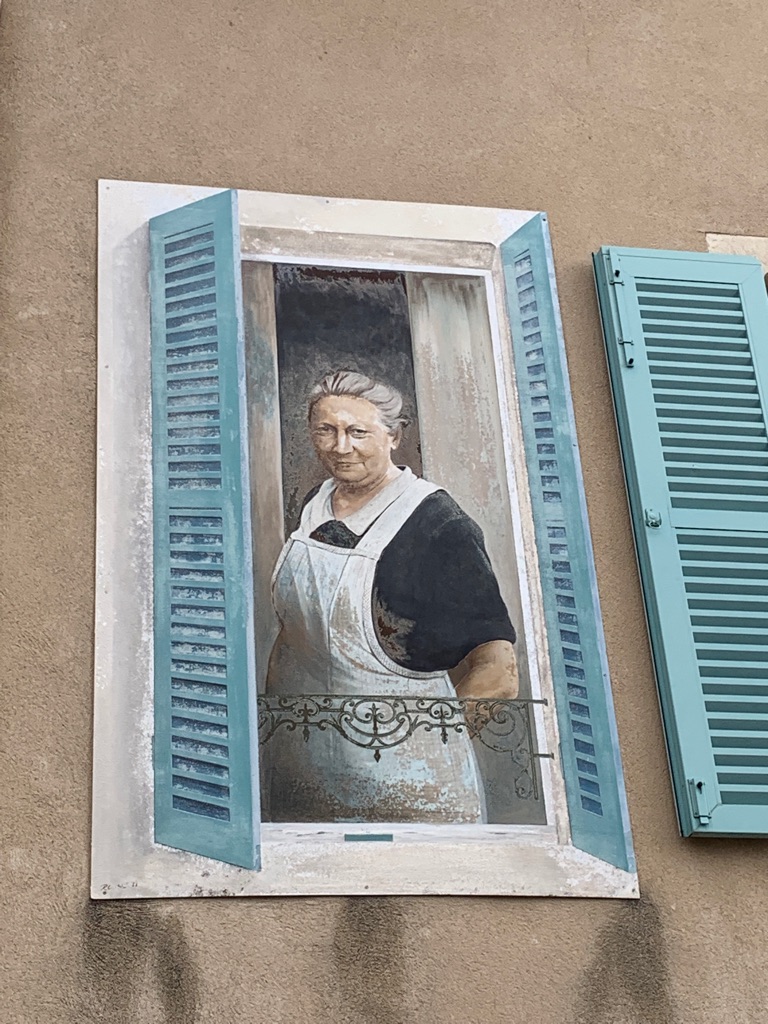 Okay on to yesterday. Maybe I can catch up today. I wrote one time in my other journal....On Thursday, we finally got baguettes and croissants from the bakery on the square. It was supposed to pour rain so we decided to try the hike that I had found on line and brought the directions. \240It starts right from the other square. Wasn’t sure if I was going to go but I started out and decided why not. If I get wet, I get wet. Glad I went - we went past tons of the most expensive grapes in the world, climbed a hillside, saw villages in the distance, went through a little hamlet, saw lots of wildflowers. \240Very fun. And somehow we did the whole thing before the rain started