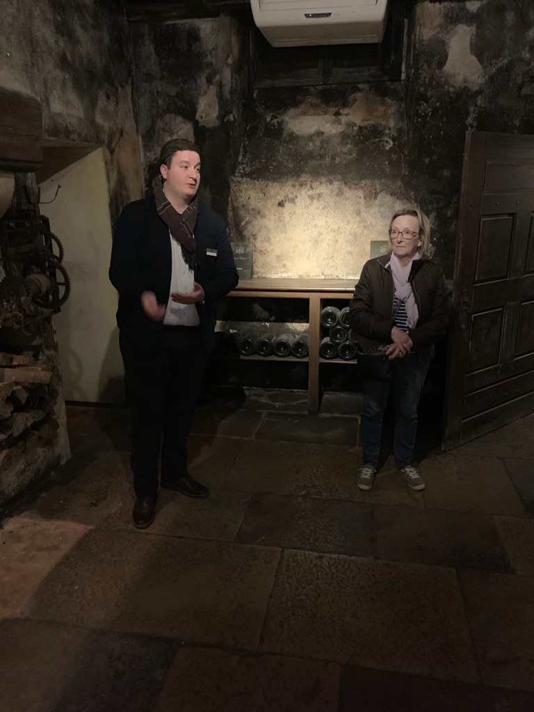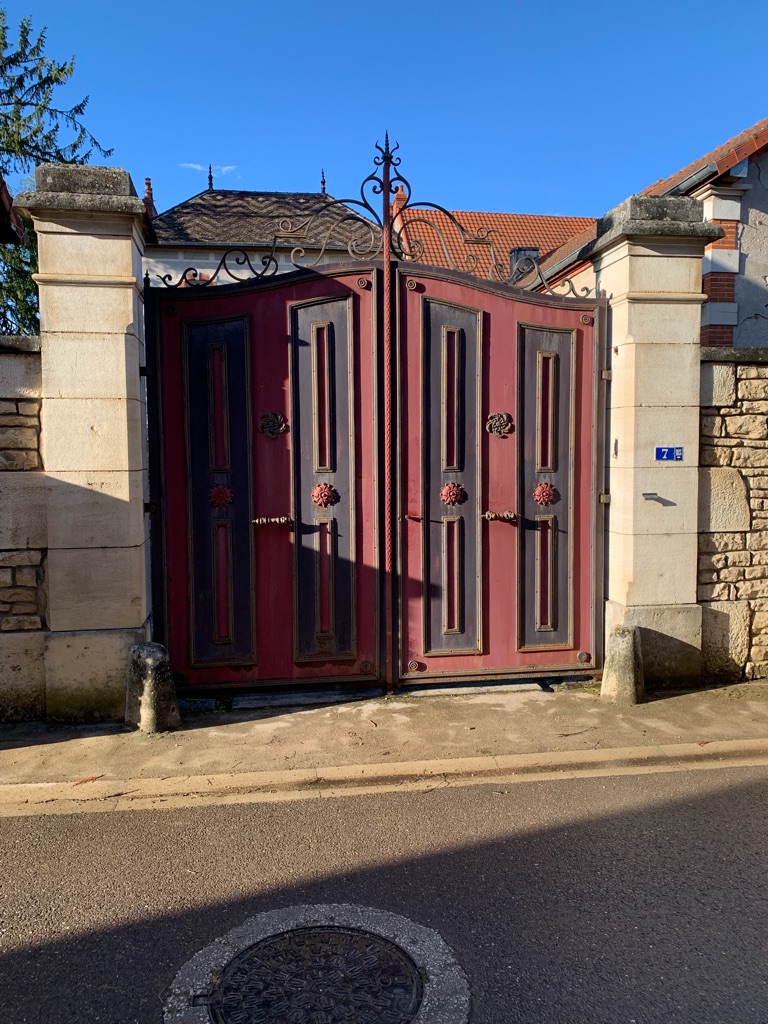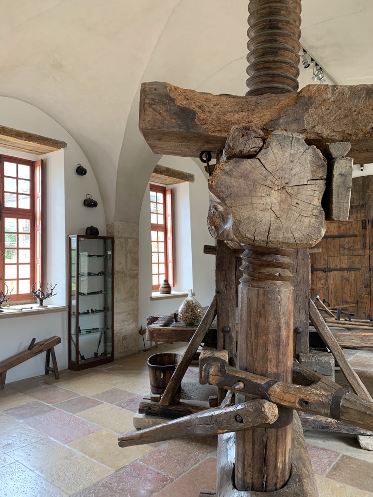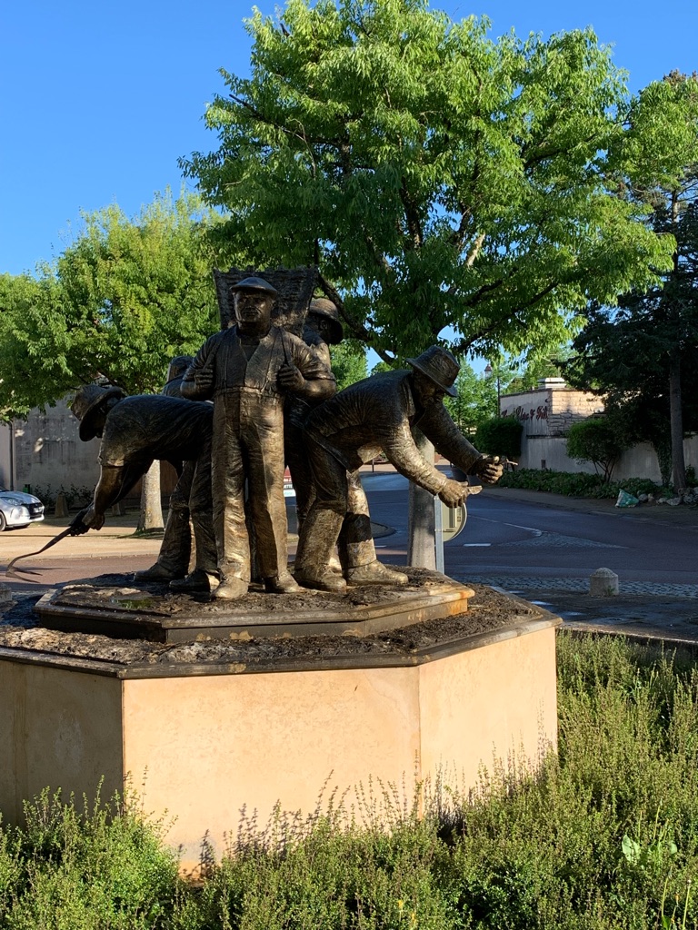 After the walk, it is of course, time for lunch. So a quick pit stop at house and we load in to Mike’s car and it is off to Meursault. Park in the square and off to find a place for lunch. Wound up back by the church at Les Arts. They put us in a back room. Nice menu. I just had beef borgounge. It took quite a while to get our plats - all the guys had entrees so they were fine but I was pretty hungry by the time I got my food. The beef was round and it was really good, but I was expecting lots of mushrooms and onions with it but it came with noodles. We had to rush out to make our 2 o’clock appointment at Chateau de Meresault. But we got there in plenty of time. Had to wait for them to reopen at 2. Great tour. Our tour guide Alex was great, spoke very good English and was not interrupted by the same questions over a and over like the day before. Still couldn’t go in to the Chateau - it hasn’t been occupied in decades and they are first restoring it. Fabulous wines in the wine tasting. \240Bought 1 to have with our last nights dinner and 2 to bring to Paris.