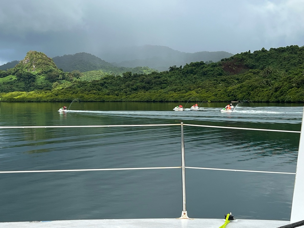 Had a fun evening. Went on the bridge and the Captain was telling us if we didn’t stay up to see the sunrise the whole trip was a waste. \240When we ran in to him again he said to get sleep as we had an exciting adventure in the morning. \240I finally got my chance to ask him if Jimmy White was still with Lindblad and in his way of looking at things, what he remembered was that we went further down a river in French Polynesia than anyone had gone before.