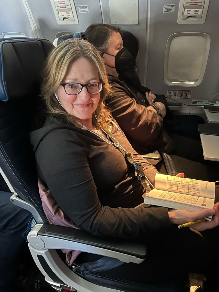 Fortunately Marie and Keith are seated just two rows back from the door so actually getting our stuff up top and seated isn’t difficult. Once we actual step on the plane, that is.