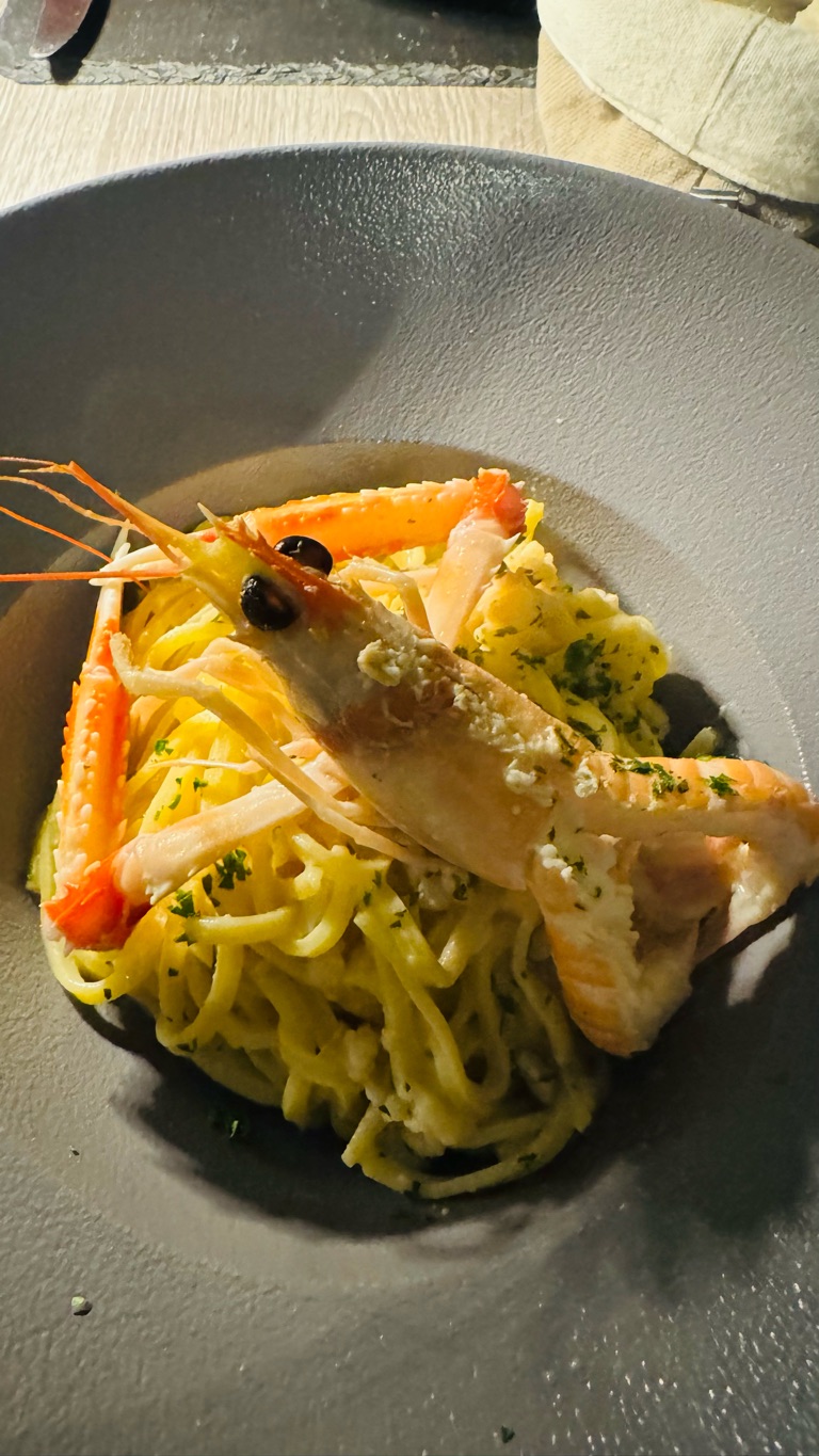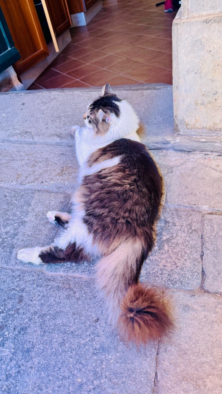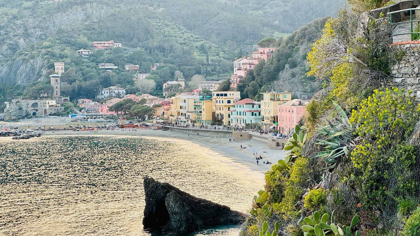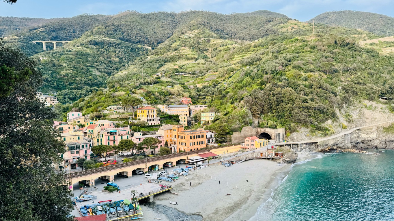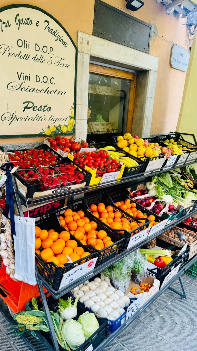 Tonight we had one of the best-tasting meals of the trip at a new restaurant.. Seafood spaghetti (remember we’re on the coast where fish here rule the day- and menus) and Ligurian Swordfish. We started with stuffed mussels and a carafe of the house white wine (only €8 a carafe!) All dishes were expertly prepared and tasted incredible. Monterosso al Mare is also home to many stray kitties (we counted five tonight alone). Khrystyan befriended one of them with spaghetti noodles and he hung out with us under her chair the entire night. The staff and locals are completely used to it, we went into one of the shops this morning and a kitty went inside the shop and hid in the back of one of the shelves and couldn’t be easily moved out so the shopkeeper just shrugged her shoulders and moved on.