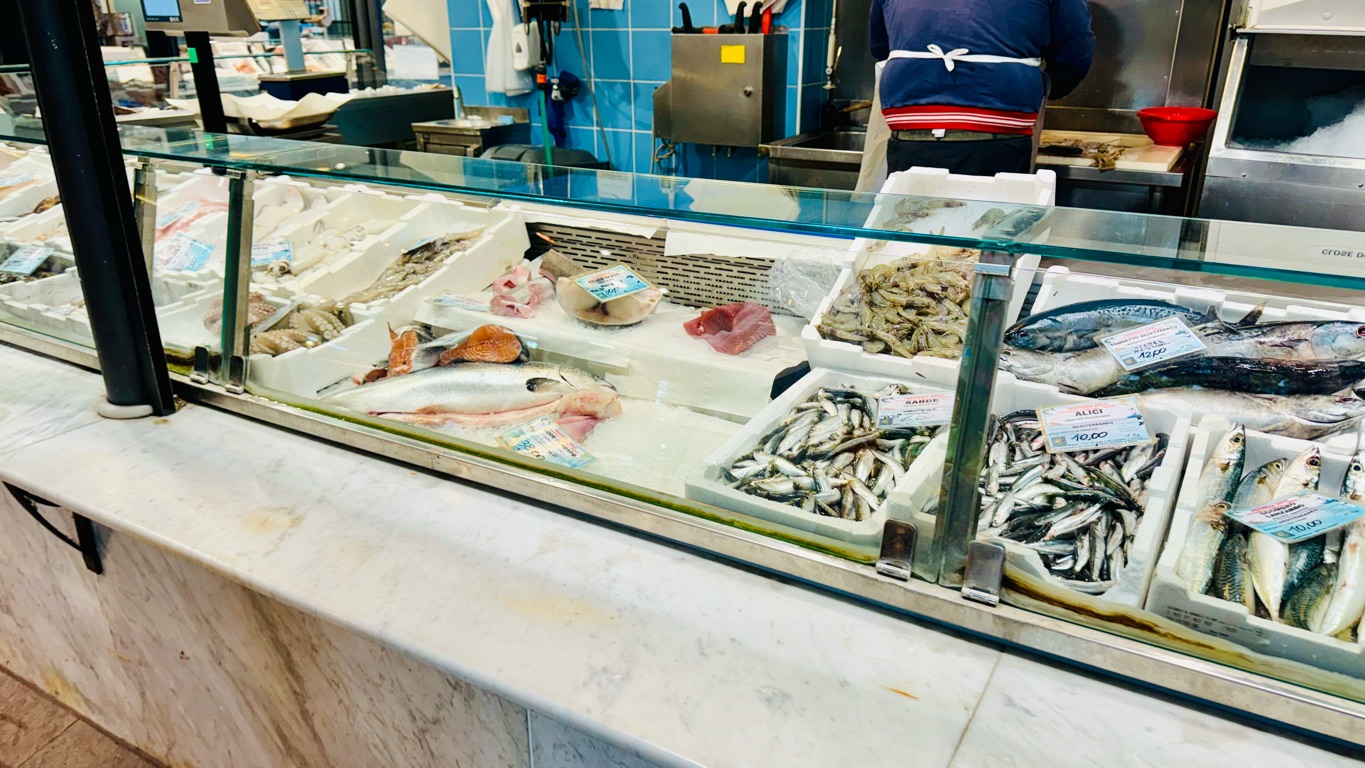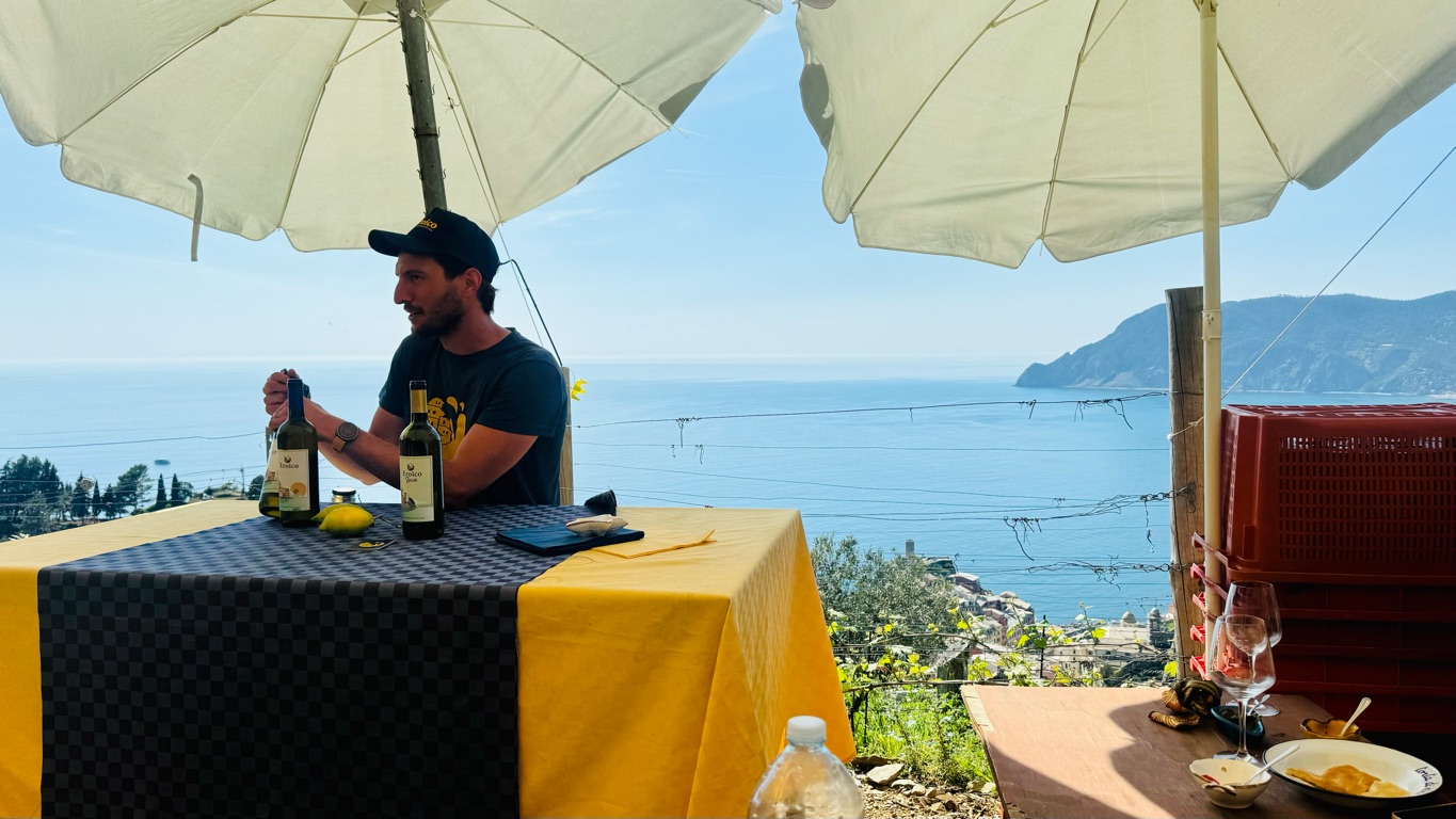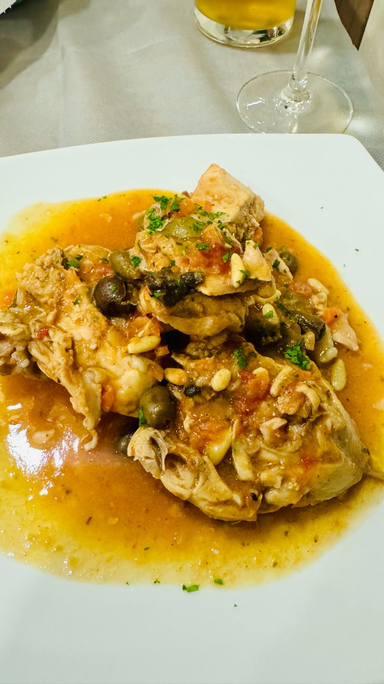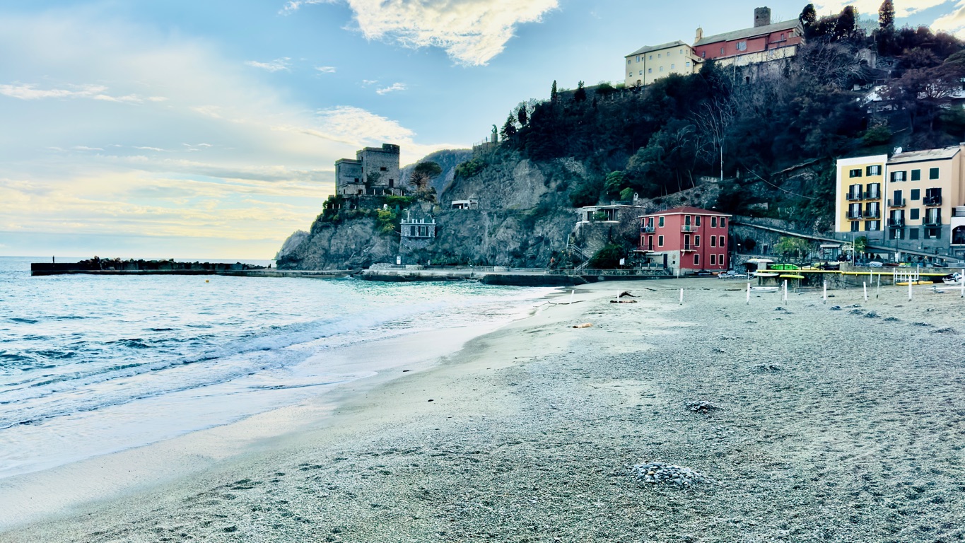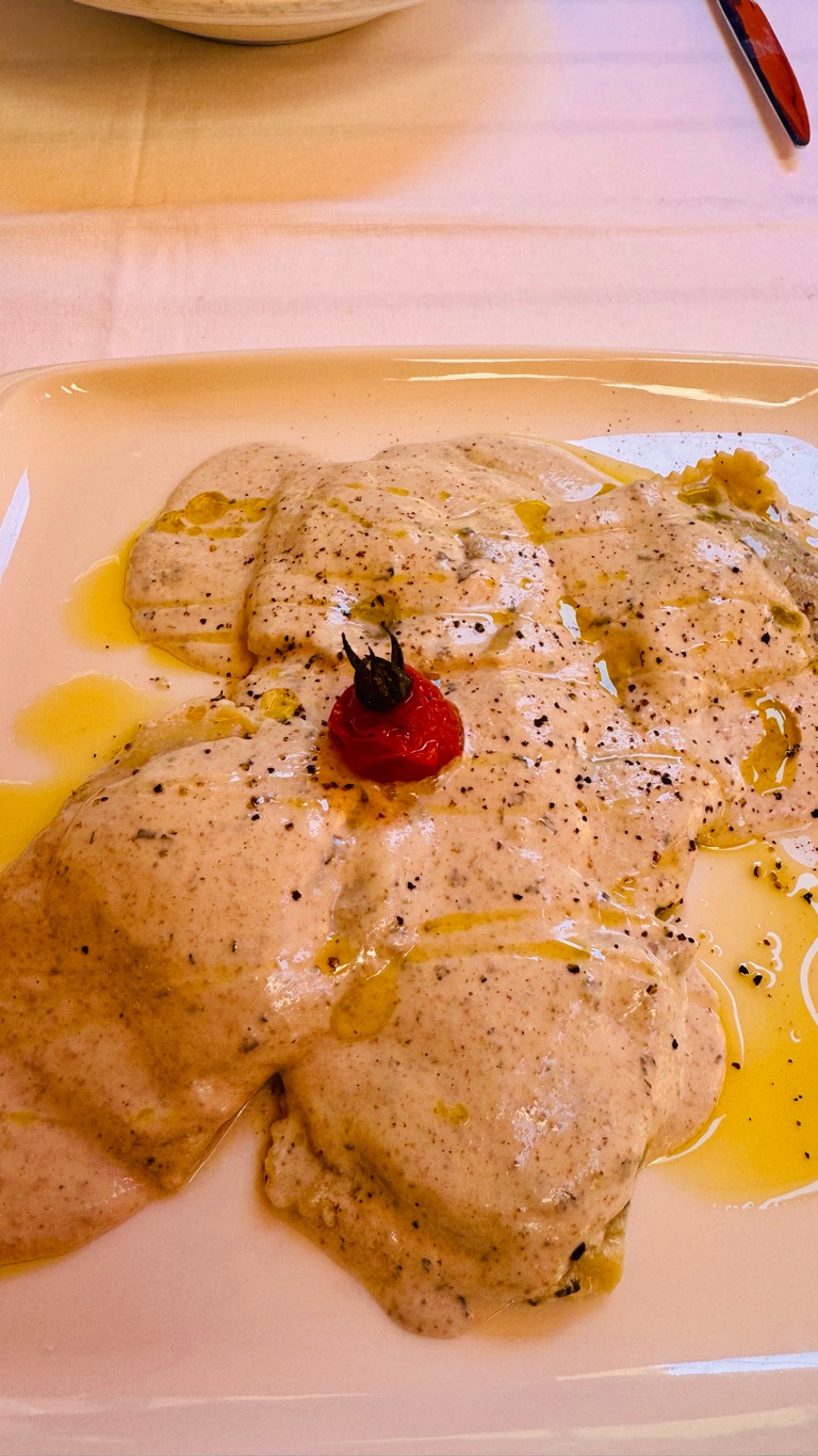 Tonight we had one of the best-tasting meals of the trip at a new restaurant.. Seafood spaghetti (remember we’re on the coast where fish here rule the day- and menus) and Ligurian Swordfish. We started with stuffed mussels and a carafe of the house white wine (only €8 a carafe!) All dishes were expertly prepared and tasted incredible. Monterosso al Mare is also home to many stray kitties (we counted five tonight alone). Khrystyan befriended one of them with spaghetti noodles and he hung out with us under her chair the entire night. The staff and locals are completely used to it, we went into one of the shops this morning and a kitty went inside the shop and hid in the back of one of the shelves and couldn’t be easily moved out so the shopkeeper just shrugged her shoulders and moved on.
