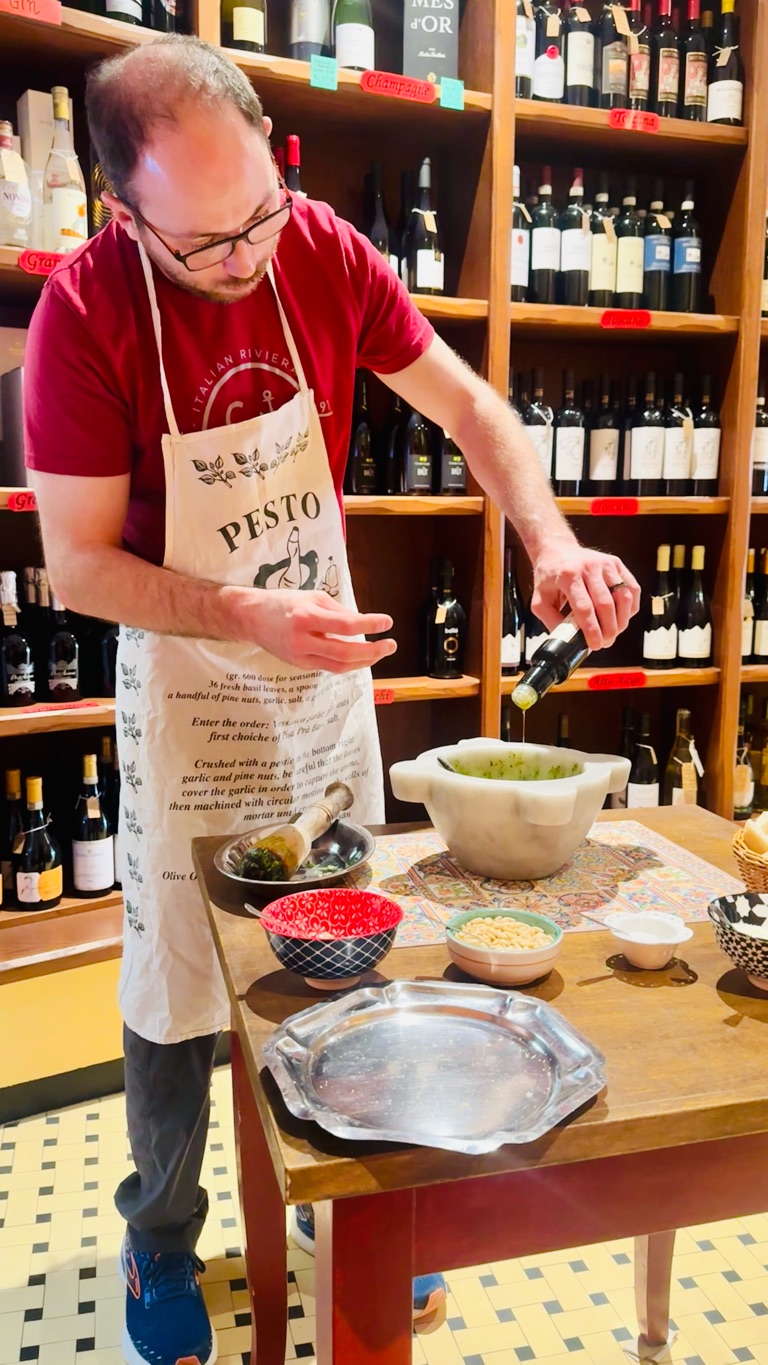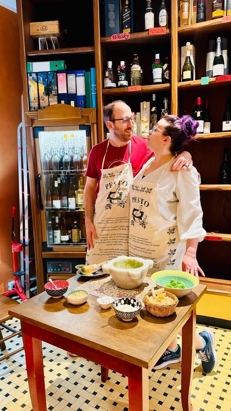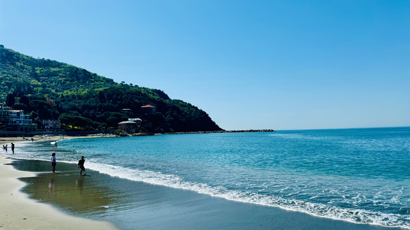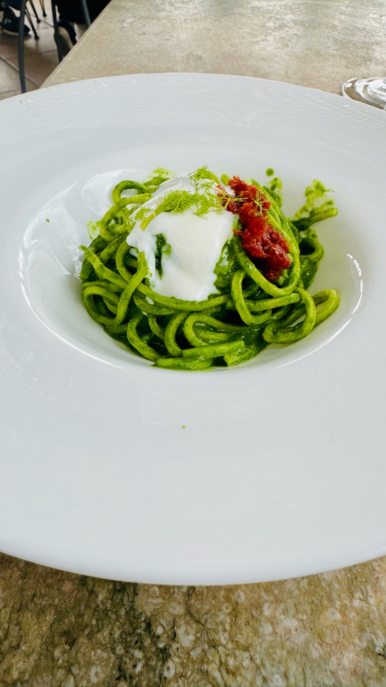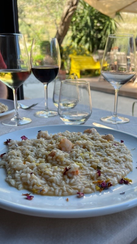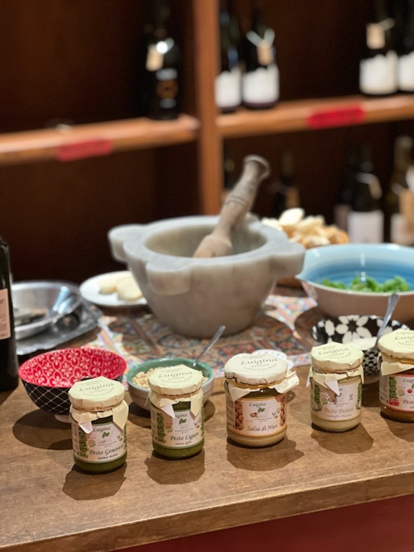 Tonight we had one of the best-tasting meals of the trip at a new restaurant.. Seafood spaghetti (remember we’re on the coast where fish here rule the day- and menus) and Ligurian Swordfish. We started with stuffed mussels and a carafe of the house white wine (only €8 a carafe!) All dishes were expertly prepared and tasted incredible. Monterosso al Mare is also home to many stray kitties (we counted five tonight alone). Khrystyan befriended one of them with spaghetti noodles and he hung out with us under her chair the entire night. The staff and locals are completely used to it, we went into one of the shops this morning and a kitty went inside the shop and hid in the back of one of the shelves and couldn’t be easily moved out so the shopkeeper just shrugged her shoulders and moved on.