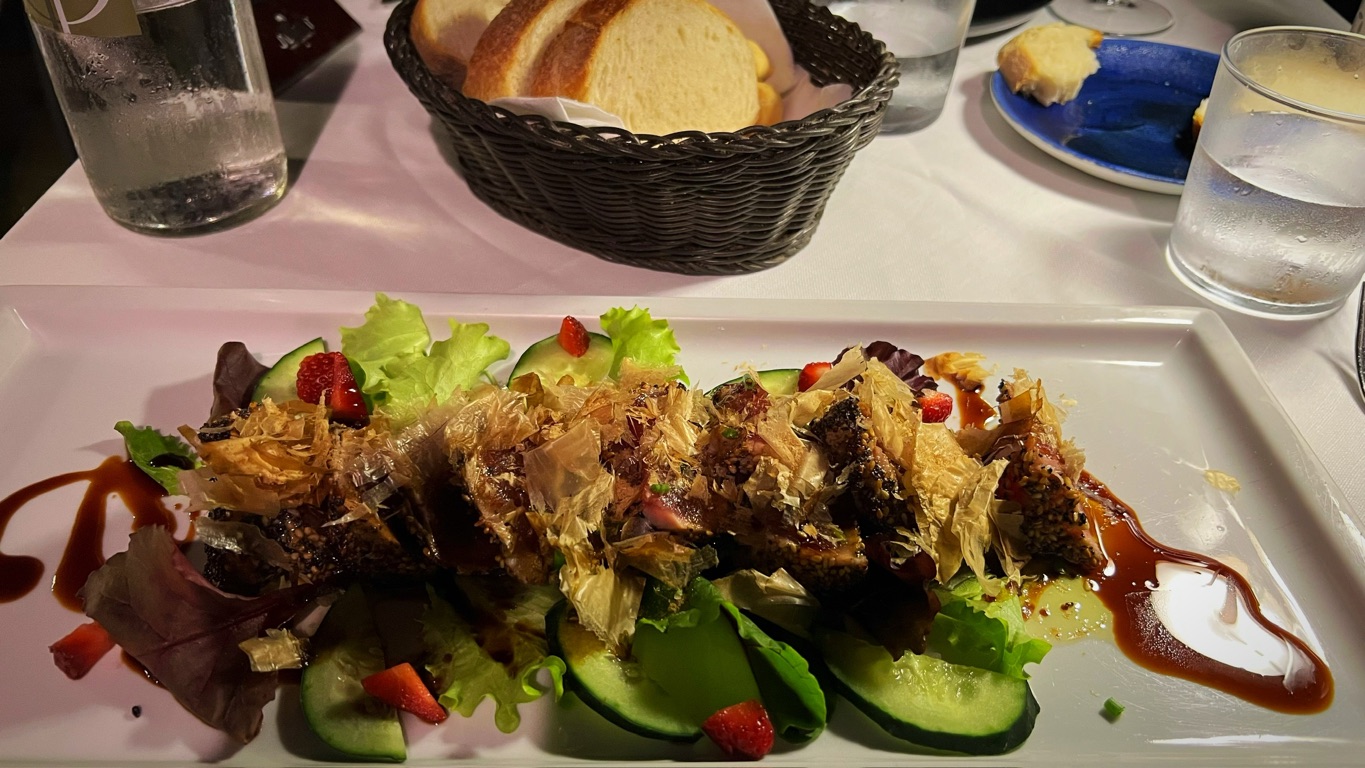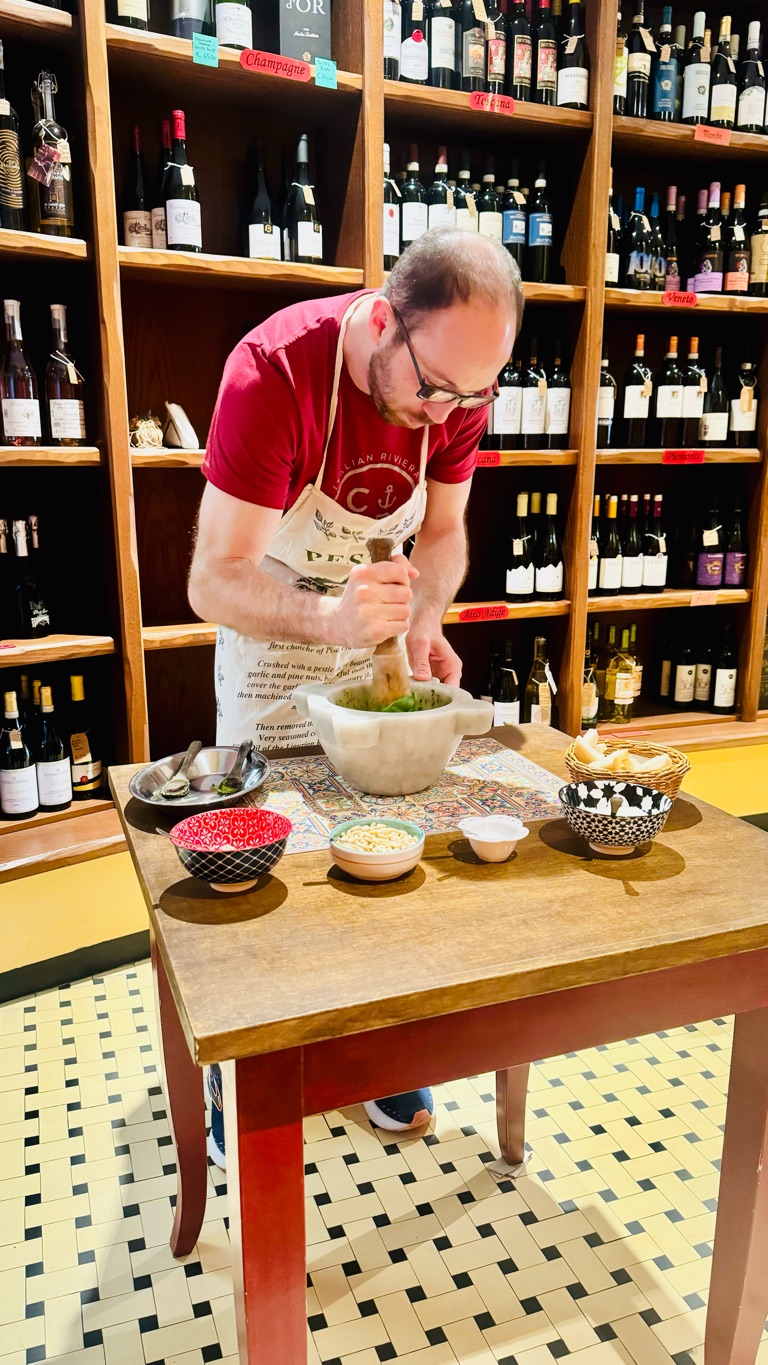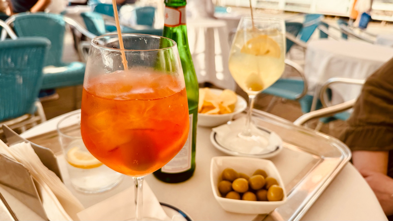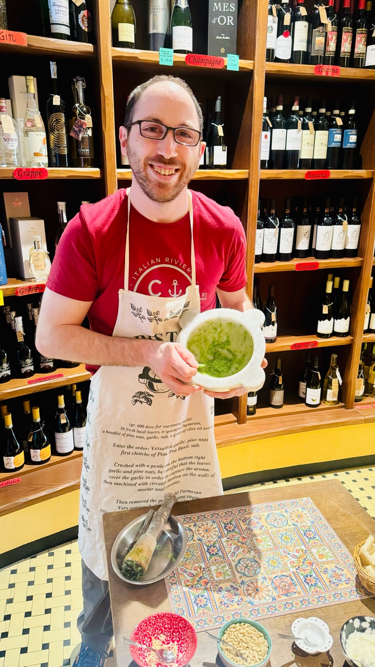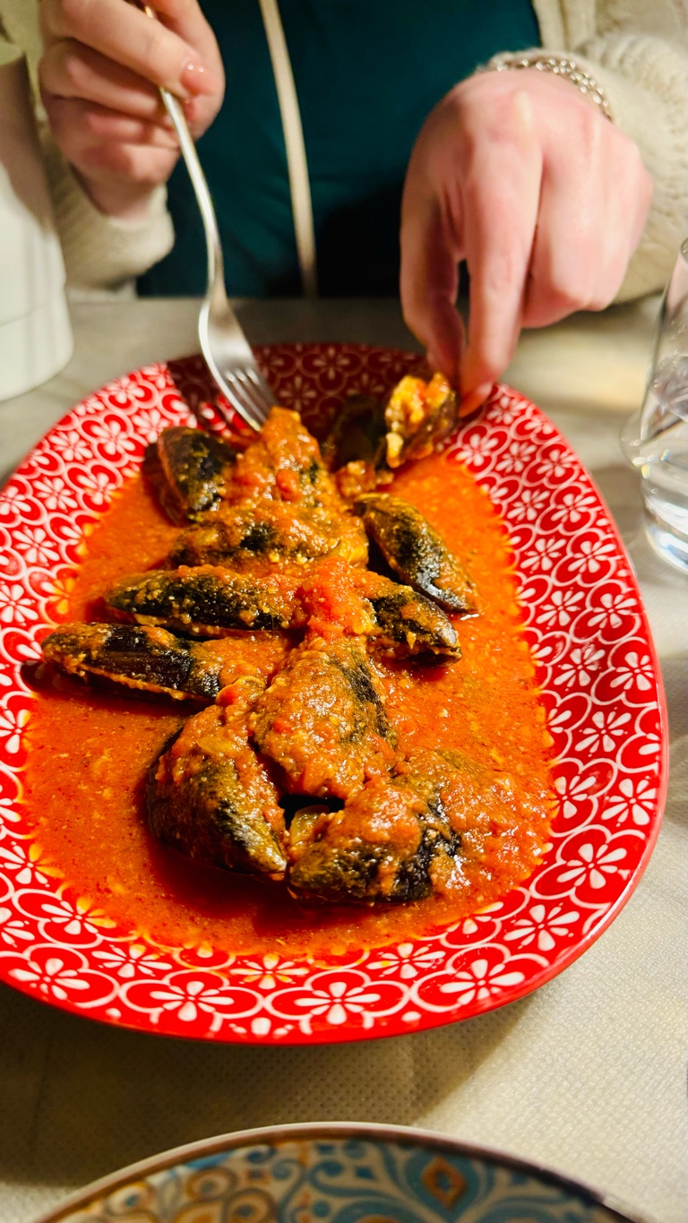 Tonight we had one of the best-tasting meals of the trip at a new restaurant.. Seafood spaghetti (remember we’re on the coast where fish here rule the day- and menus) and Ligurian Swordfish. We started with stuffed mussels and a carafe of the house white wine (only €8 a carafe!) All dishes were expertly prepared and tasted incredible. Monterosso al Mare is also home to many stray kitties (we counted five tonight alone). Khrystyan befriended one of them with spaghetti noodles and he hung out with us under her chair the entire night. The staff and locals are completely used to it, we went into one of the shops this morning and a kitty went inside the shop and hid in the back of one of the shelves and couldn’t be easily moved out so the shopkeeper just shrugged her shoulders and moved on.