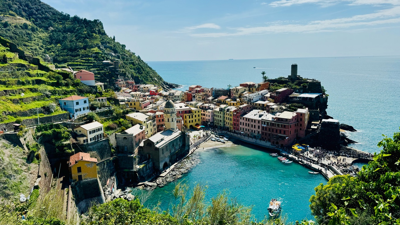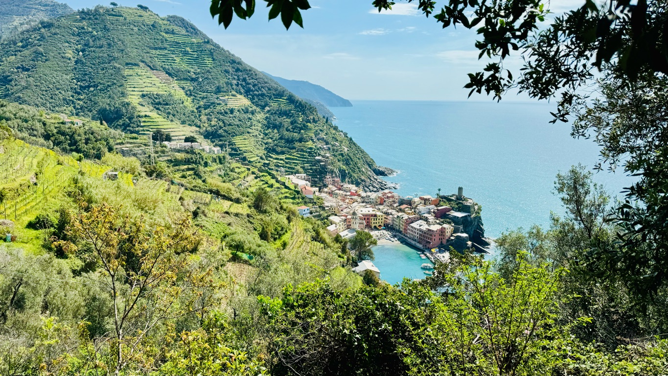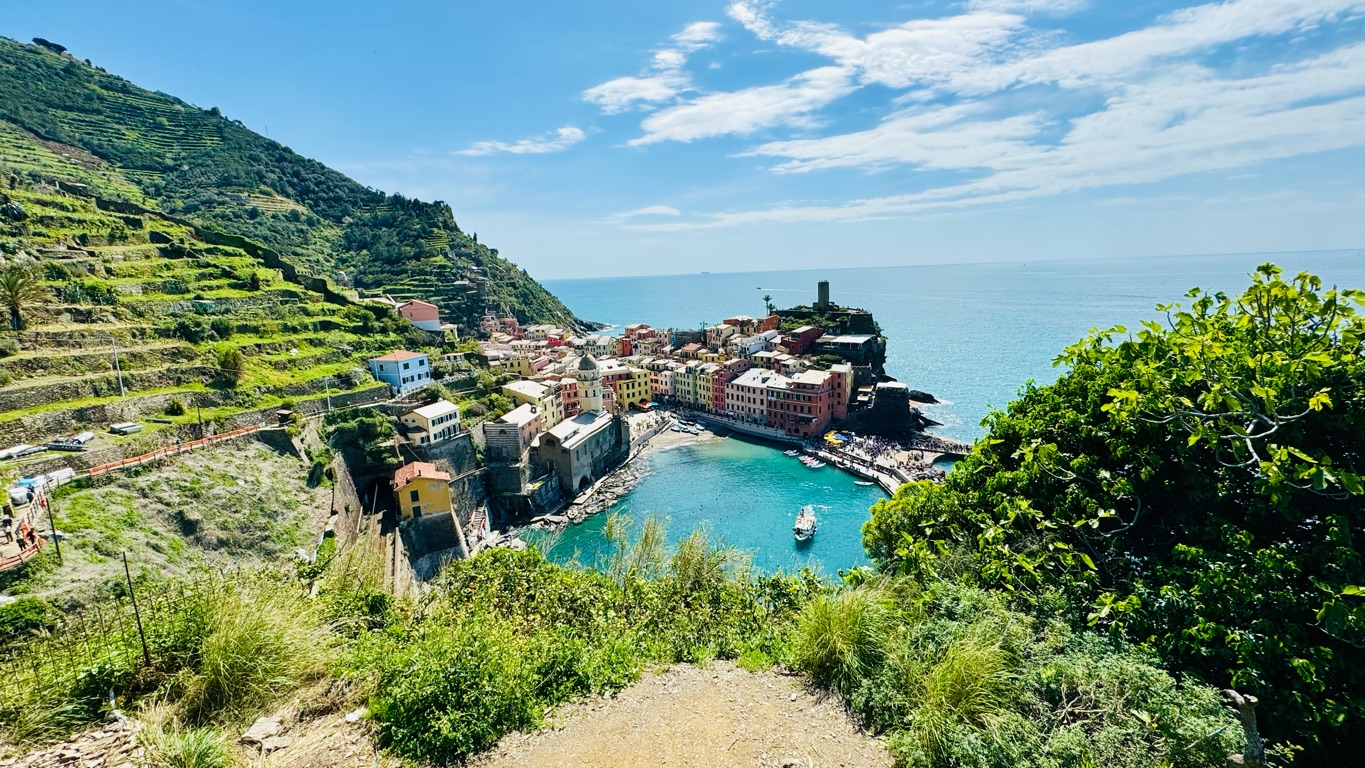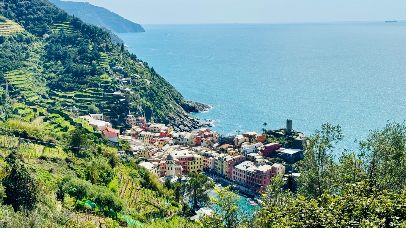 Vernazza is a gorgeous town with a small marina surrounded by stepped vineyards.