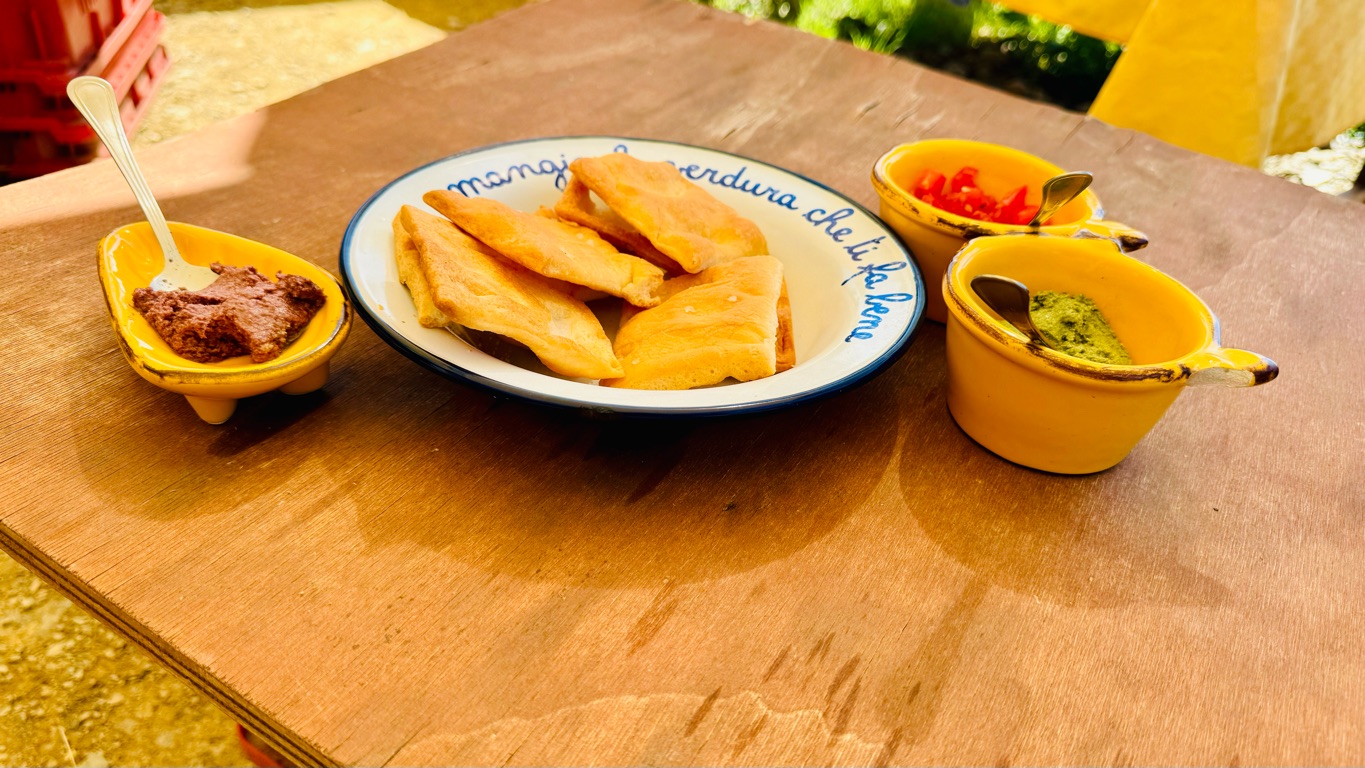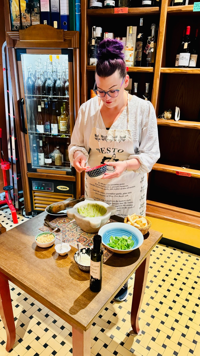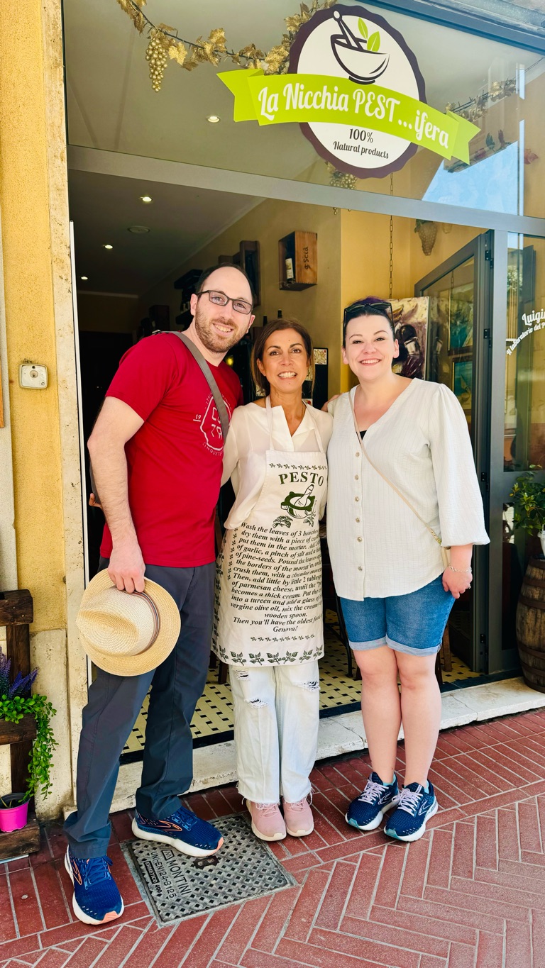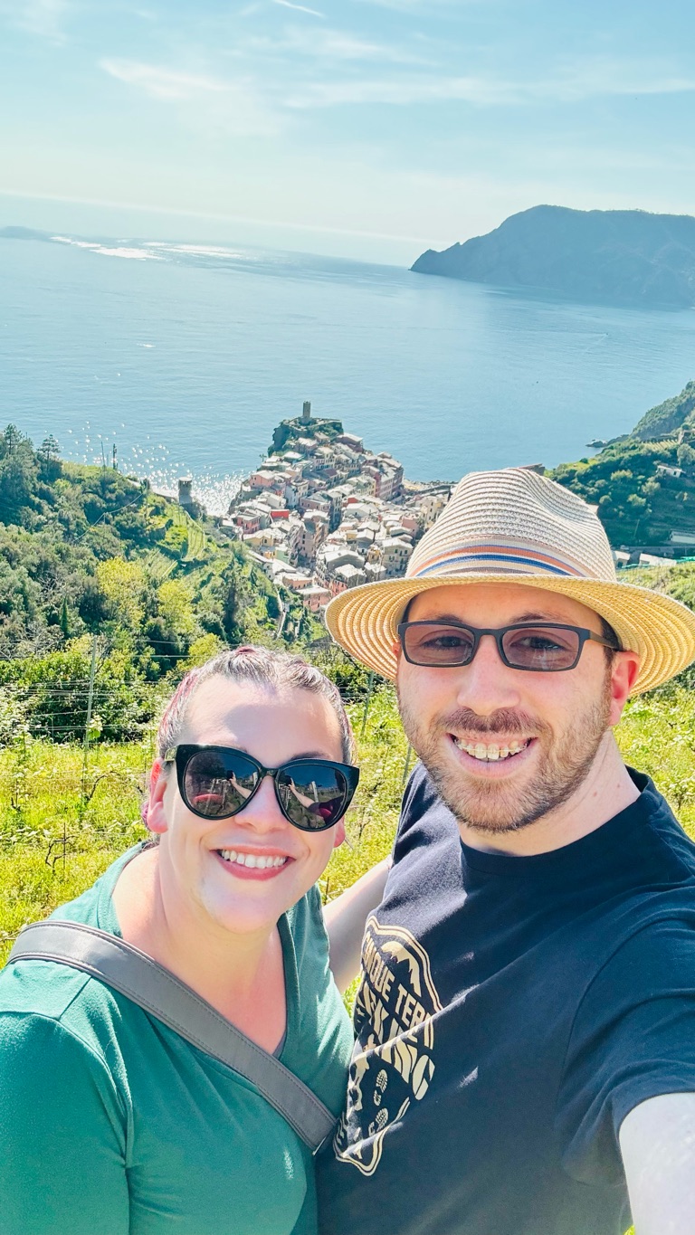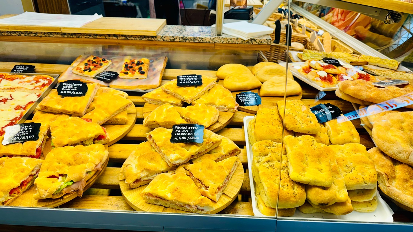 We both slept great in our AirBnB this morning! Comfy bed, small but cozy and comfortable flat with all the amenities (including a dryer!) I heard church bells for a bit last night reminding everyone of the time, so part of me was expecting to wake up to the 7am bells (like Venice) but that never happened. Since all of these towns are so incredibly small, it’s impossible to stay on the outside of town. We went downstairs and found a cafe with croissant sandwiches and focaccia sandwiches to go with our cappuccinos. We still can’t get over how amazing the cured meats are here, and paired with the area that invented focaccia in a sandwich? Delicious!