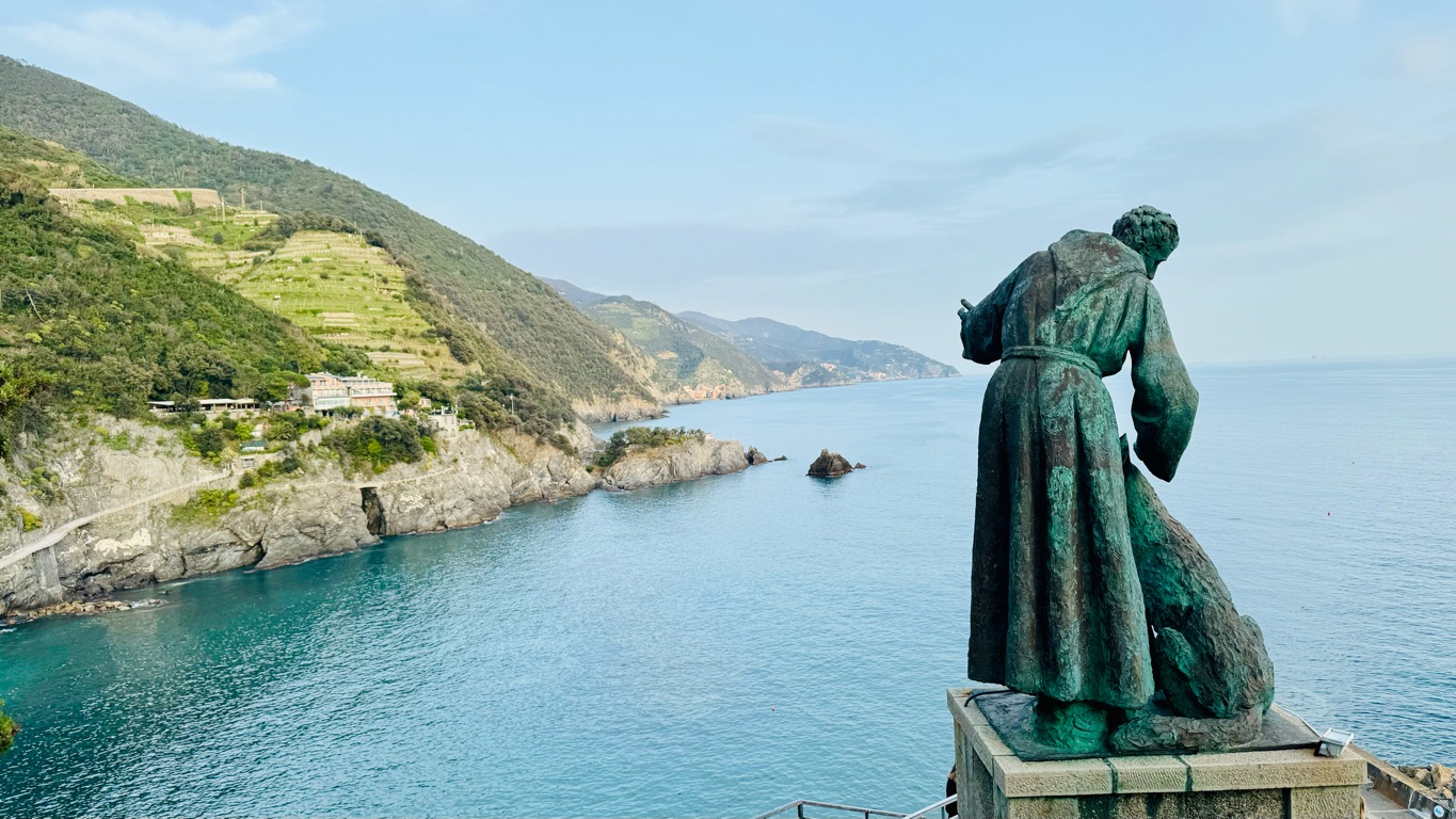 Statue of St Francis of Assissi overlooking the coast looking \240towards Monterosso al Mre