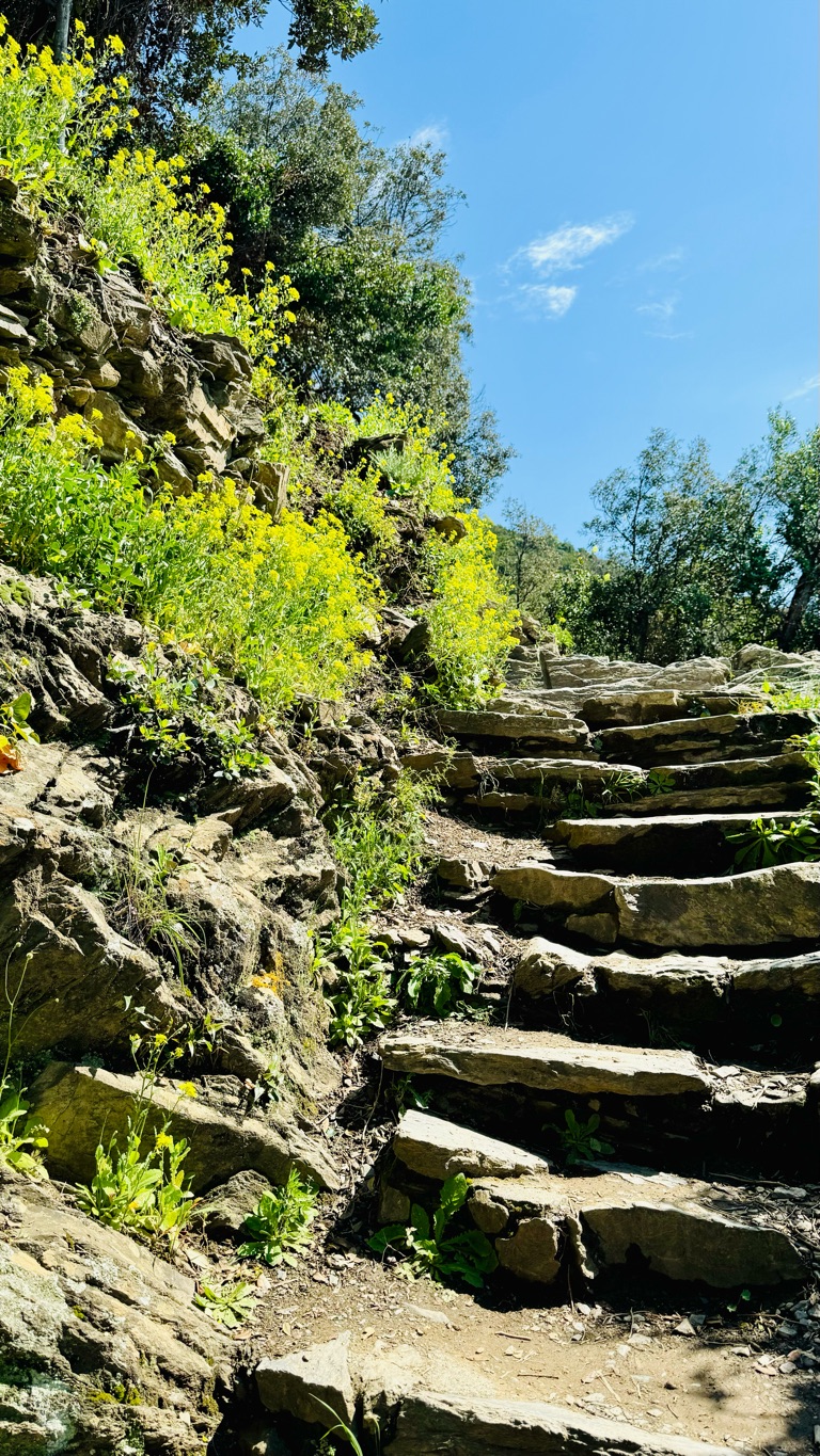 Alright- on to our hike from Monterosso al Mare to Vernazza. Rick Steve’s calls it the best in the Cinque Terre- but for advanced hikers only with a bunch of slippery steps, many steps/stairs, portions along steep cliffs without any rails etc. But I already bought and paid for trail tickets (required, national park police verify tickets are purchased and walk the trails to also ensure you’re wearing the right footwear- if you’re not they’ll stop you and walk you all the way back to where you started with a fine.