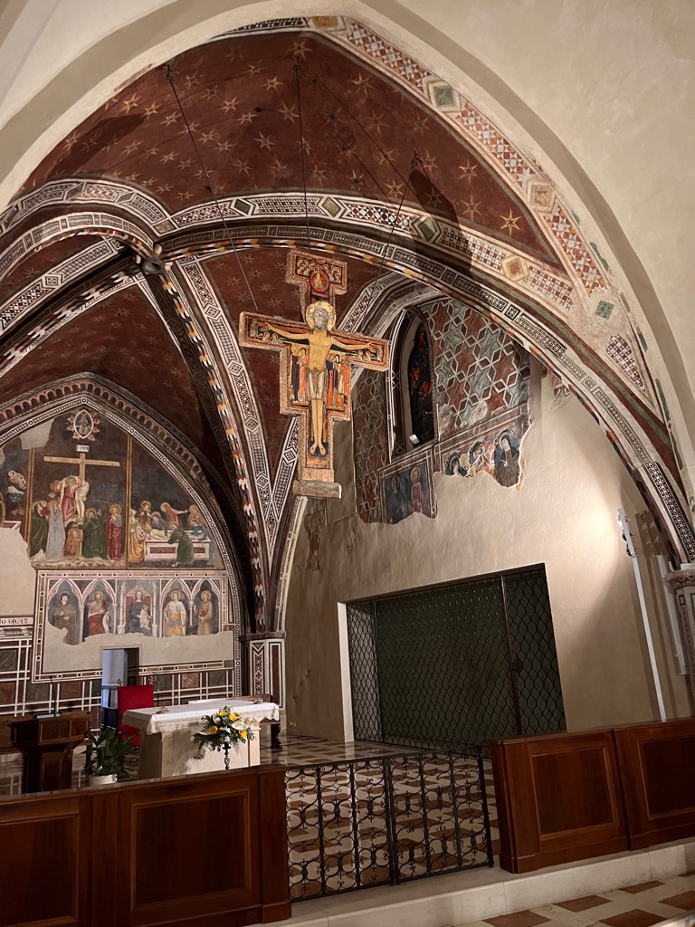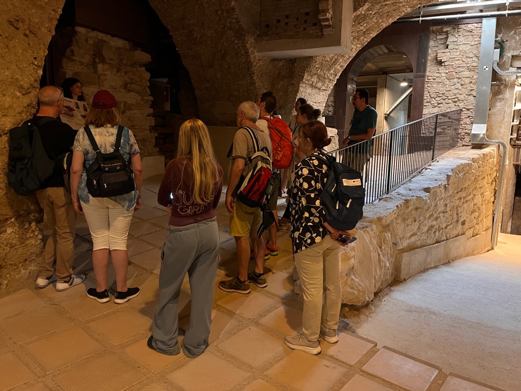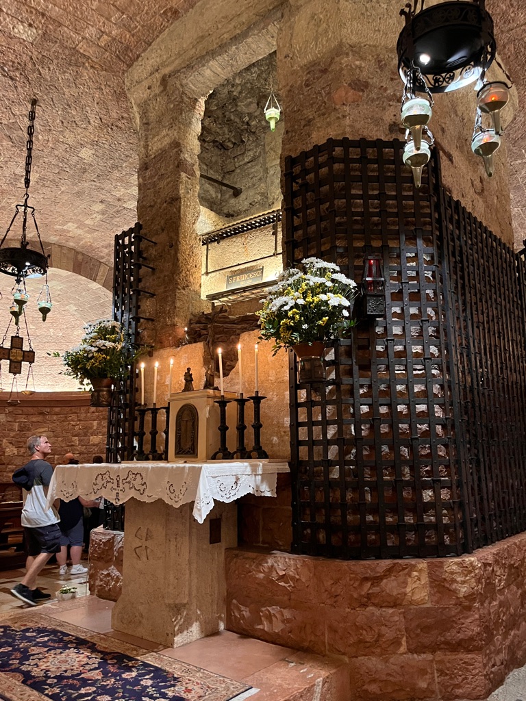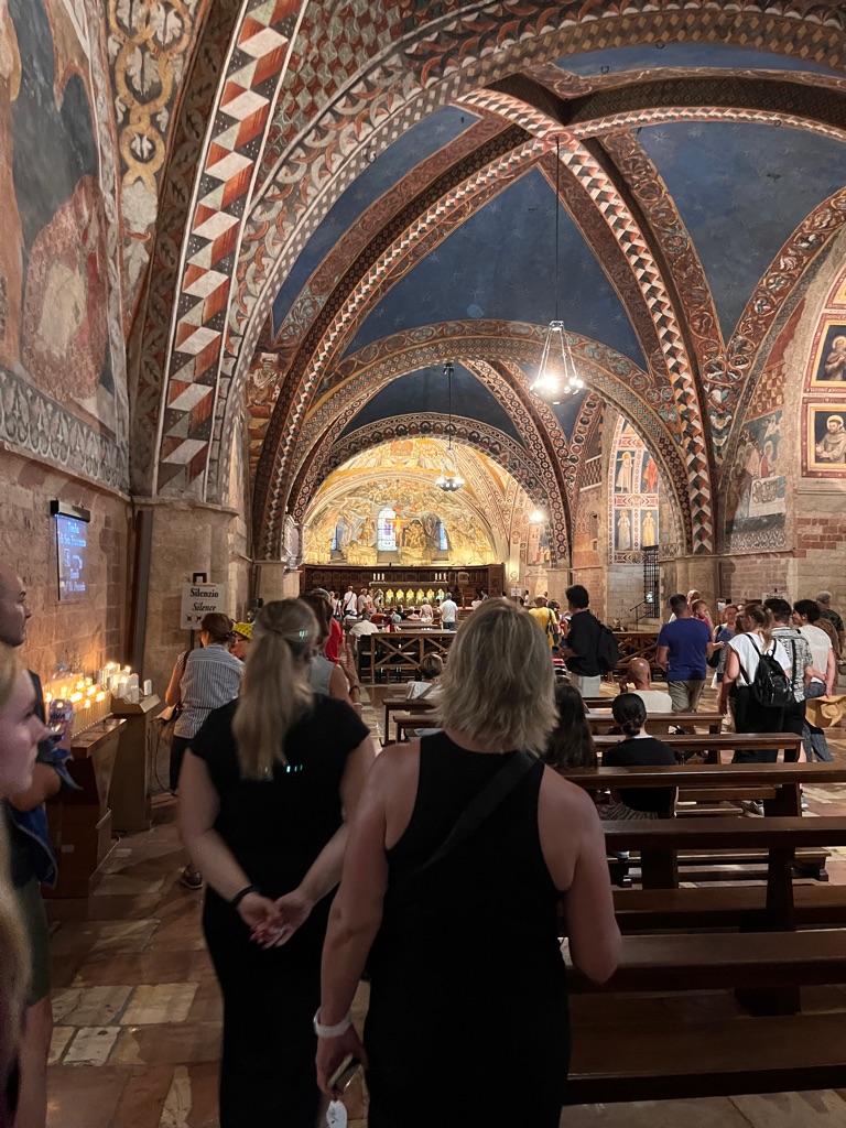 3 hour walking tour of Assisi with excellent guide Alessandra and 3 Americans. Walked entire length of Assisi visiting cathedrals, basilicas and crypts of St Claire and St Francis. Got t-shirt for Sasha on way back to car, then headed to Perugia 30 mins away for next tour. Faffed around looking for parking in Perugia before deciding to get lunch at McDonald’s on the outskirts of town (same price, similar menu but no fish, took 30 mins to prepare). Back to Perugia and found covered parking before 10 minute walk uphill to meeting point off Piazza IV Novembre. Loaned pads to be able to follow the tour in EN (Italian tour). Fascinating tour back through time (Etruscan, Roman, Medieval) of underground Perugia. A little short at 35 mins. Back to car and then back on the road to Castelraimondo.