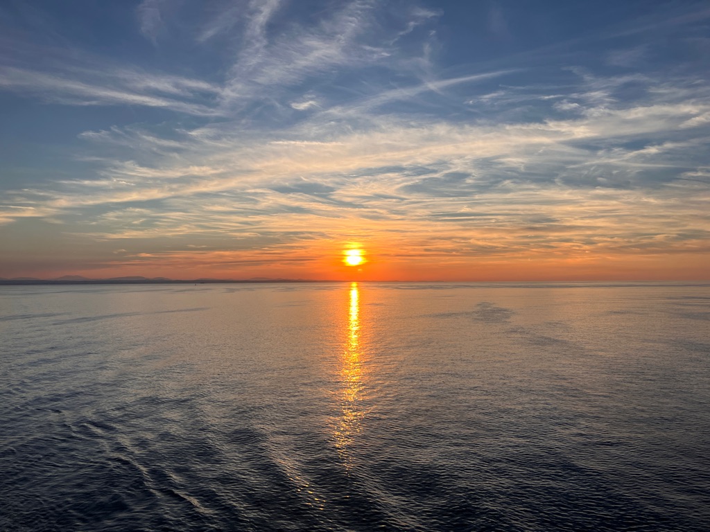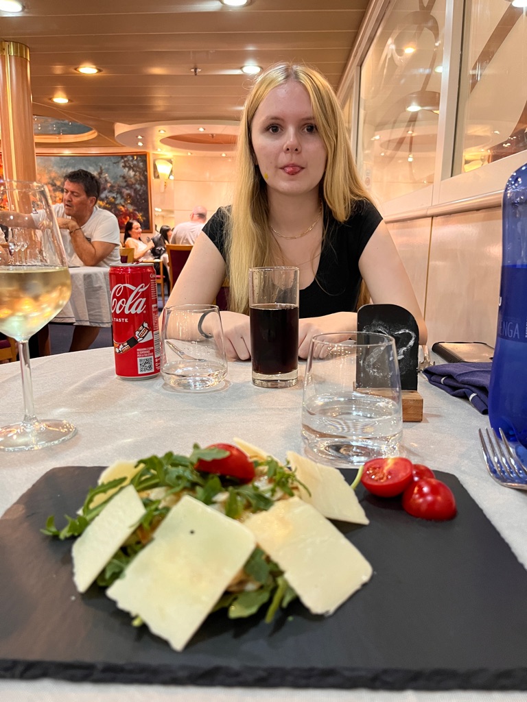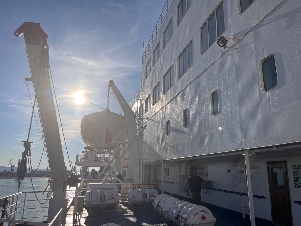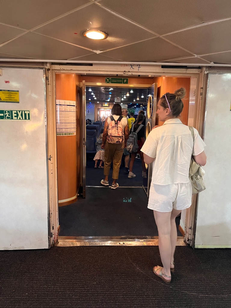 Decided to explore the ship while Sasha had a shower and also grabbed is some drinks from a very busy bar and corresponding queue. Eventually joined most of the passengers on the upper deck to witness the ship’s departure soon after 7.30pm.
