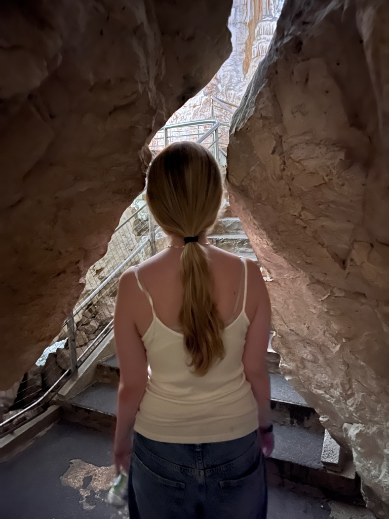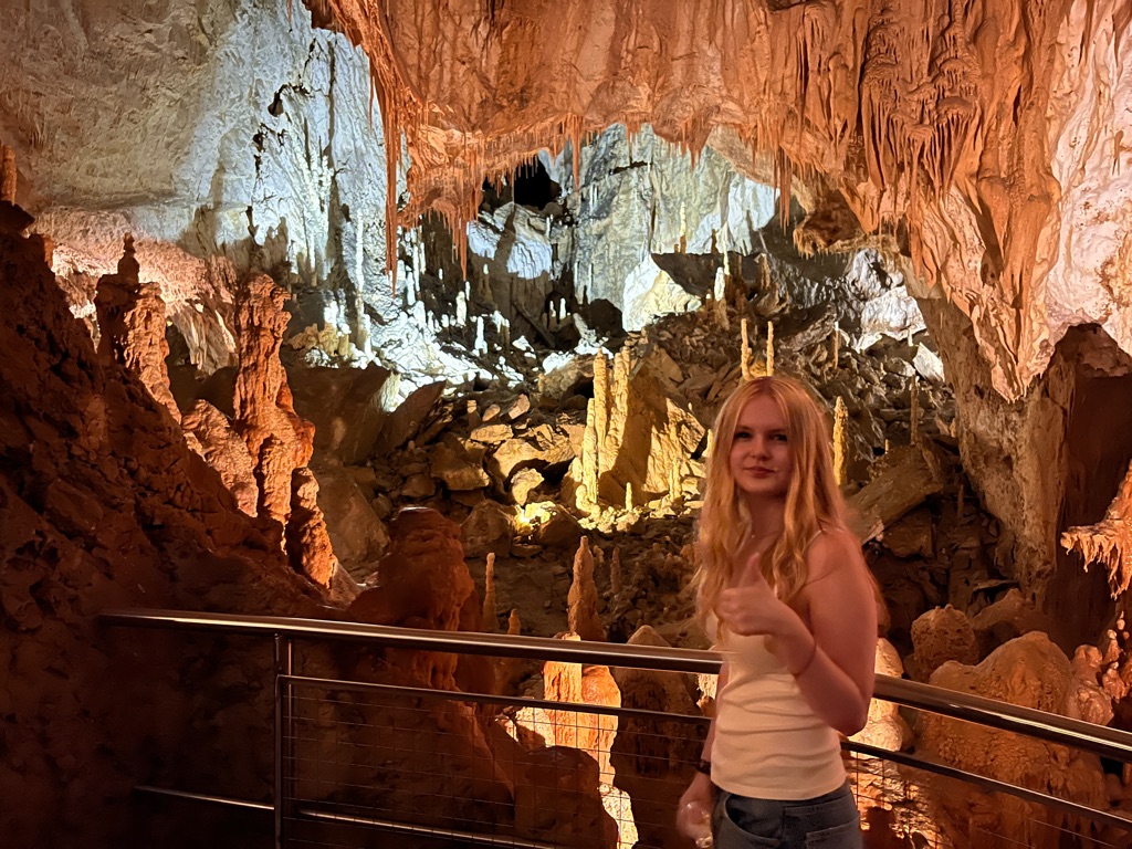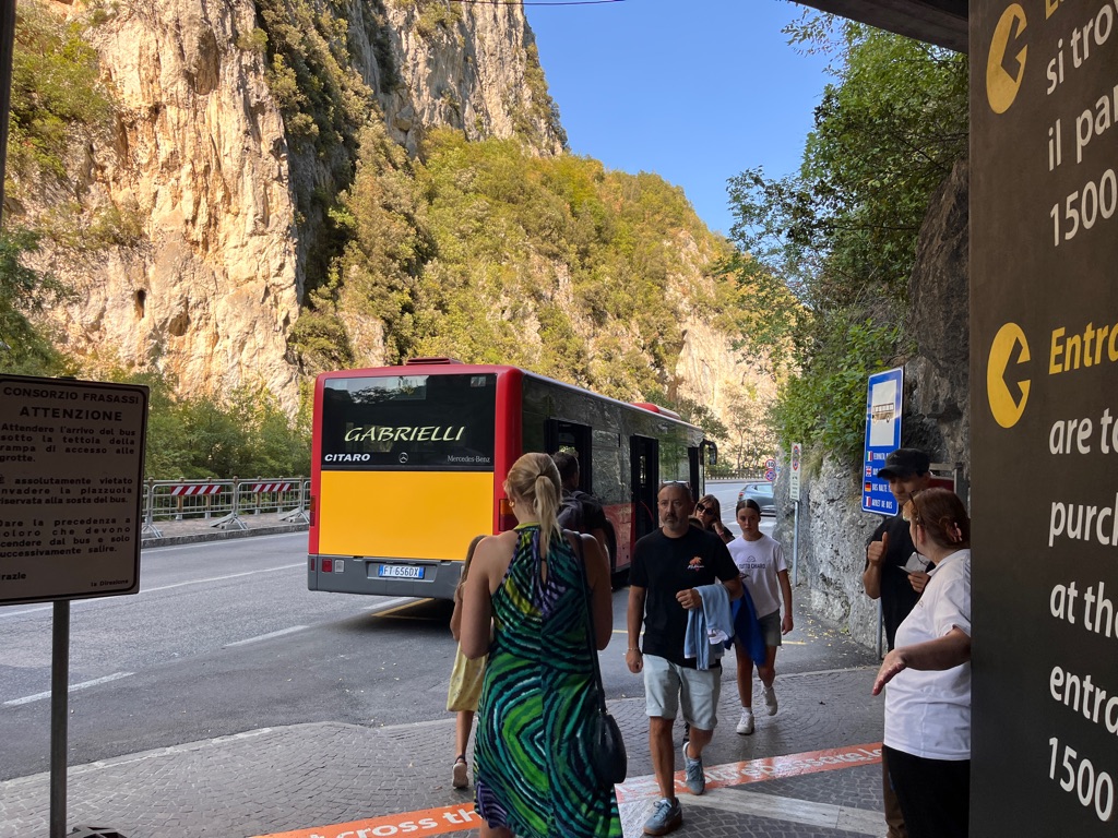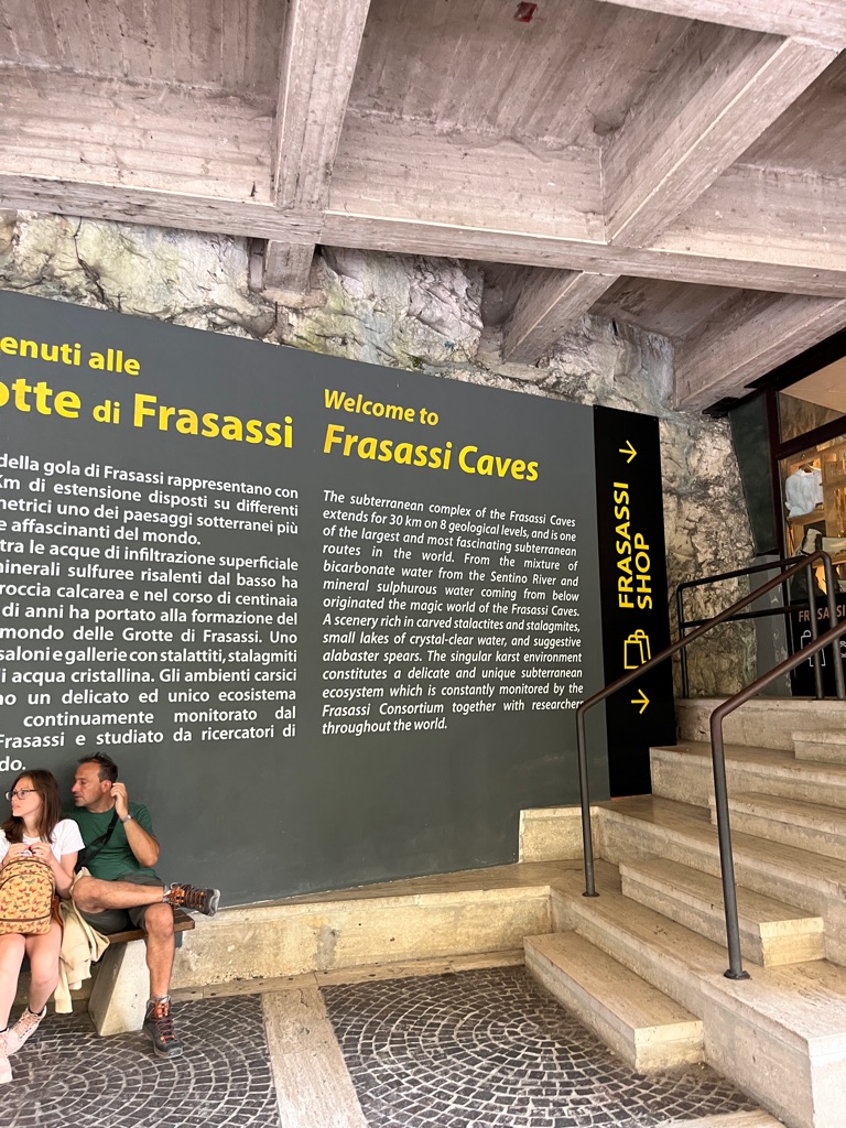 Lazy morning. Headed out before 1.00pm to Frasassi Caves, once babysitter turned up for Amber. Missed turning so ended up missing our timed tour slot. Lots of shenanigans with Phil buying food which wasn’t allowed on the shuttle bus from parking to caves themselves. Eventually changed to 2.40pm Italian language tour vs. purchased 1.40pm English tour.