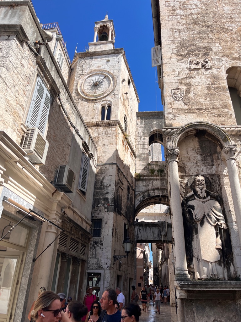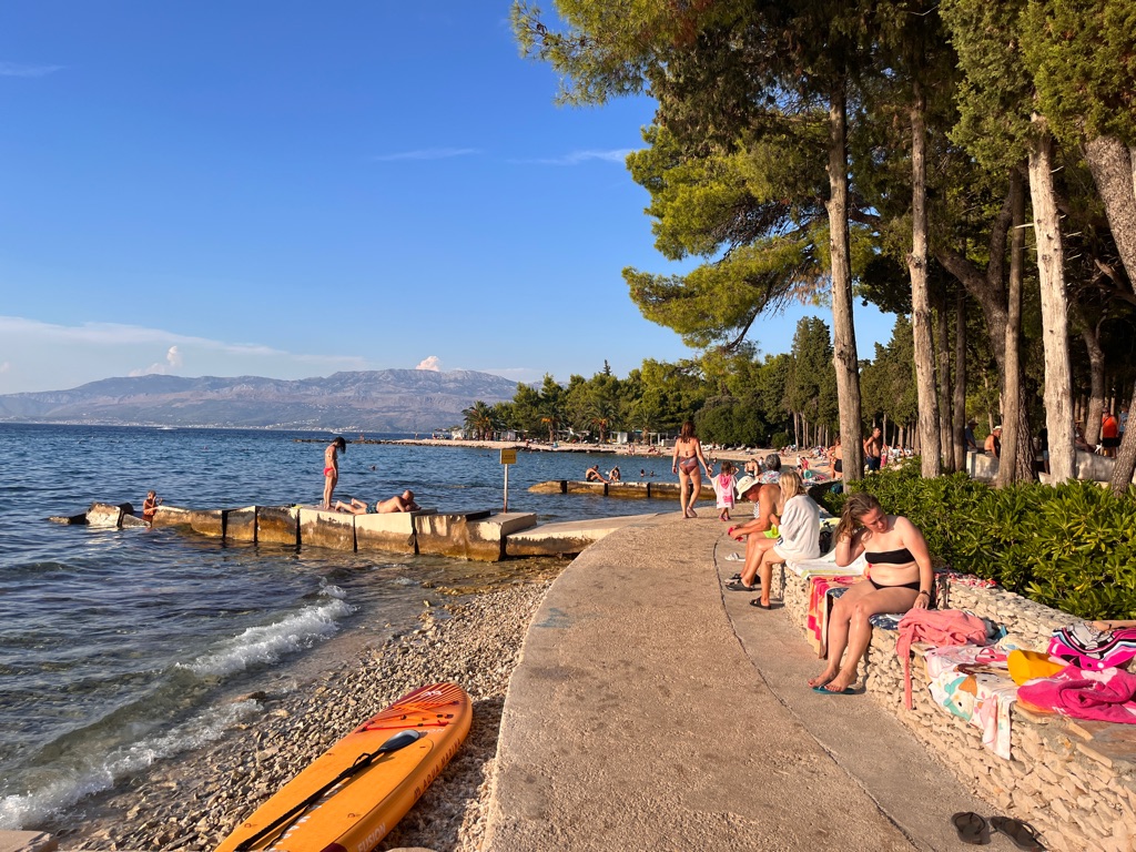 Sasha saying she wanted to have a rest (play on phone) so I went for a walk to see the city beach (eughh) and what’s left of the palace of the Roman Emporer Diocletian, which has been commercial to death with shops and stalls selling tat and all other spaces occupied by ice-cream places, restaurants or tourists. Went to the local ‘Tommy’ supermarket on the way back to SeaBed to get some beers, nibbles, fruits and veg for Sasha which was incredibly cheap and illustrated how much food outlets rip off tourists. Sasha showered and basically spent the entire day on her phone (no catch-up sleep), while I populated the last 8 days of my ‘traveller’s diary’.