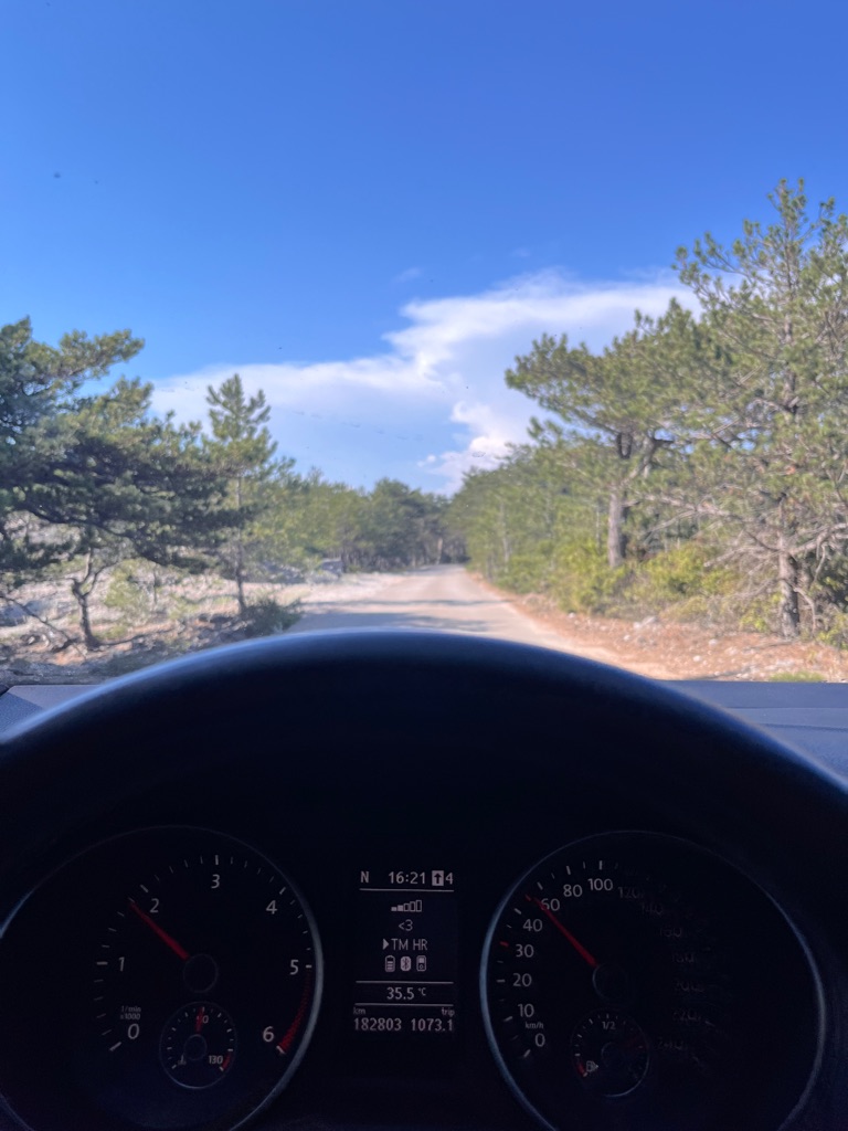 Research unearthed 5 gas stations on the entire island, so decided to head due west on very quiet road with many twists and turns and sheer drop edges passing Postira and Splitska. About a 40 minute drive arriving at Supetar to the same gas station where I bought cigarettes the day before. Filled up with too much diesel (€42) and placated Sasha with some Bueno and yet more obligatory bottled drinks.