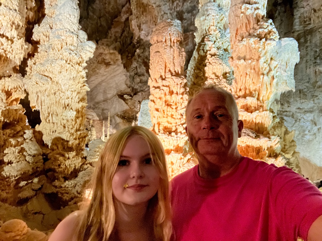 Spent a good 1.5 hours in the caves themselves. Breathtaking and very cool. Shuttle bus back to parking. Some light snacks/drinks (loads of food places) before Phil and Co departed to get back to babysitter. Sasha and I took a drive into the National Park (elevated unfinished roads and hairpin bends, etc) which culiminated in somehow ending up back where we started, adjacent to the caves. Returned to Belvedere early evening for another Phil/Jo cooked dinner.