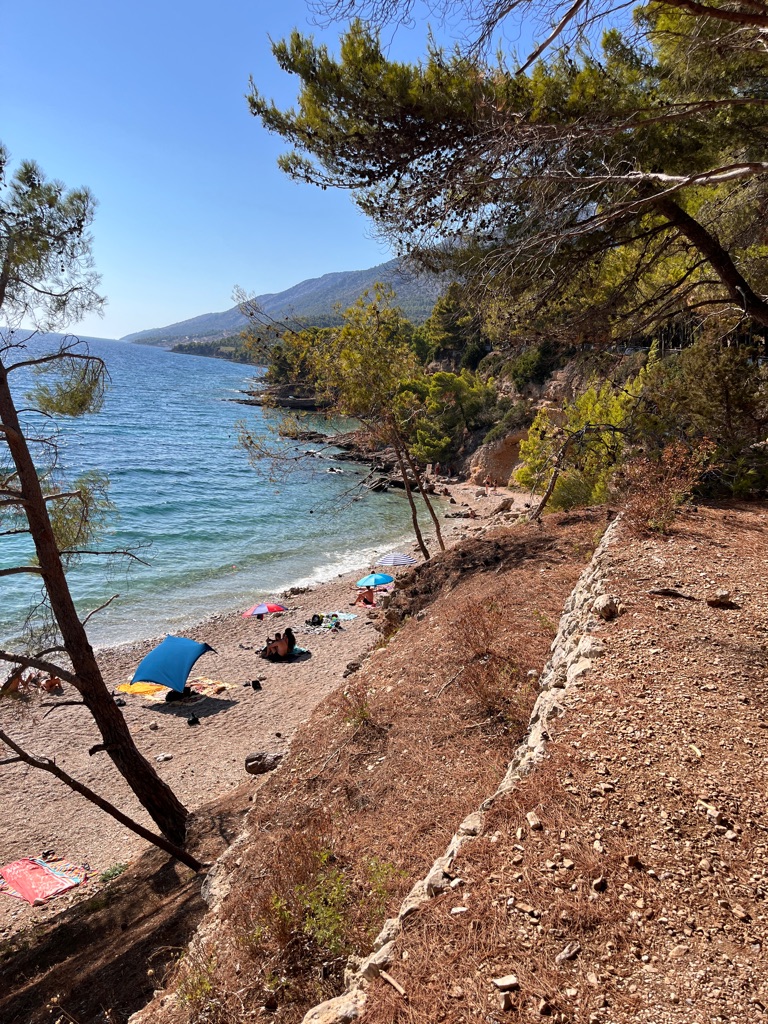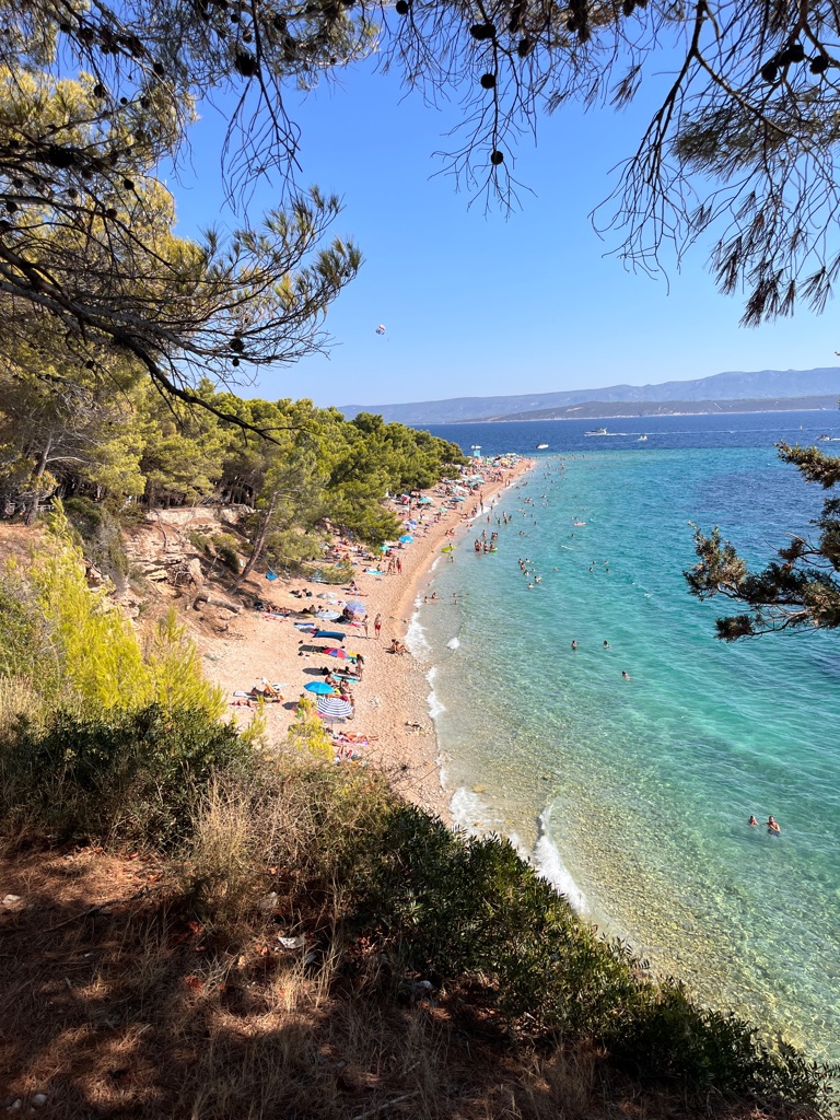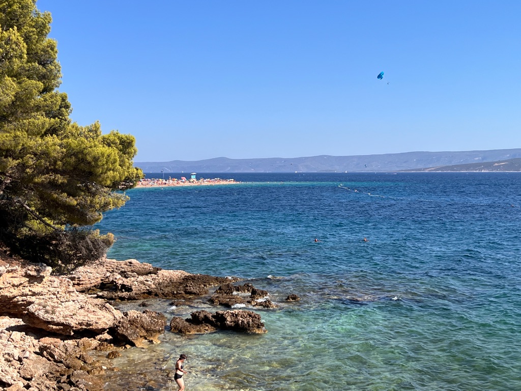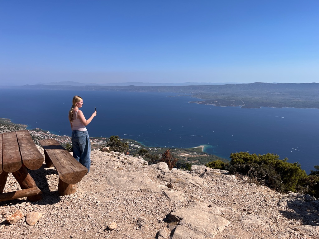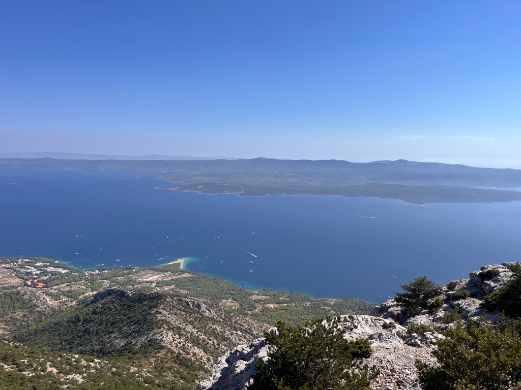 Kept driving West past Mirca and on to Sutivan. Went off track a bit to explore Bobovišća before rejoining the ‘main’ (but pretty much deserted) road heading towards Nerežišća. Exited off the main road heading to Bol to join deserted road heading towards the highest point in the island, Vidova Gora. About a 5km drive through pine forest until reaching a small parking area with few people and a food ‘shed’ selling drinks, ice-creams and knickknacks at inflated prices. A 5 minute walk up the hill took us to the viewing point which provided fantastic 360 view as far as the eye could see.