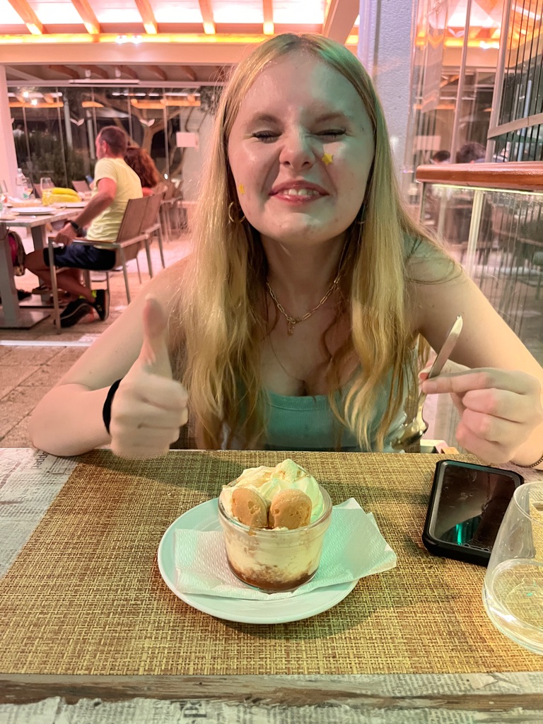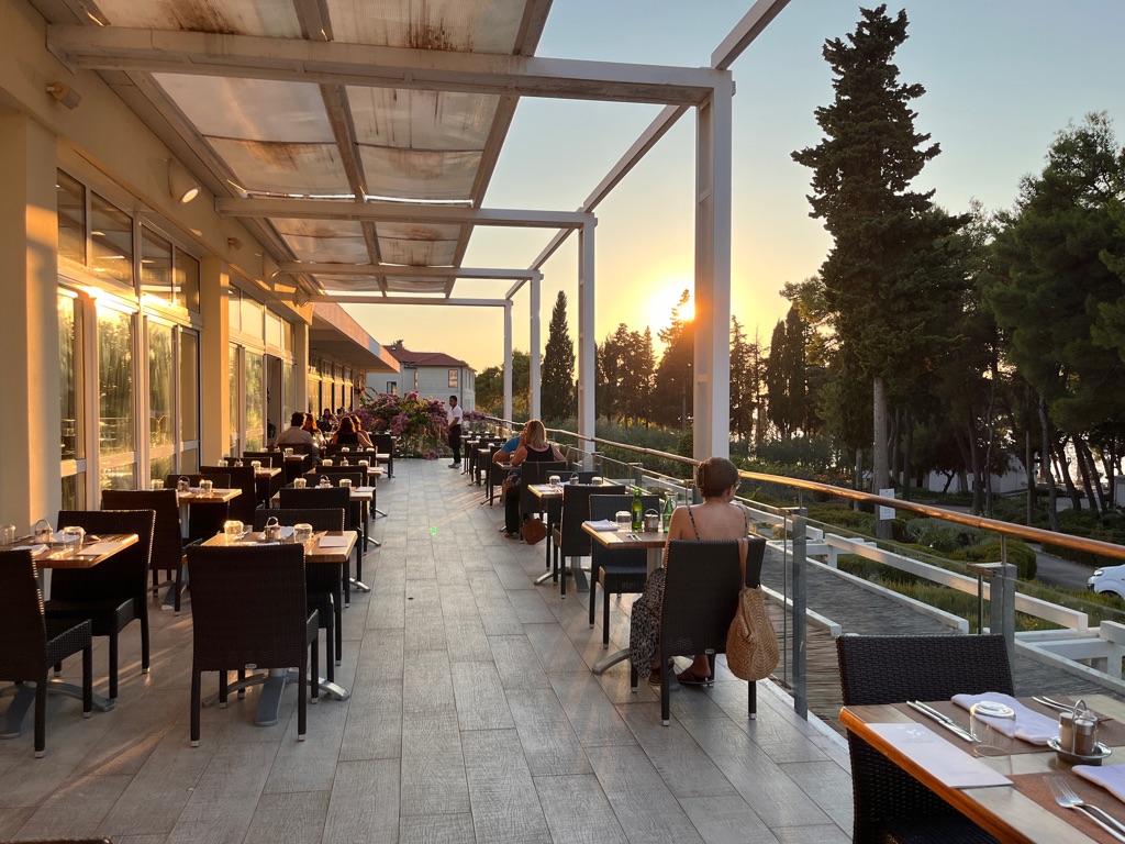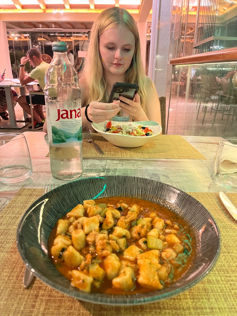 Headed out passing Mirca to the Garden Grill restaurant, which was just off the main road but located on a hill which offered amazing views across to Split. Salmon and shrimp meat gnocci for me and greek salad without cheese for Sasha, followed by tiramisu.