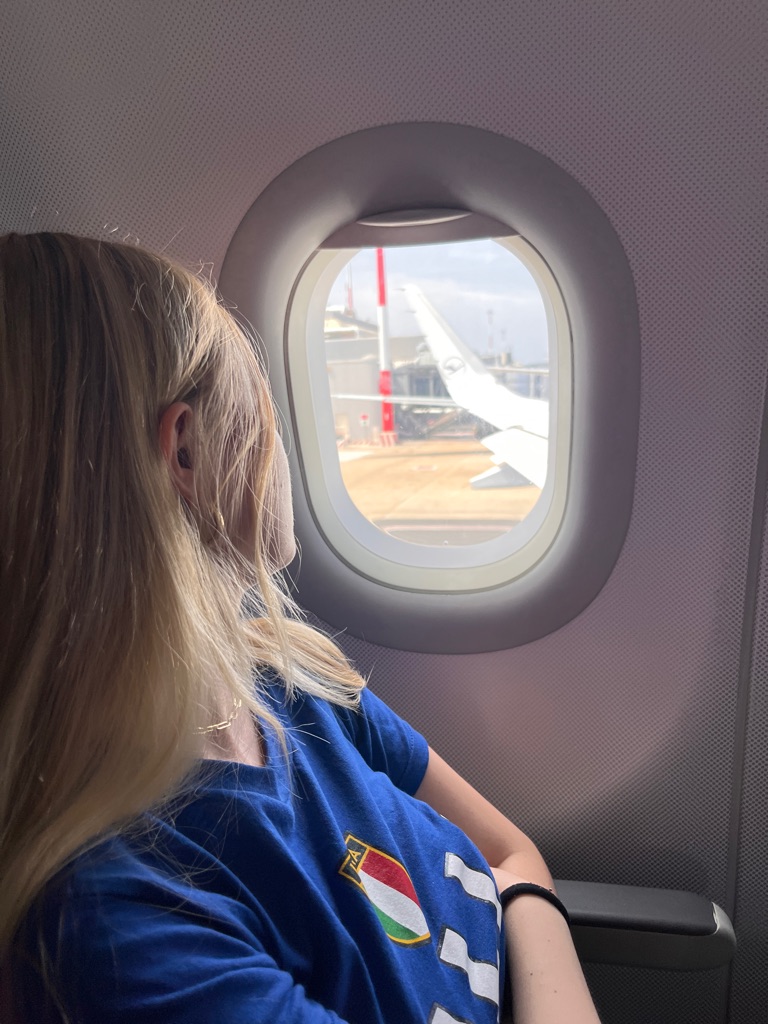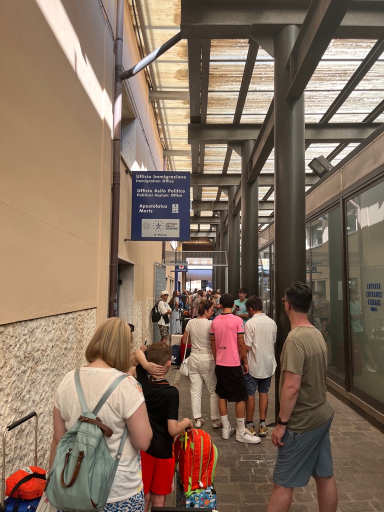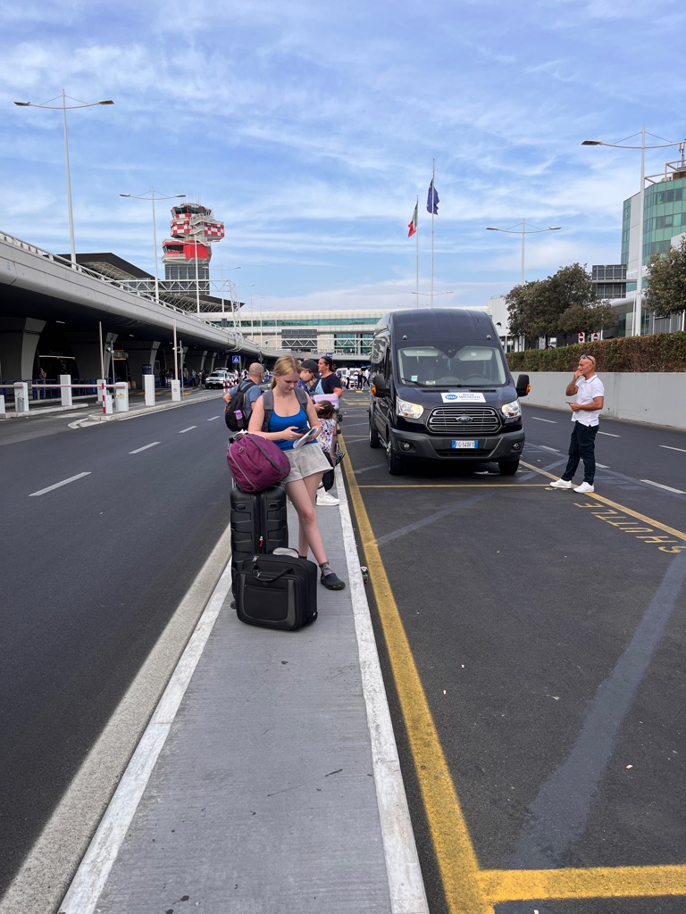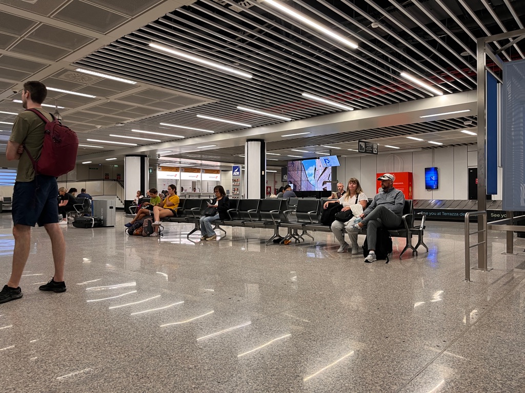 FCO absolutely packed. Dropped bags at Luftansa check-in (charged €95 despite ticket being purchased via TD VISA). Through security, got some cigs and a hoodie for Sasha in Duty Free, then found airport lounge that wasn’t at capacity and made the best of the included food and drink.
