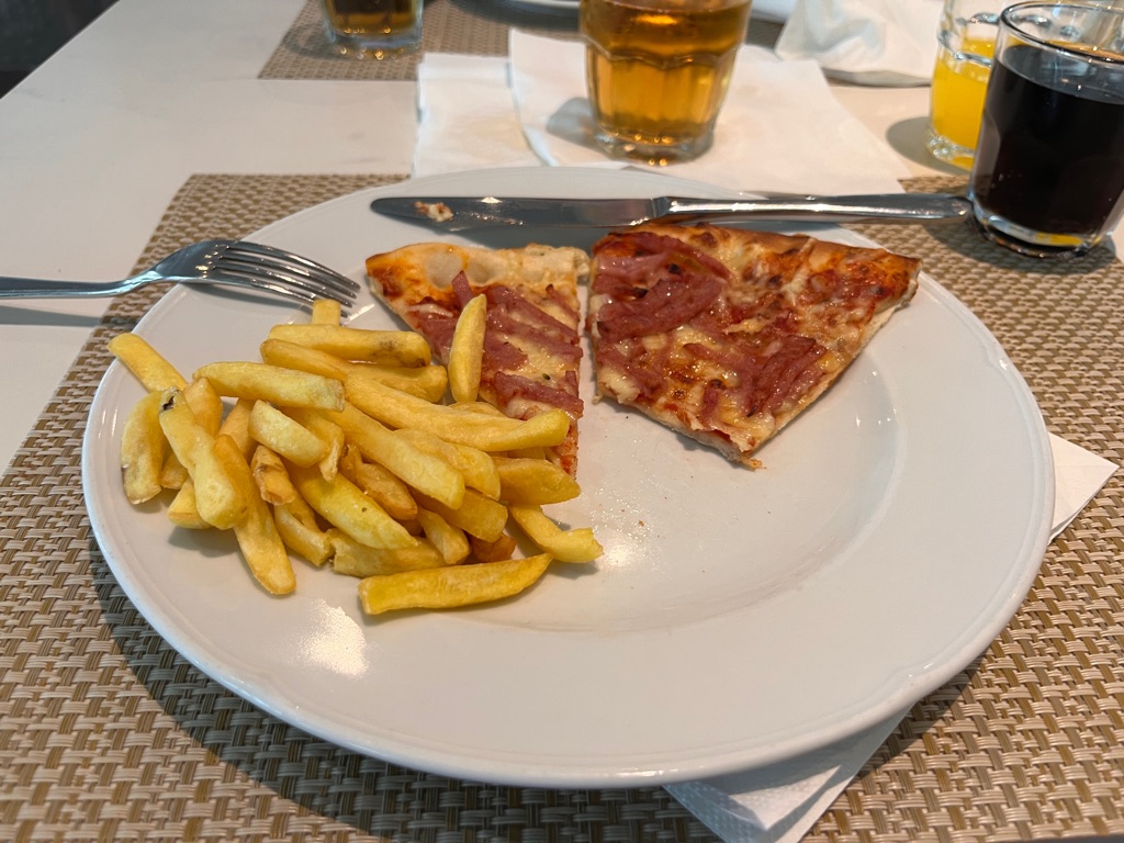 Had been told to get to the restaurant well before it closed at 9.00pm so Sasha and I got a table in the served restaurant (vs self service) and ordered food well in time. Then became apparent that people were still arriving well after 9.00pm anyway. Sasha picked a gluten-free lasagna, while I opted for chicken. Not bad, but expensive (obviously).