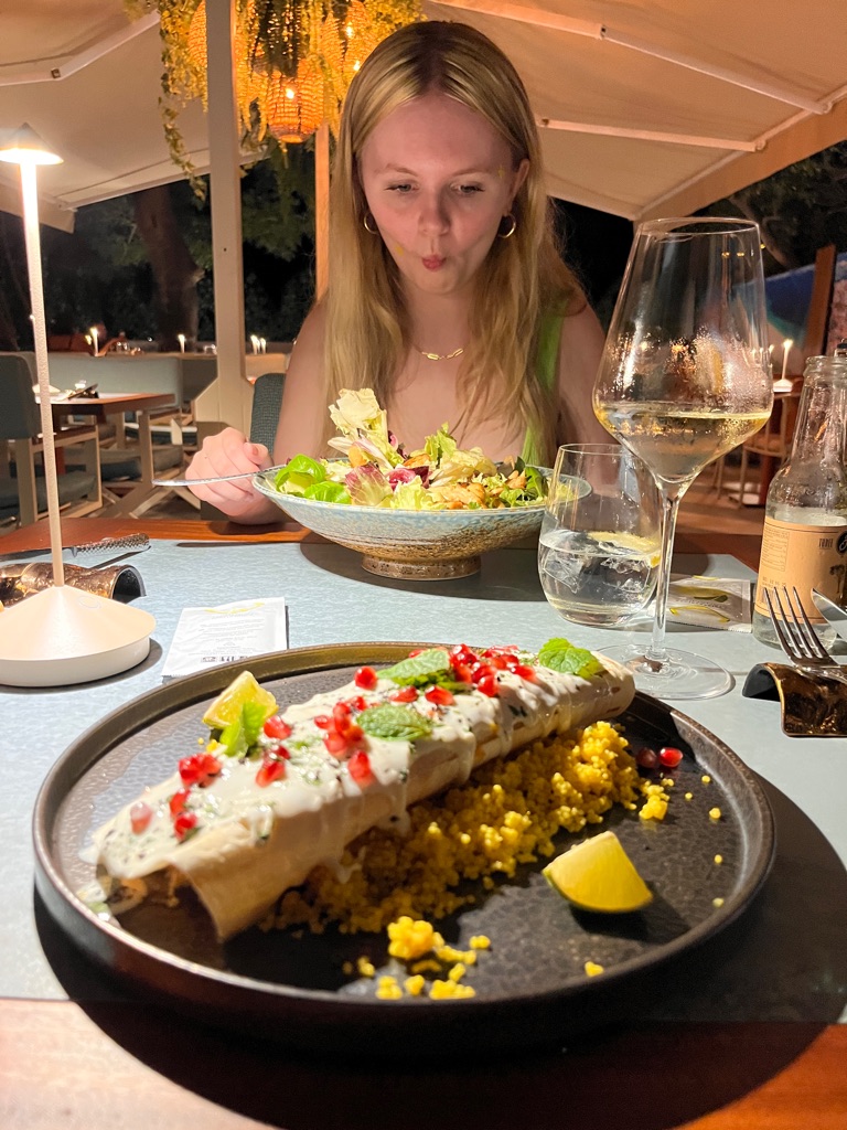 Back to Seabed. Spent some time outside with Anna and other guests before deciding where to go for dinner Eventually headed to the Soul Kitchen very close to Seabed and had a superb dinner (pulled chicken shawarma wrap for me and chicken salad for Sasha) . Excellent food and super-friendly staff in a restaurant only open for 11 days.