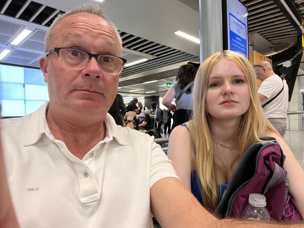 Not much entertainment after passing through security, so got sandwiches and yet more bottled drinks from ‘Bistro Jug’ cafe. Killed time doing admin catch-up and playing games on Sasha’s iphone.