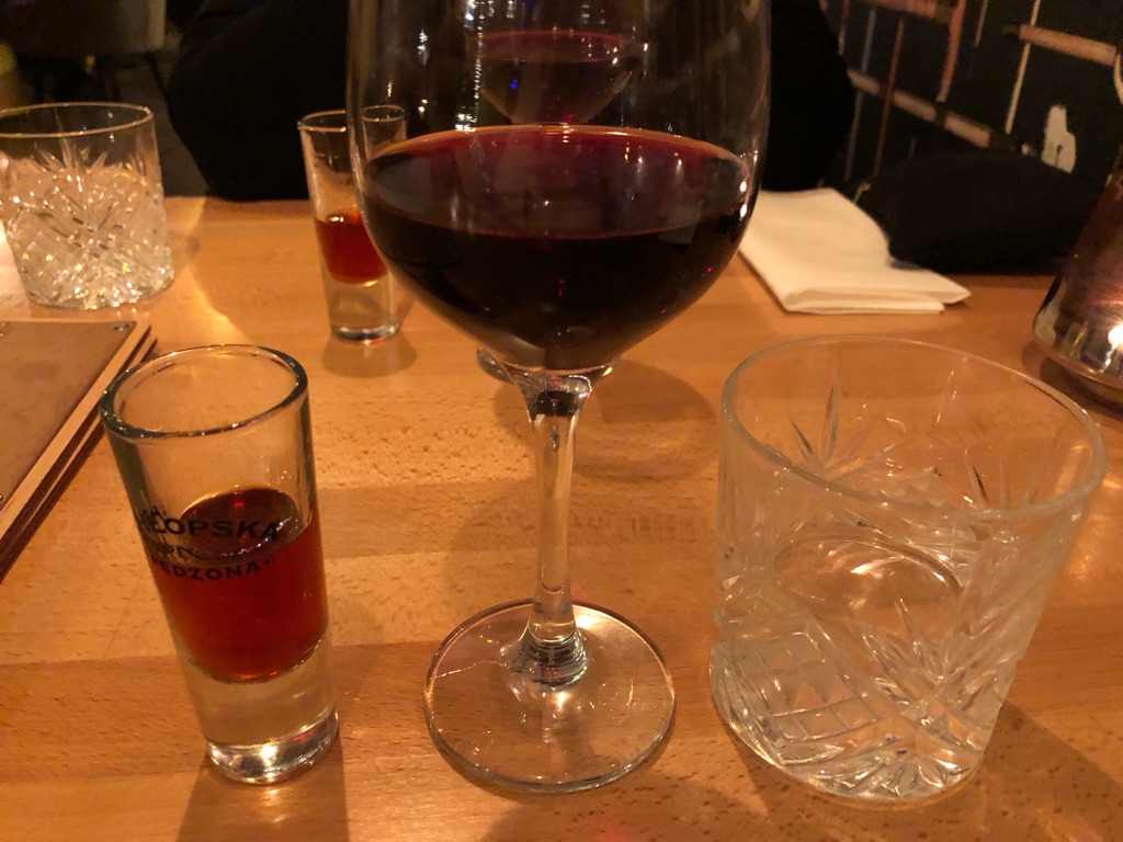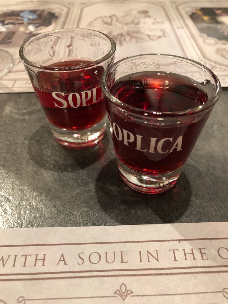 Pullo viiniä tilattu, Ruuat myös. Tarjoilijamme tulee kyselemään haluammeko maistaa ”homemade” liinöriä? Olis erilaisia ja talo tarjoaa. Miks ei haluttais😂😀