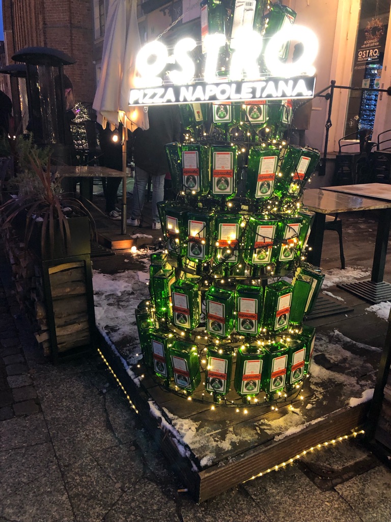 Pukeutunut jouluun ja ystävällinen nuori mies tarjoilemassa😉