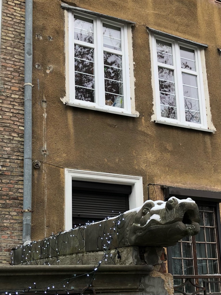 Joki tulee vastaan ja maisema edelleen mielenkiintoinen. Voin kuvitella kesän terassit, kun nytkin houkuttelevia paikkoja yllinkyllin. Taustalla häämöttää jo Zuraw - maailman vanhin nosturi - tarkoitus PN sinne mennä, mutta tänään katsellaan vain kaukaa.