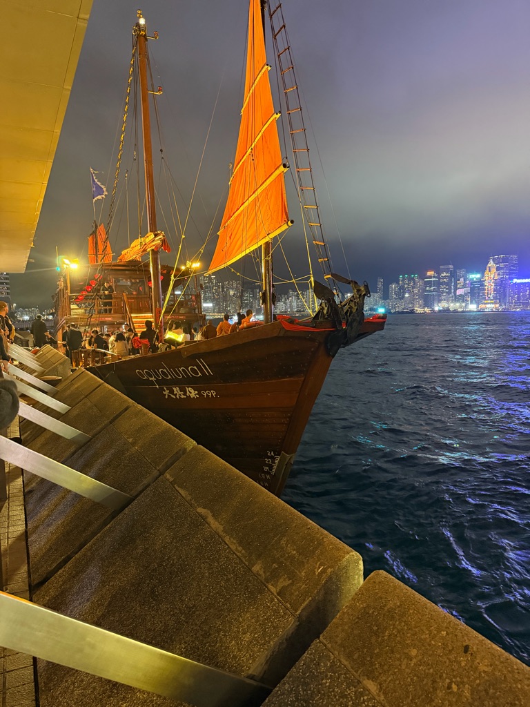 In the evening we journeyed on a ‘Junk’ and enjoyed the laser light show that the high rises set off.