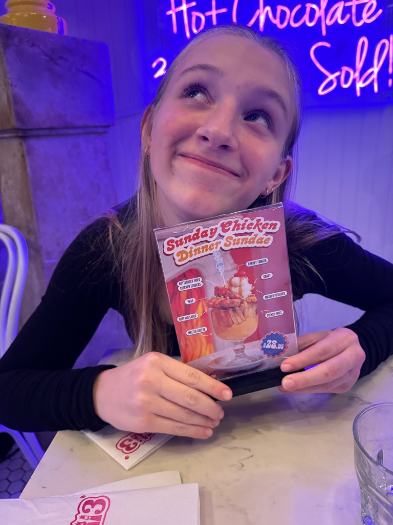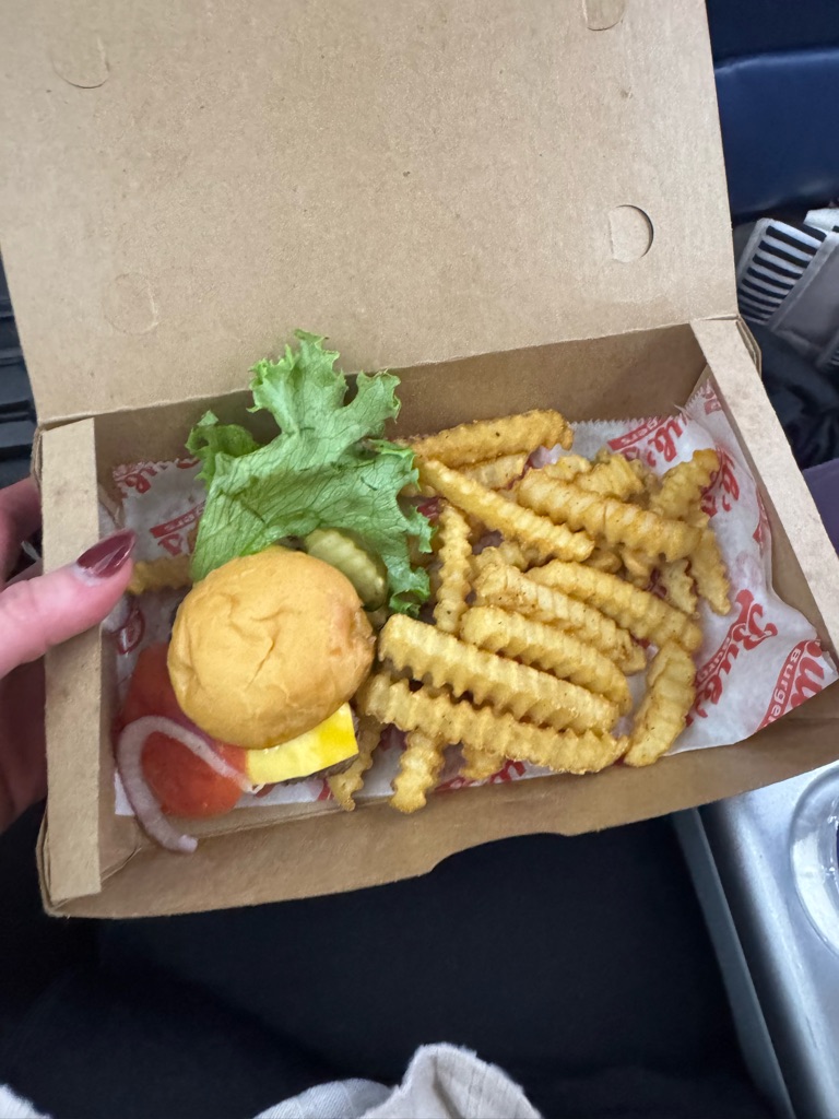 We didn’t have time to get all the way to Shake Shack, so we did Bub’s Burgers instead. We ordered the kids’ size with fries … and got surprise sliders lol! \240At least that will save us some room for dessert :)