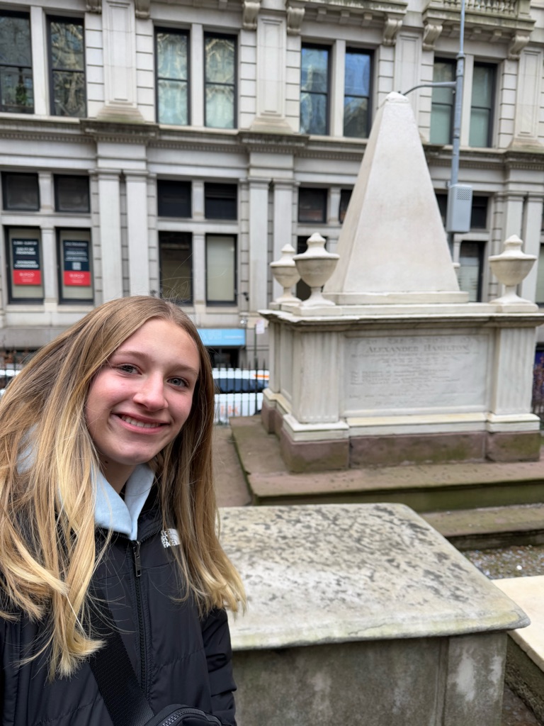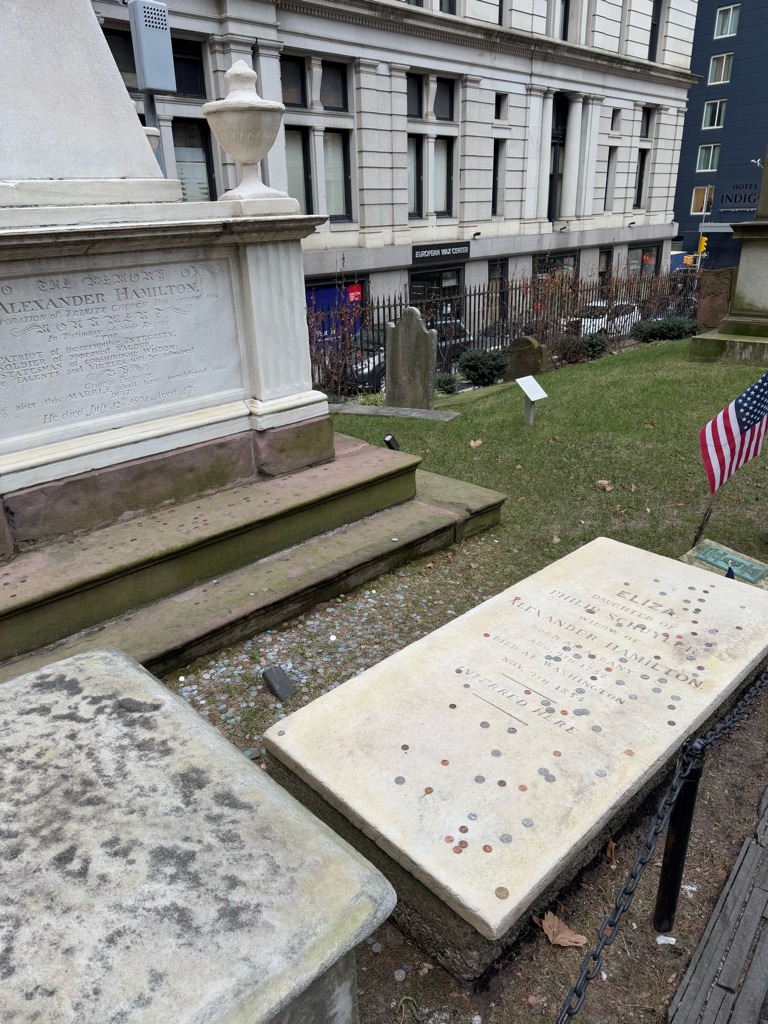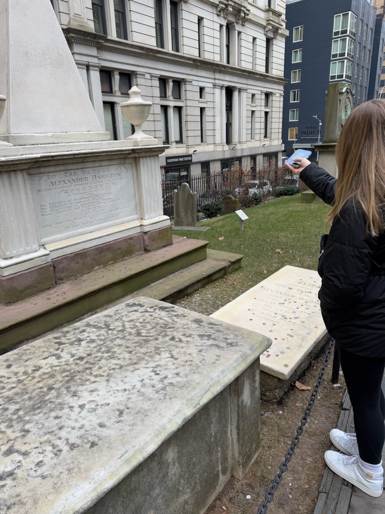 From there, we headed toward Battery Park, the southern most part of Manhattan. We stopped at Trinity Church, where we saw Alexander and Eliza Hamilton’s graves. Kate loved it and was singing Hamilton the rest of the morning.