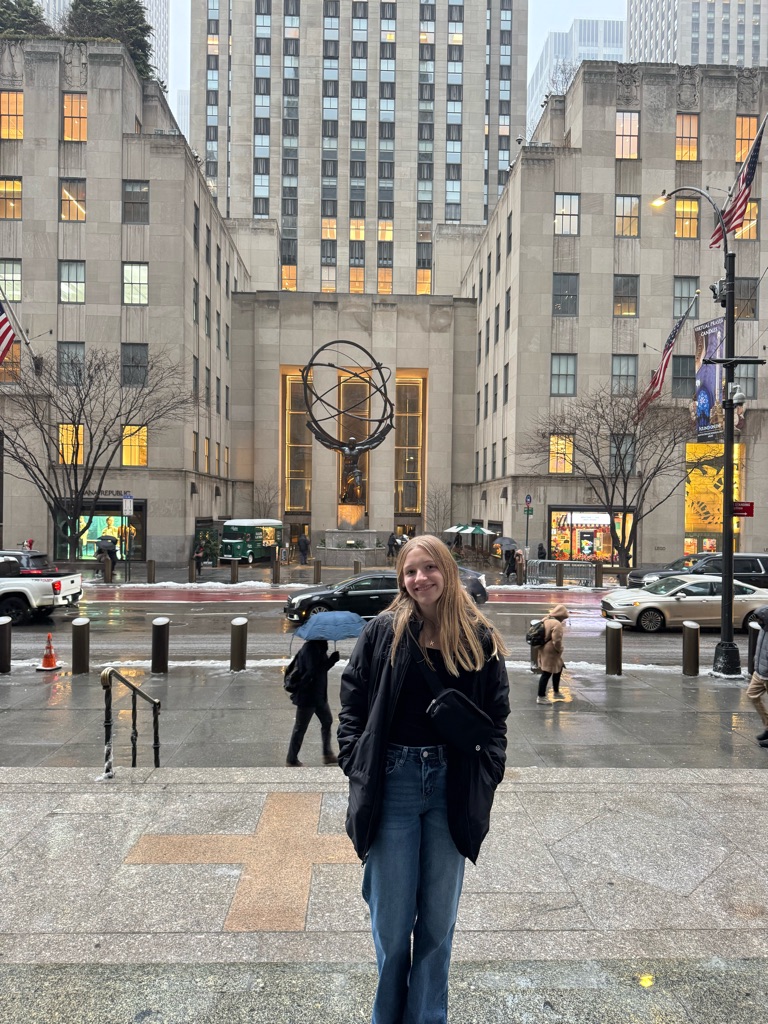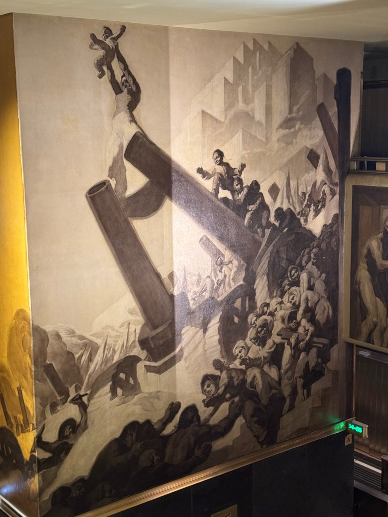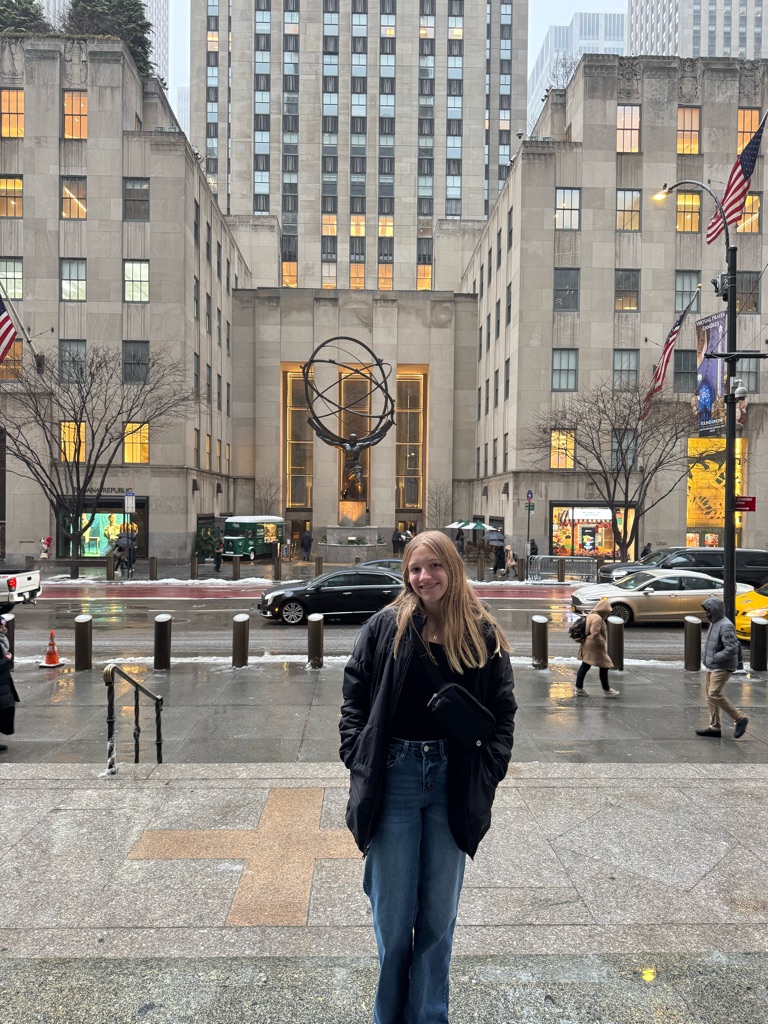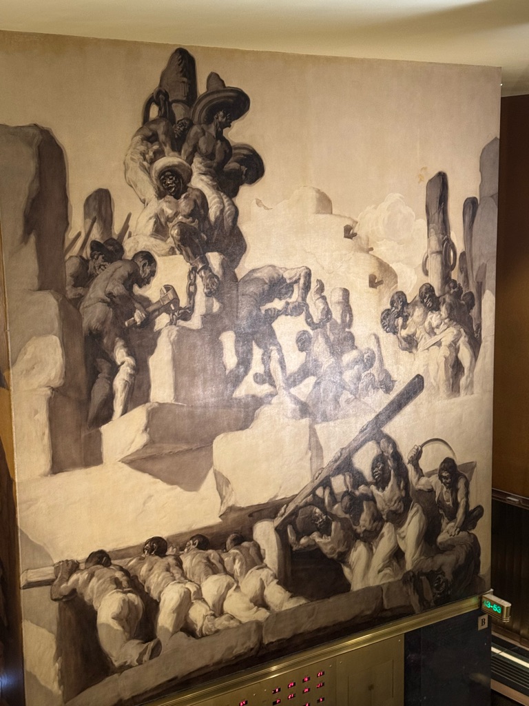 Our tour of Rockefeller Center was very cool! \240We learned about how John D Rockefeller Jr started construction during the Great Depression, giving jobs and hope to the whole city. Rockefeller Center was built as a city within a city, and a public art display. We learned the history of some of the art - the original mural at the entrance featured Vladimir Lenin because the artist was a Communist? So Rockefeller had the whole wall rebuilt and the new painting - American Progress - put up in its place. The original artist redid the painting in Mexico and added Jr to the painting, surrounded by drinking and smoking and gambling and all his least favorite things. Talk about throwing shade!
