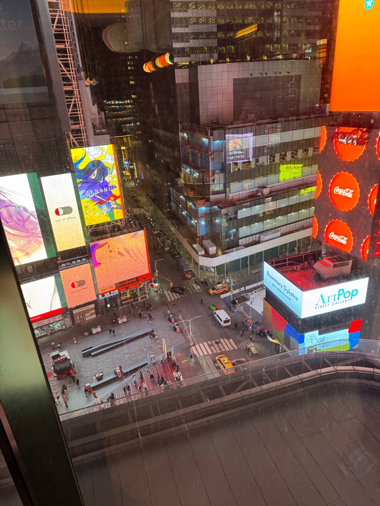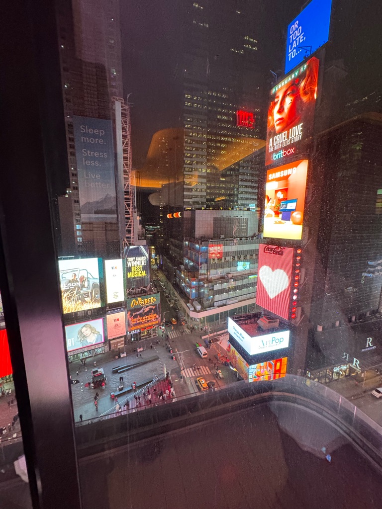 After that, we got checked in to our hotel where we can see the TKTS Times Square steps in Father Duffy square from the lobby and from our room! \240We quickly got settled, and then headed out to see Times Square.