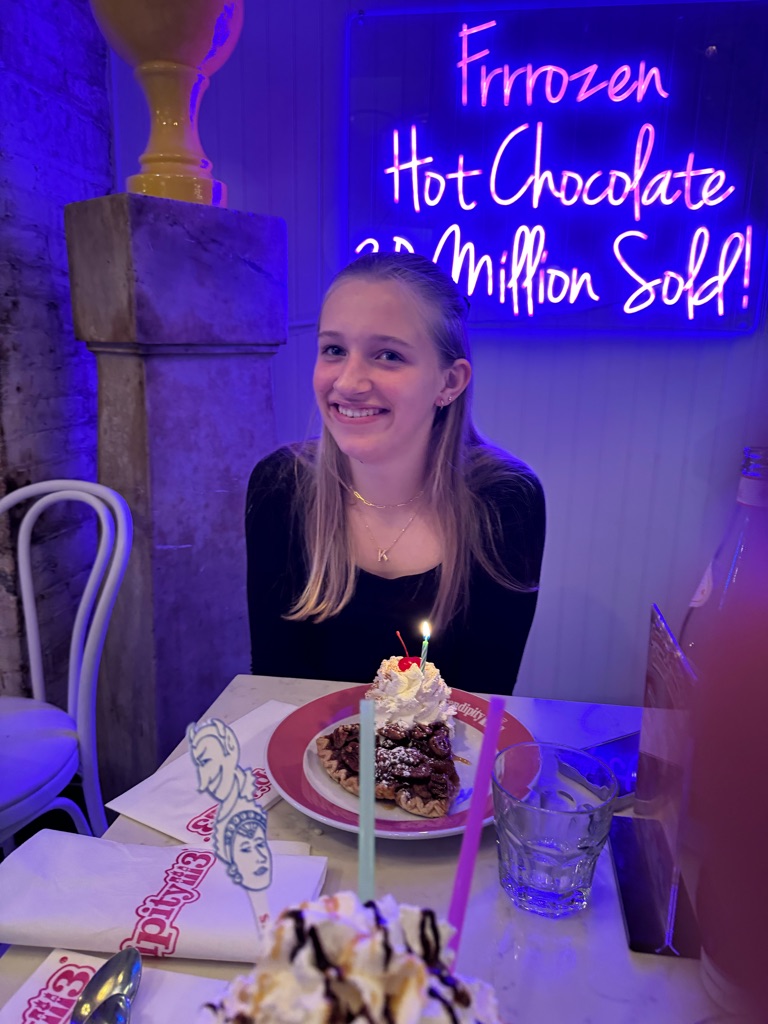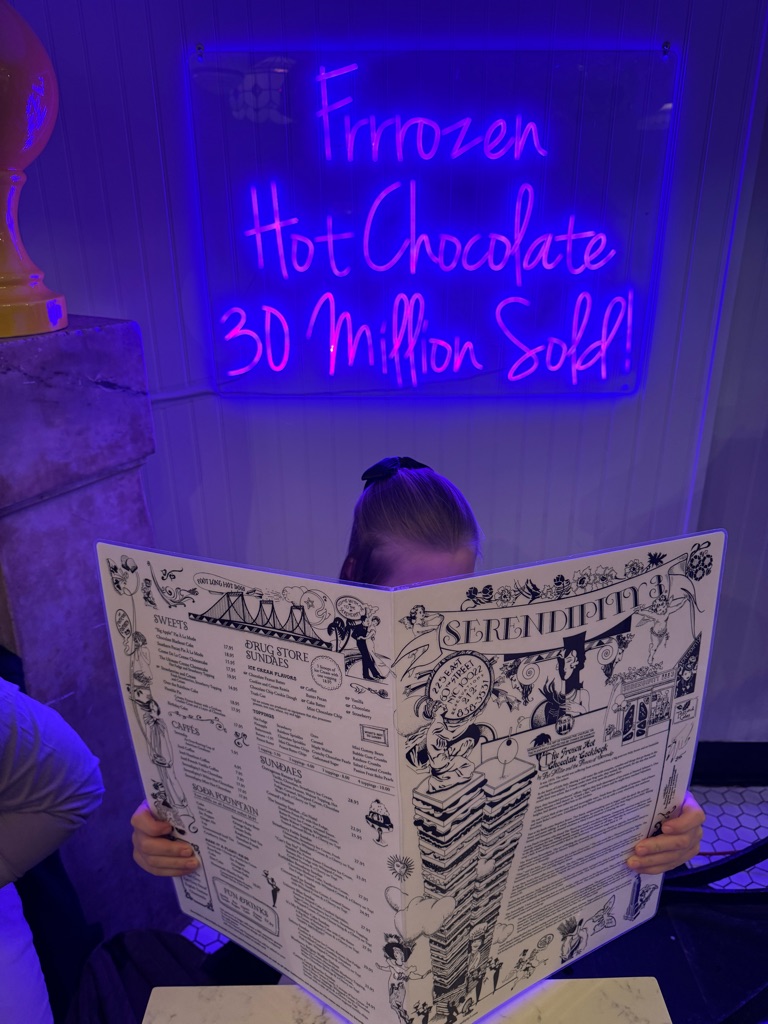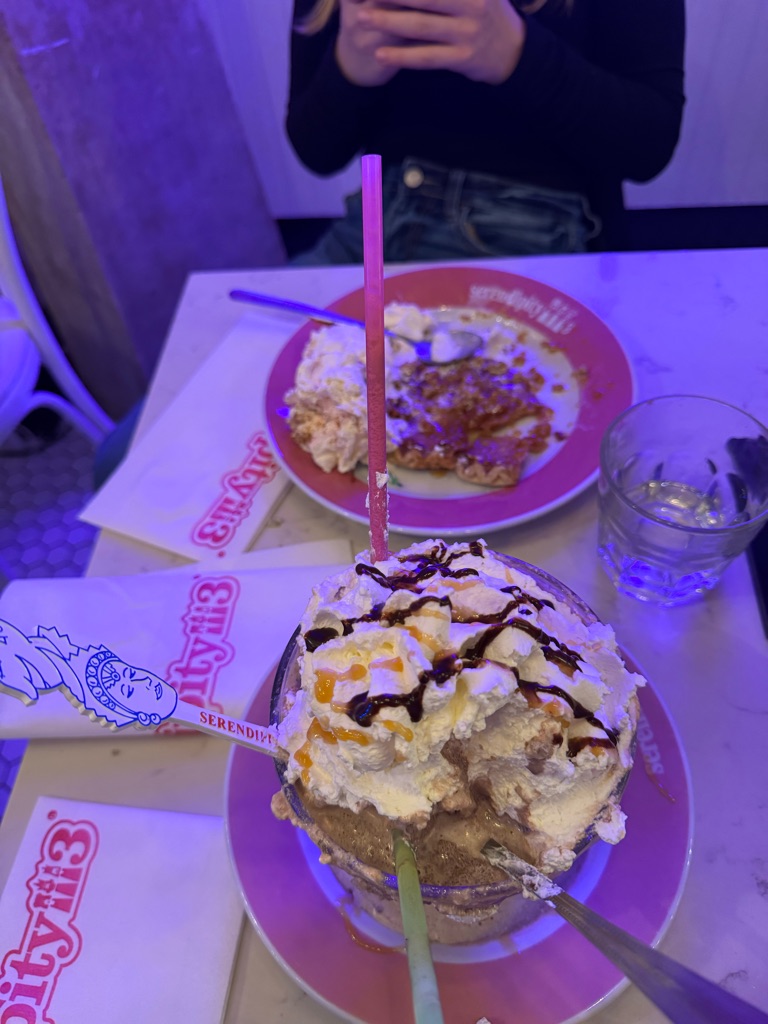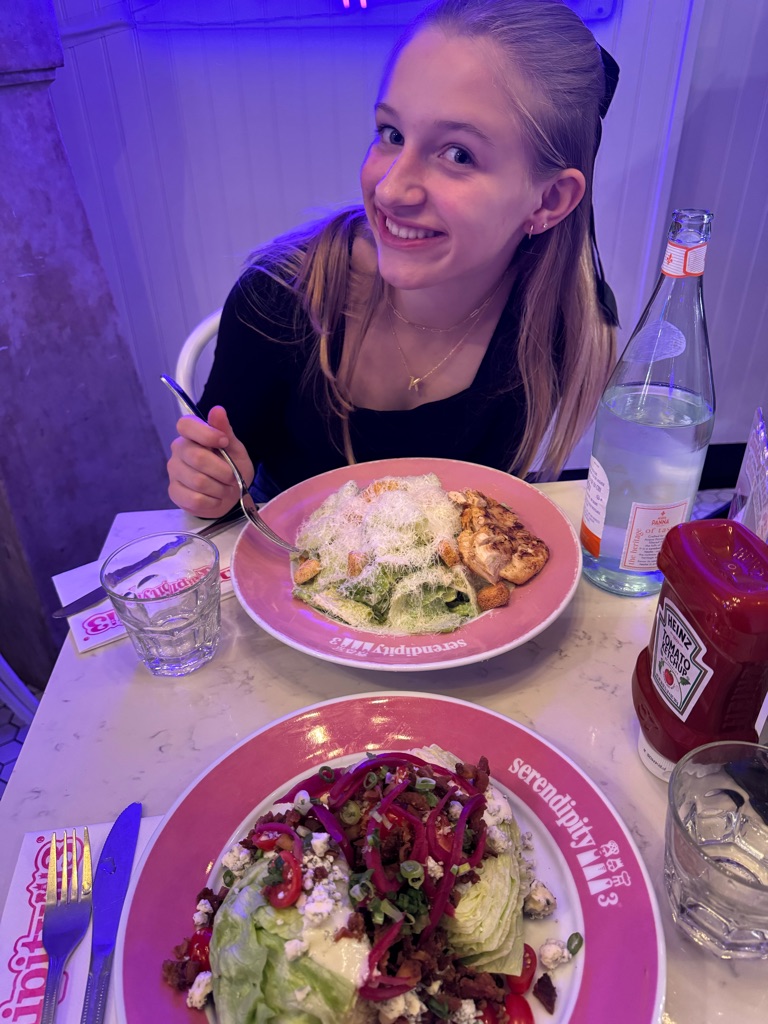 We headed back to the hotel to drop off bags, then it was off to dinner at the original Serendipity 3, where Serendipity the movie was filmed! \240We were a little over sugared, so we both loved our salads. She got birthday pecan pie and I got a frozen hot chocolate but we weren’t close to finishing either!