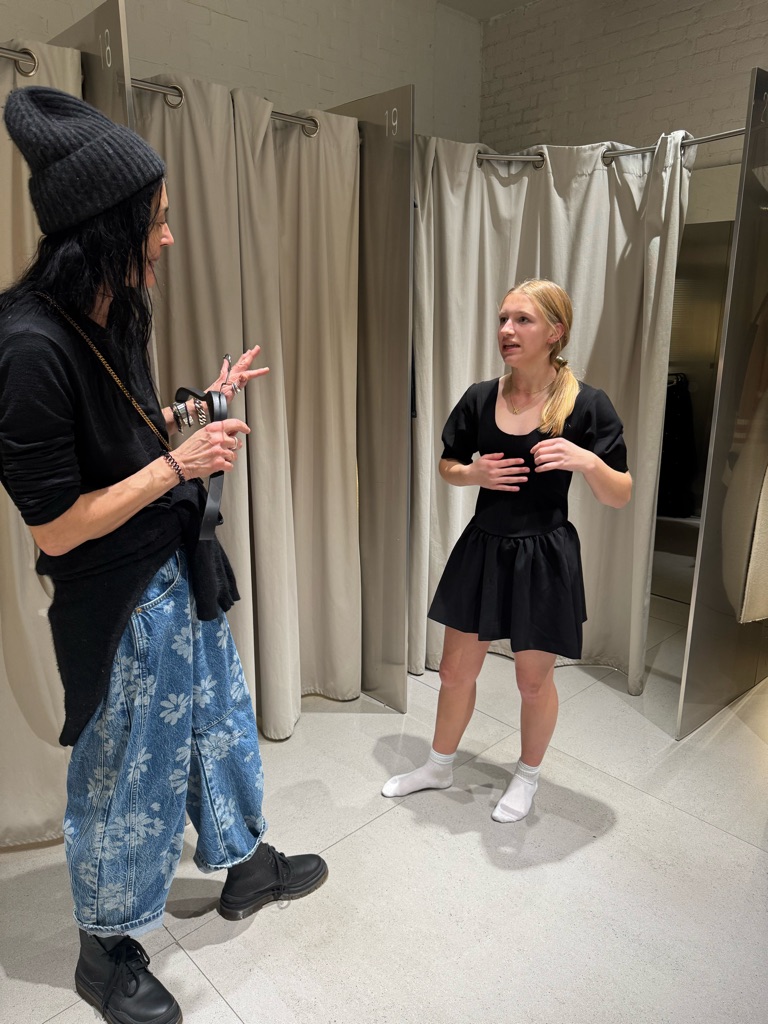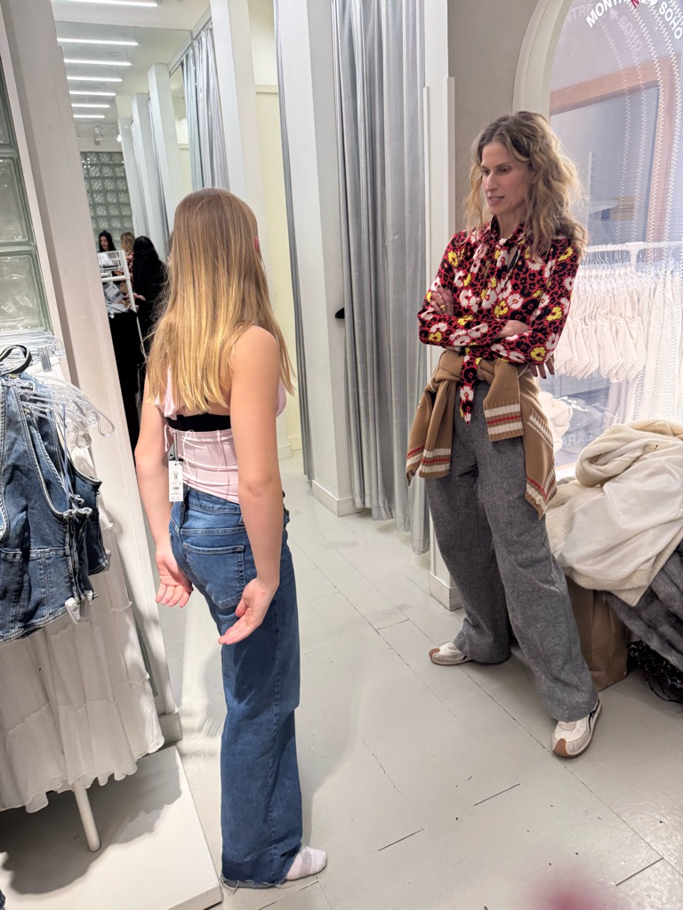 We took the Uber to SoHo where we popped into Zara and Kate got ambushed by three stylists who couldn’t wait to meet Kate. They were all prepped for her and had a dressing room with a bunch of items already pulled. We did great at Zara and found a dress she loves with a few other things.
