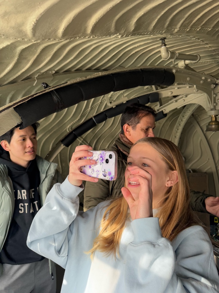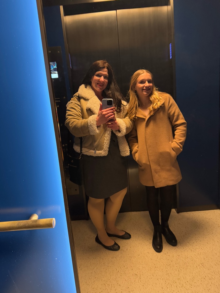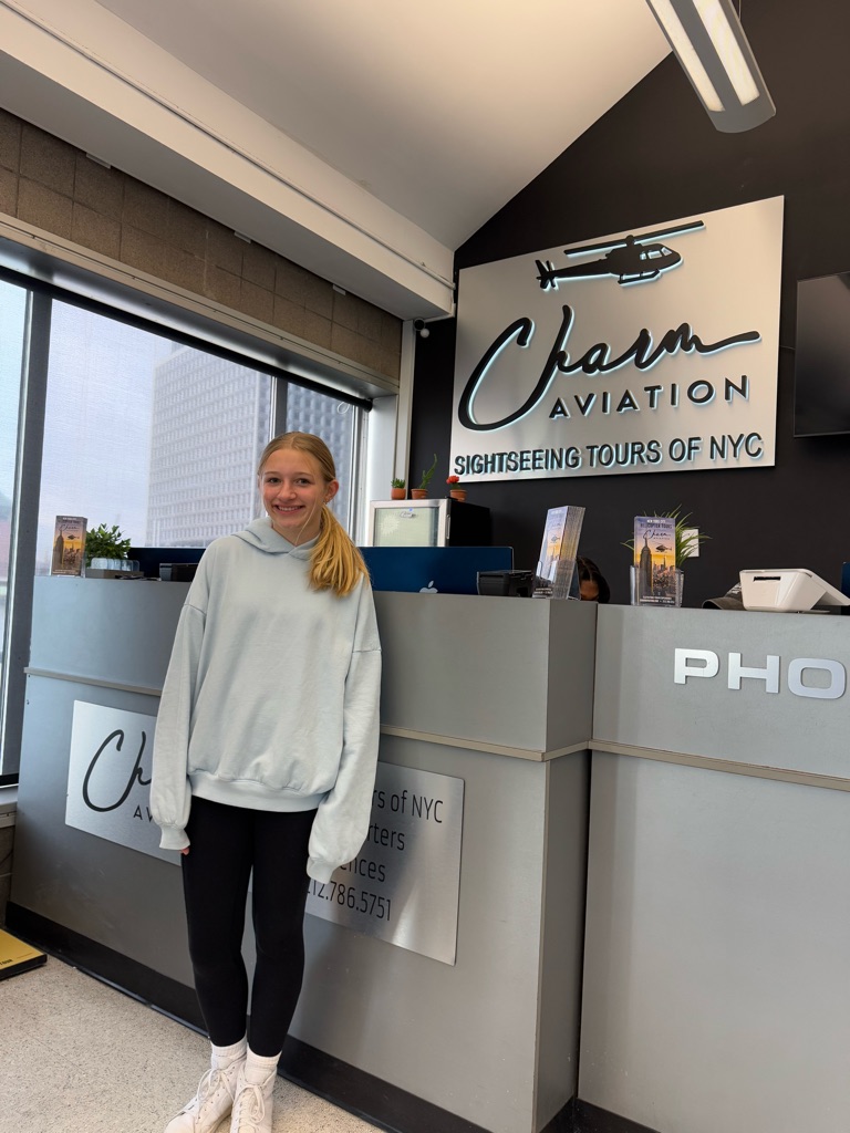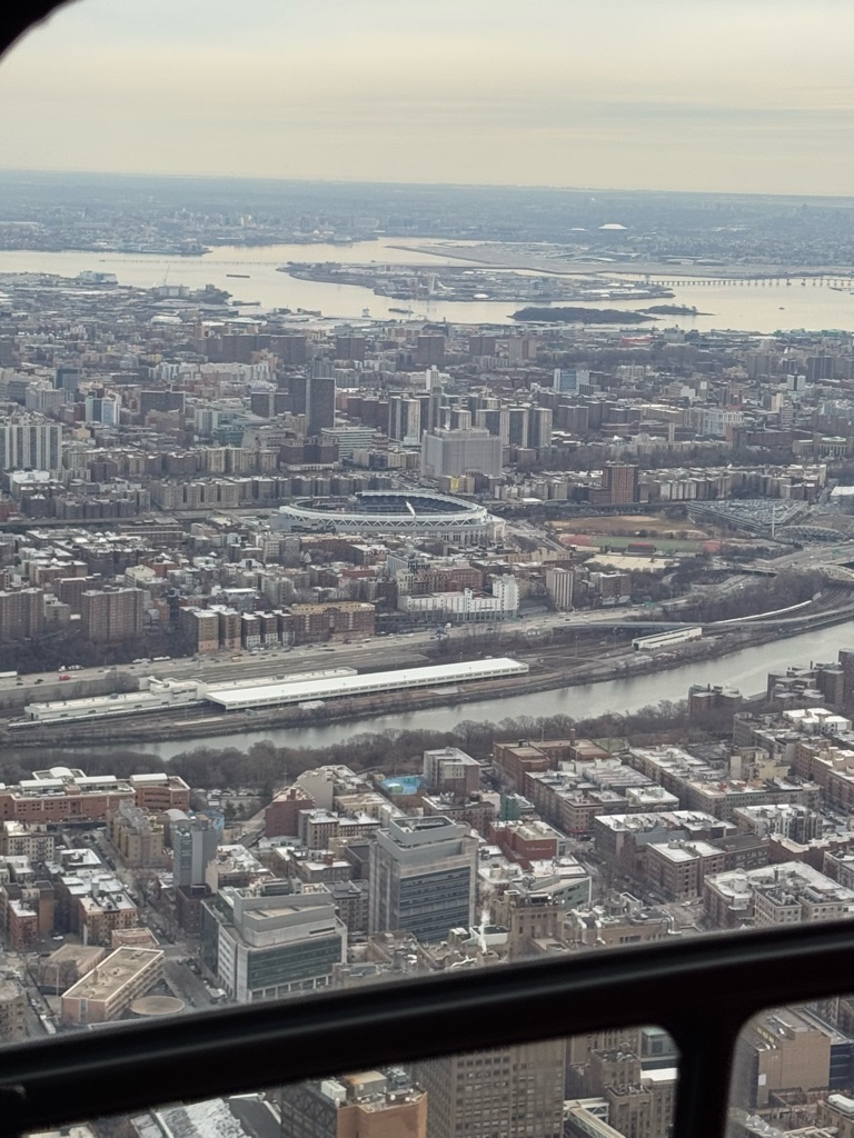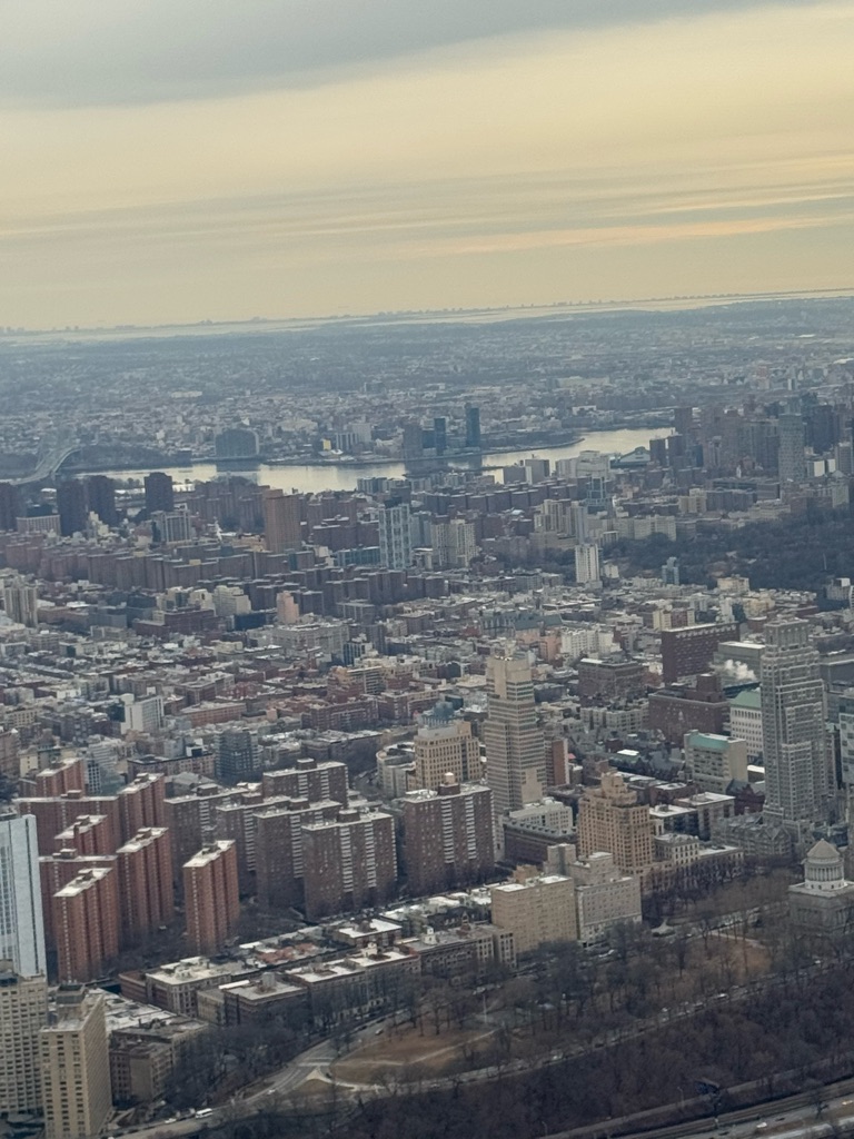 Then we got to the top, and rose up on the beam looking over (what we were told was) Central Park! We could just make out the tops of the closest buildings. We grabbed coffee, hot chocolate and popcorn in the lounge, and now are off for our next activity!
