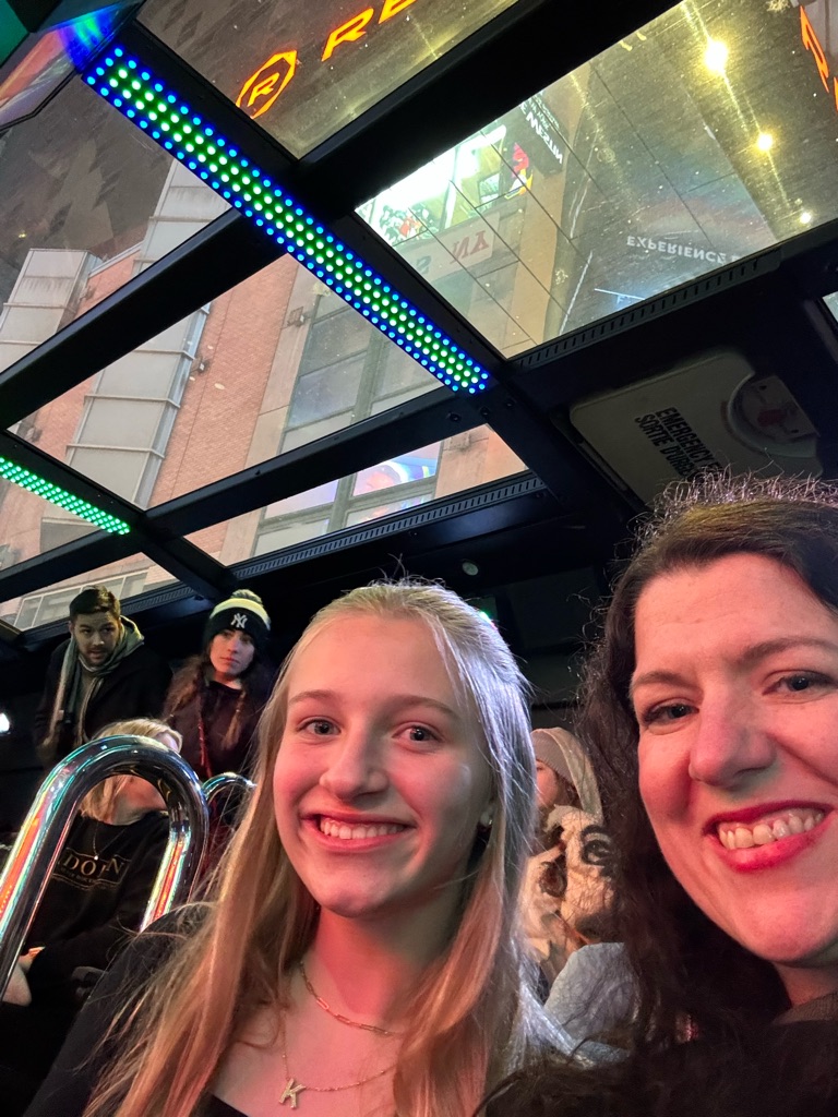 We finished the night out with “The Ride!” It’s a great tour through New York with comedians as the tour guides, floor to ceiling and full ceiling windows, and street performers as you stop at various places. So much fun!